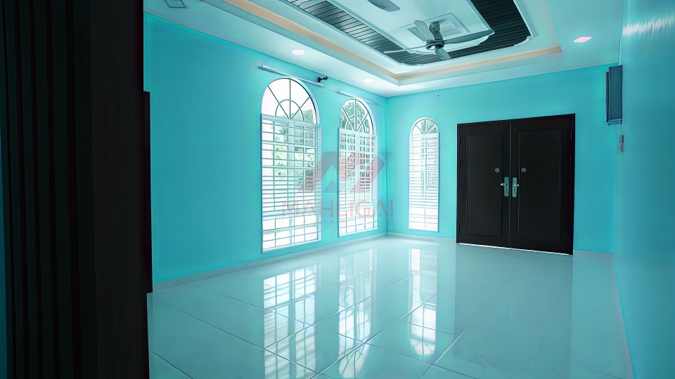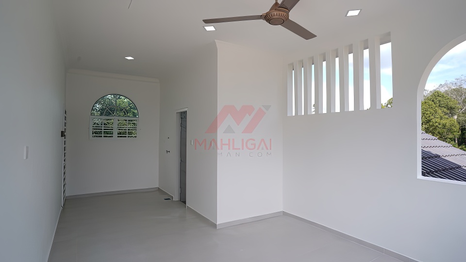 Banglo ini dibina dengan spesifikasi asas pakej silver dengan penambahan aksesori iaitu pemasangan cornice pada keseluruhan tingkap, tingkap labuh di bahagian depan, batu hiasan pada dinding dan tiang luar rumah, grove line pada dinding luar dan memasang kayu tunjuk langit pada bahagian bumbung bagi menaikan lagi seri rumah.