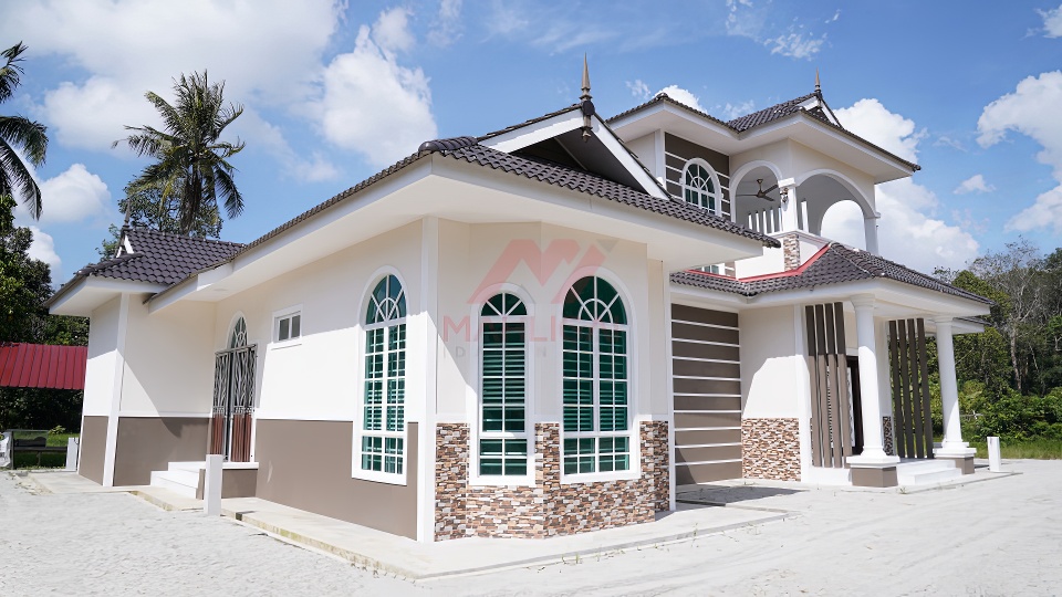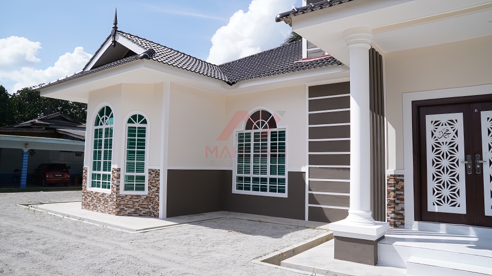 Banglo milik klien kami Puan Nur Azma kini telah siap dibina sepenuhnya di Serada, Kuala Terengganu. Keunikan banglo ini ia mempunyai ruang terbuka di bahagian atas (tingkat satu). Banglo ini dilengkapi dengan empat (4) bilik tidur dan empat (4) bilik air. Banglo yang berkeluasan 2,354 kaki persegi ini menggabungkan ciri-ciri banglo moden iaitu dari segi rekabentuk dalaman dan luaran yang sangat. Dari segi penggunaan tona warna di bahagian luaran mereka memilih warna dark brown dan cream, manakala pada bahagia dalam rumah pula mereka memilih warna biru, putih, dan warna hijau di dalam bilik.