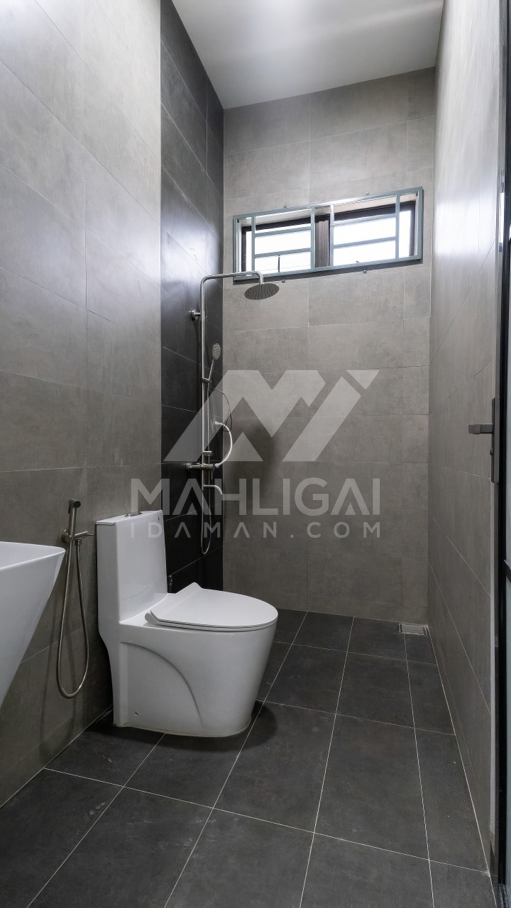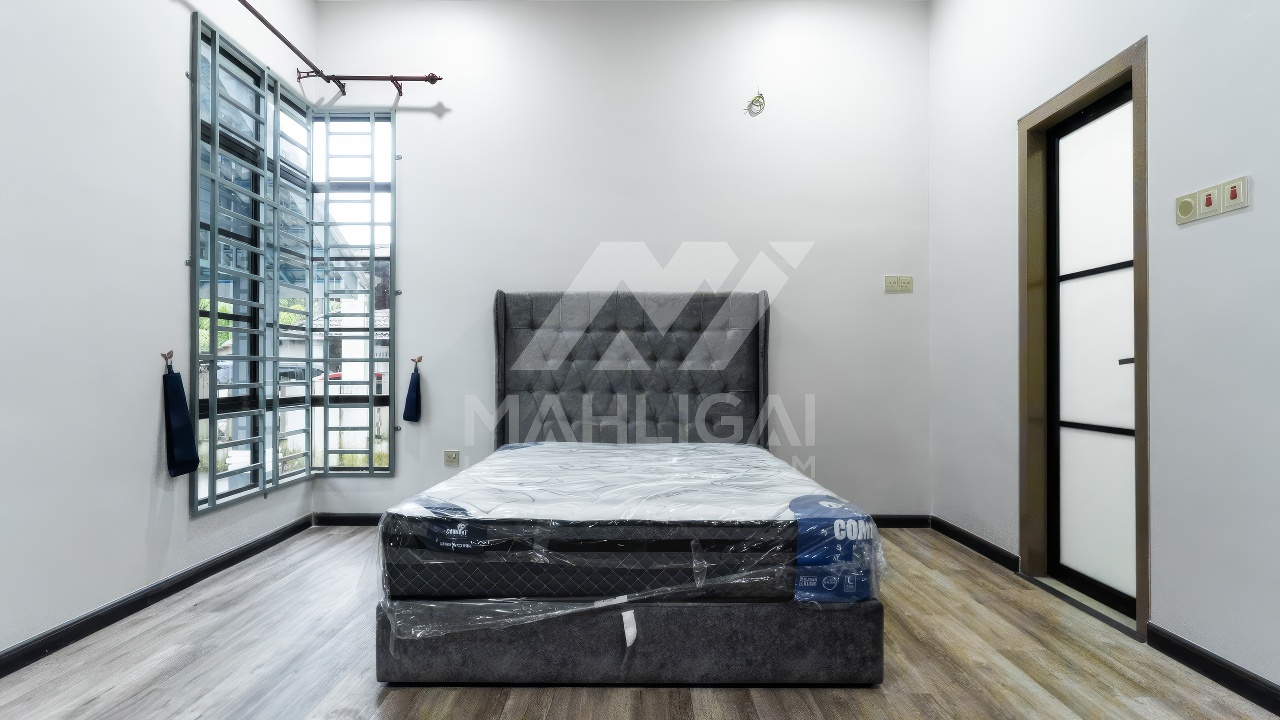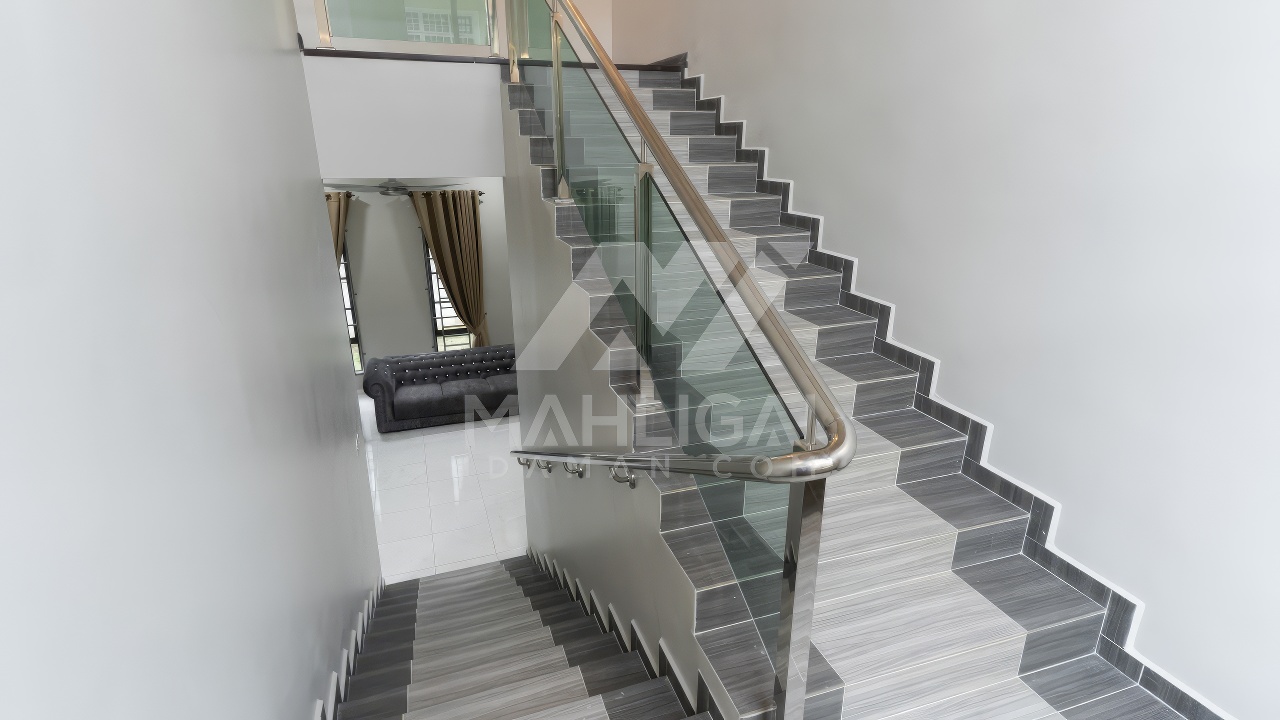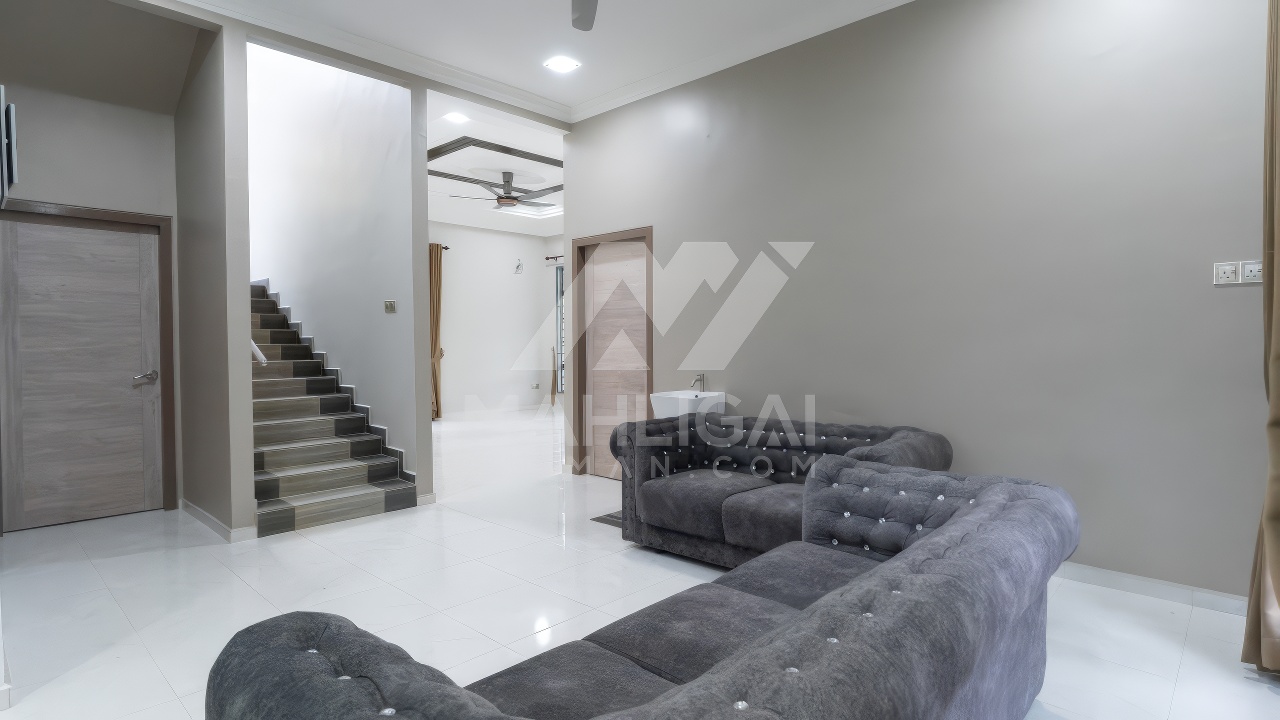 Banglo ini dibina dengan spesifikasi asas pakej gold dengan penambahan aksesori iaitu pemasangan cornice pada keseluruhan tingkap dan dinding luar rumah, groove line pada dinding di bahagian luar rumah