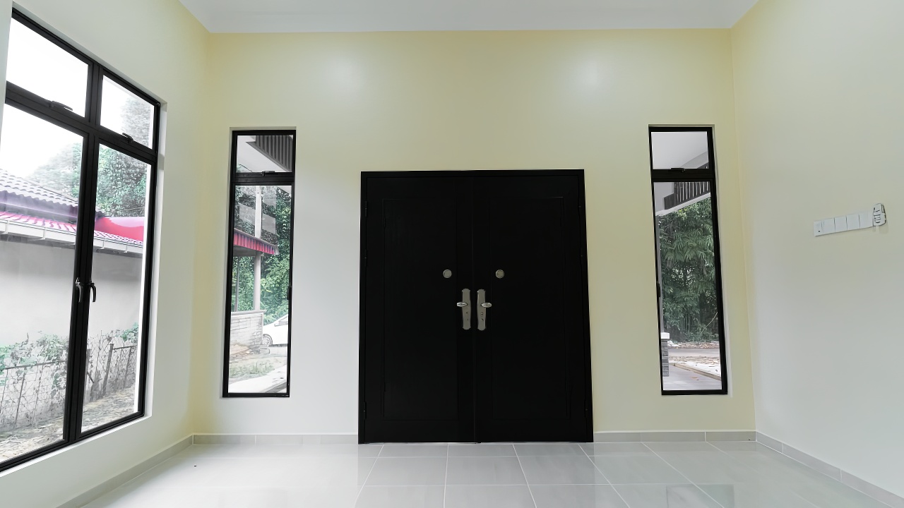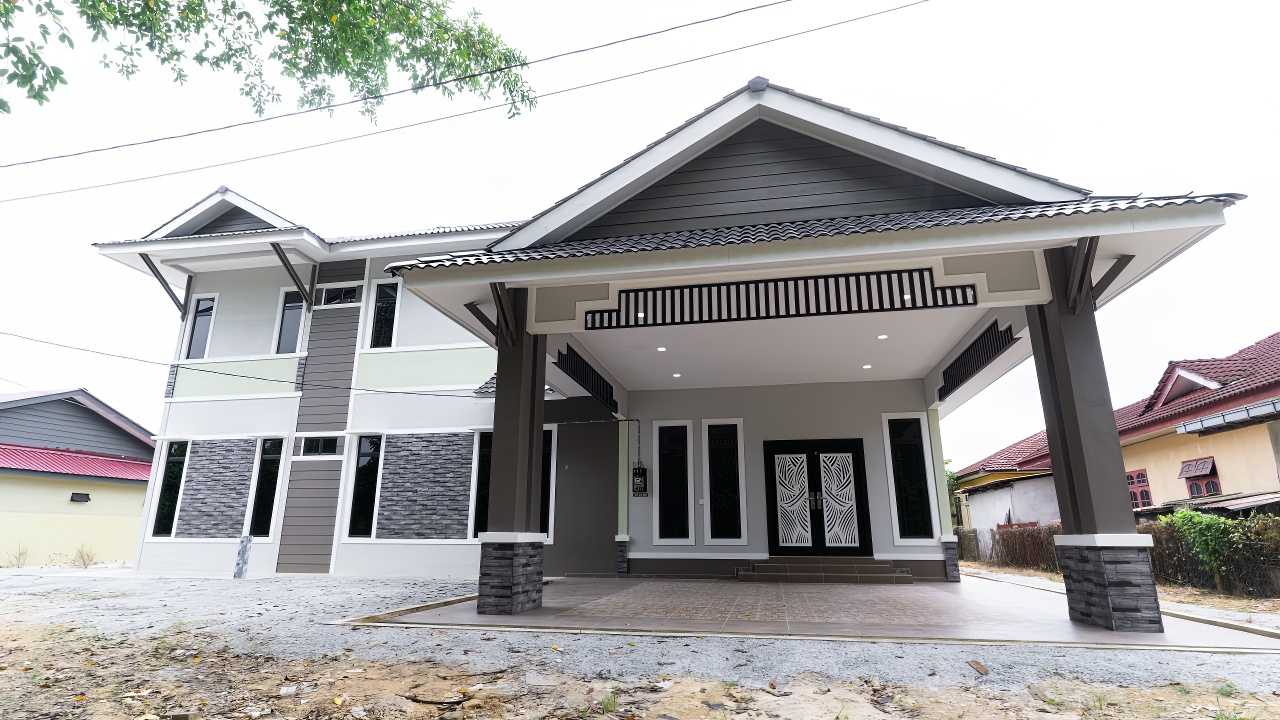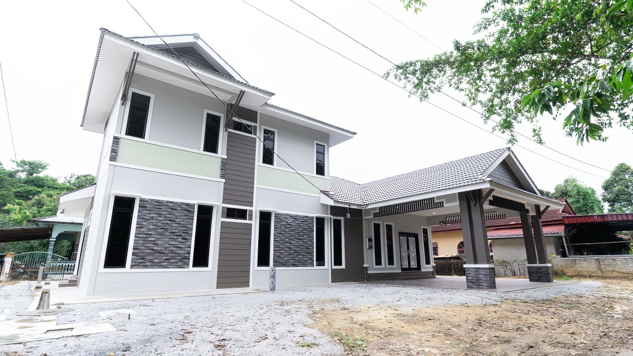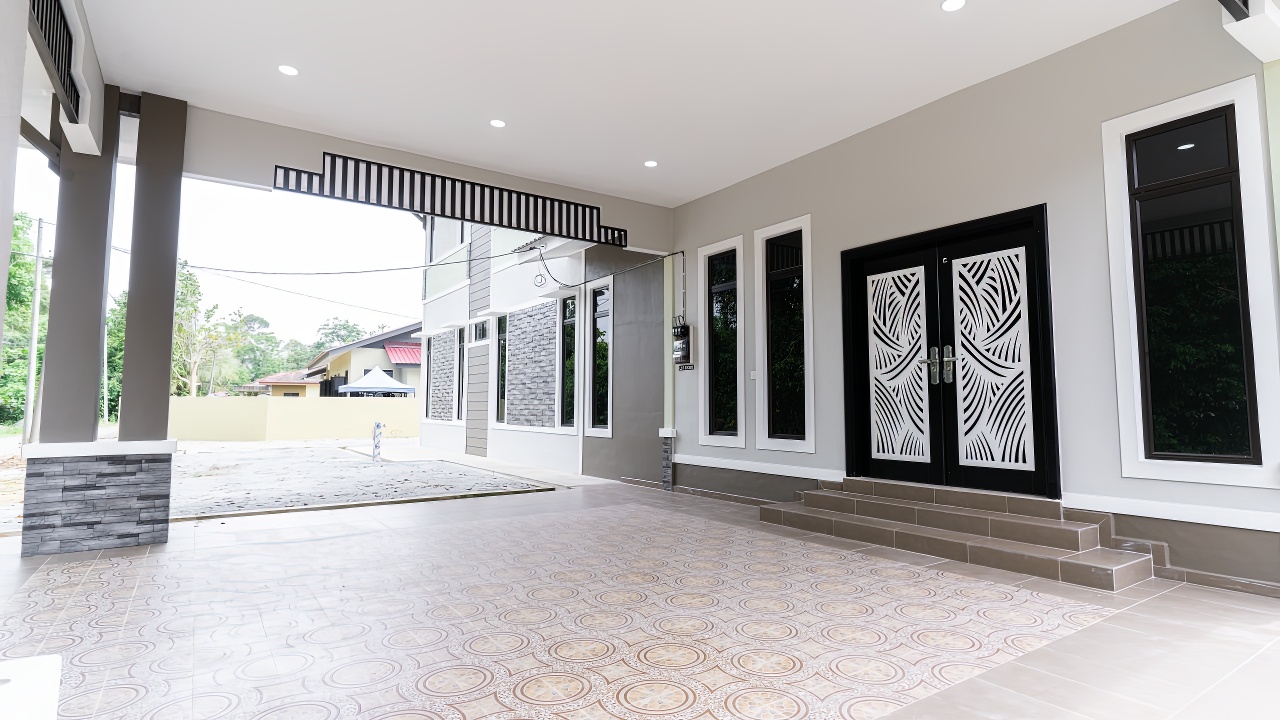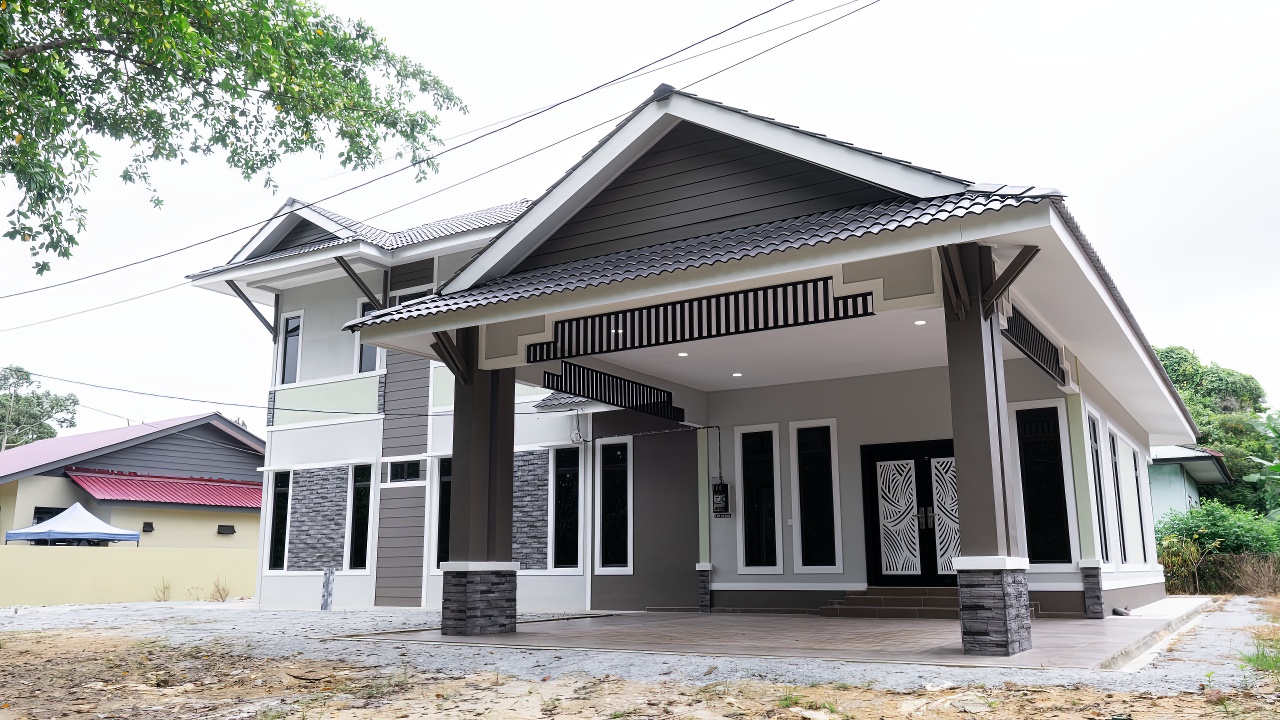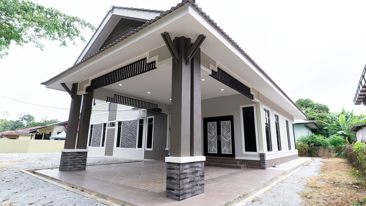 Banglo dua tingkat milik klien kami Encik Saufi kini telah siap dibina sepenuhnya di Kg. Tok Jiring, Kuala Terengganu. Banglo ini dilengkapi dengan lima (5) bilik tidur dan lima (5) bilik air. Banglo yang berkeluasan 2,969 kaki persegi ini menggabungkan ciri-ciri banglo moden iaitu dari segi rekabentuk dalaman dan luaran yang sangat menarik. Dari segi penggunaan tona warna kelabu dan hitam. Bahagian dalam rumah pula mereka memilih warna kuning dan putih menaikan lagi seri dan kemewahan dalam rumah.