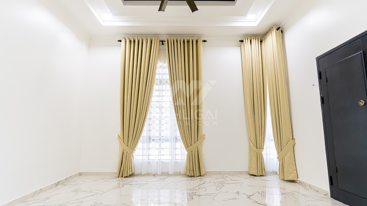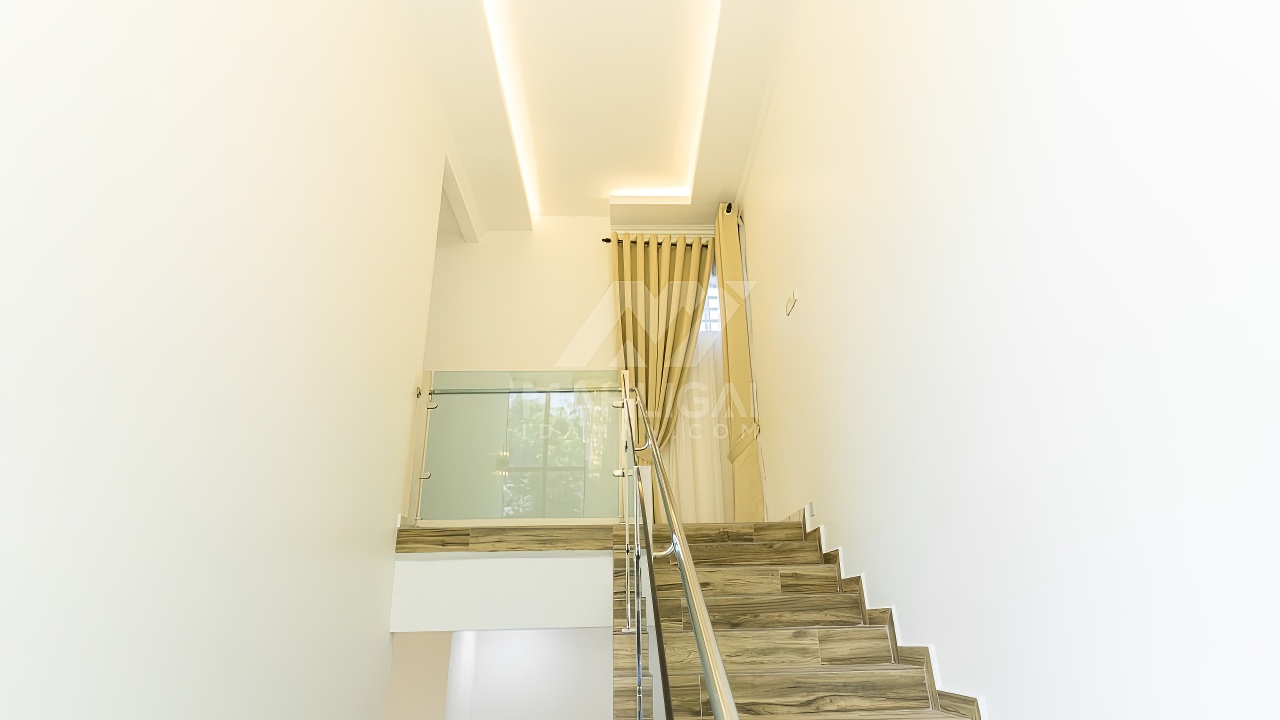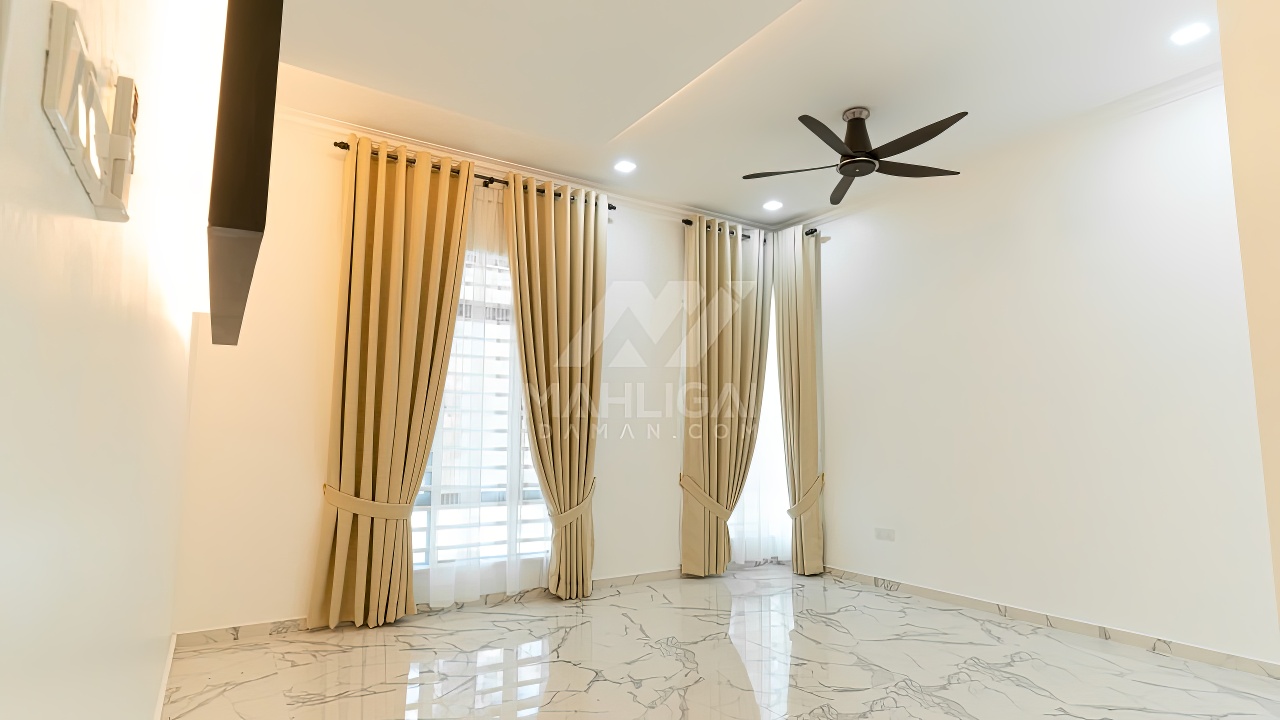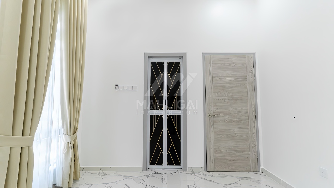 Banglo ini dibina dengan spesifikasi asas pakej silver dengan penambahan aksesori iaitu pemasangan cornice pada keseluruhan tingkap dan dinding luar rumah, groove line pada dinding di bahagian luar rumah