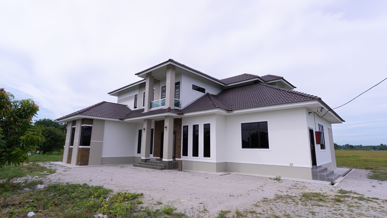 Banglo dua tingkat milik klien kami Dr. Ali telah siap dibina sepenuhnya di Pasir Mas, Kelantan. Banglo ini dilengkapi dengan tujuh (7) bilik tidur dan lima (5) bilik air. Banglo yang berkeluasan 3,571 kaki persegi ini menggabungkan ciri-ciri banglo moden iaitu dari segi rekabentuk dalaman dan luaran yang sangat menarik. Dari segi penggunaan tona warna cream dan putih. Bahagian dalam rumah pula mereka memilih warna kuning muda dan putih menaikan lagi seri dan kemewahan dalam rumah.