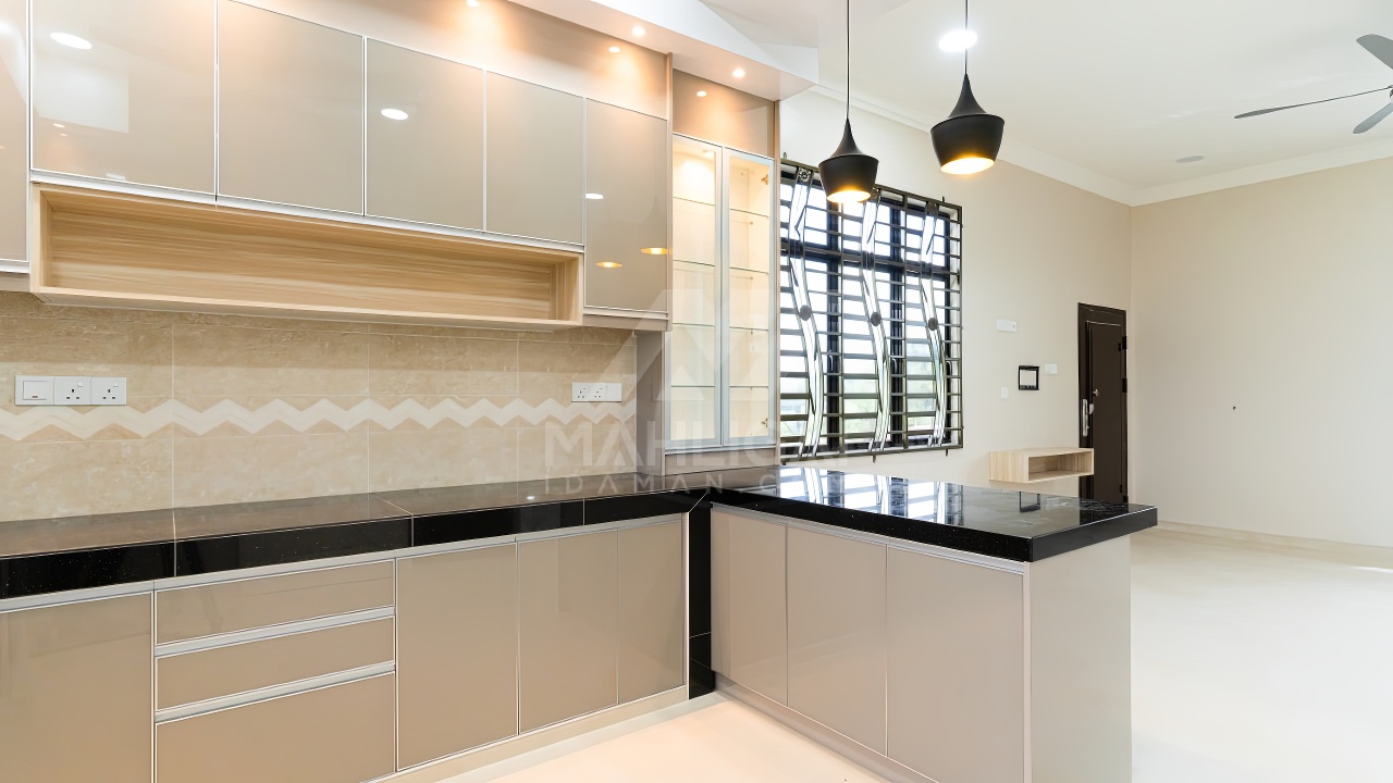 Banglo ini dibina dengan spesifikasi asas pakej gold dengan penambahan aksesori iaitu pemasangan cornice pada keseluruhan tingkap dan dinding luar rumah, groove line pada dinding di bahagian luar rumah