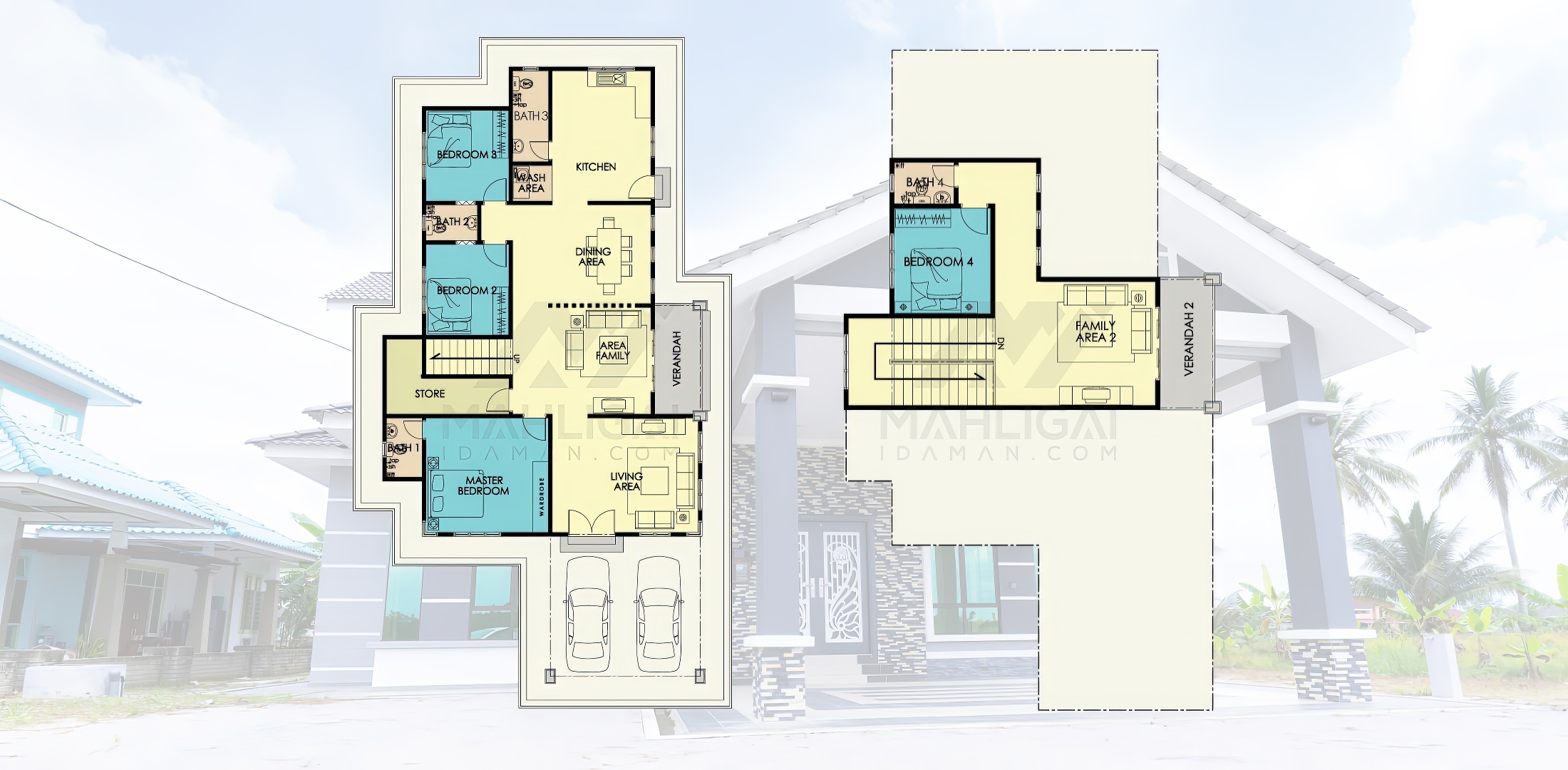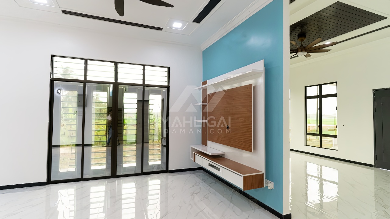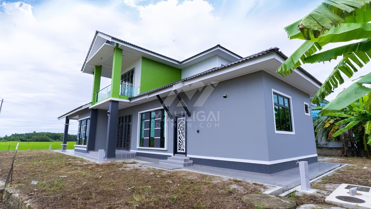 Banglo dua tingkat milik klien kami Encik Azraai kini telah siap dibina sepenuhnya di Kubang Terap, Pasir Mas, Kelantan. Banglo ini dilengkapi dengan empat (4) bilik tidur dan empat (4) bilik air. Banglo yang berkeluasan 3,010 kaki persegi ini menggabungkan ciri-ciri banglo moden iaitu dari segi rekabentuk dalaman dan luaran yang sangat menarik. Dari segi penggunaan tona warna ungu dan hijau. Bahagian dalam rumah pula mereka memilih warna pink dan ungu menaikan lagi seri dan kemewahan dalam rumah.