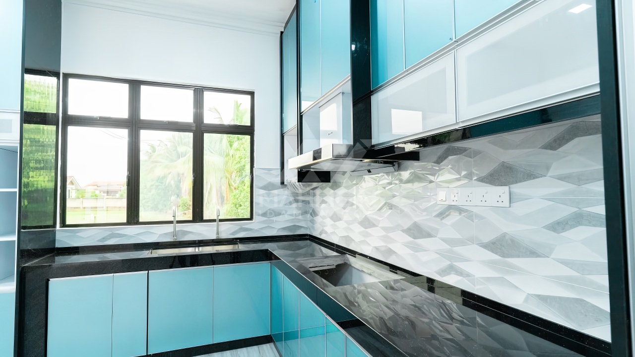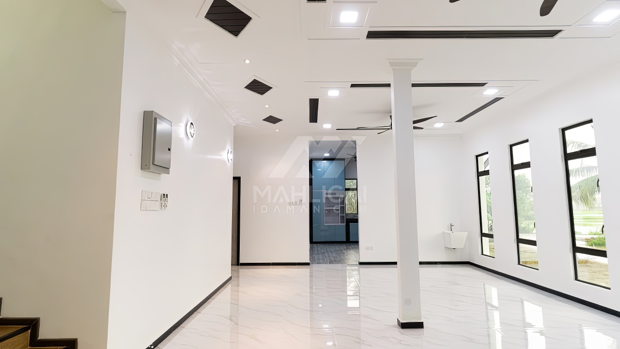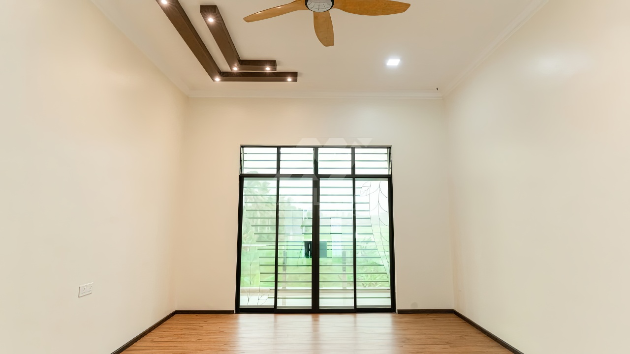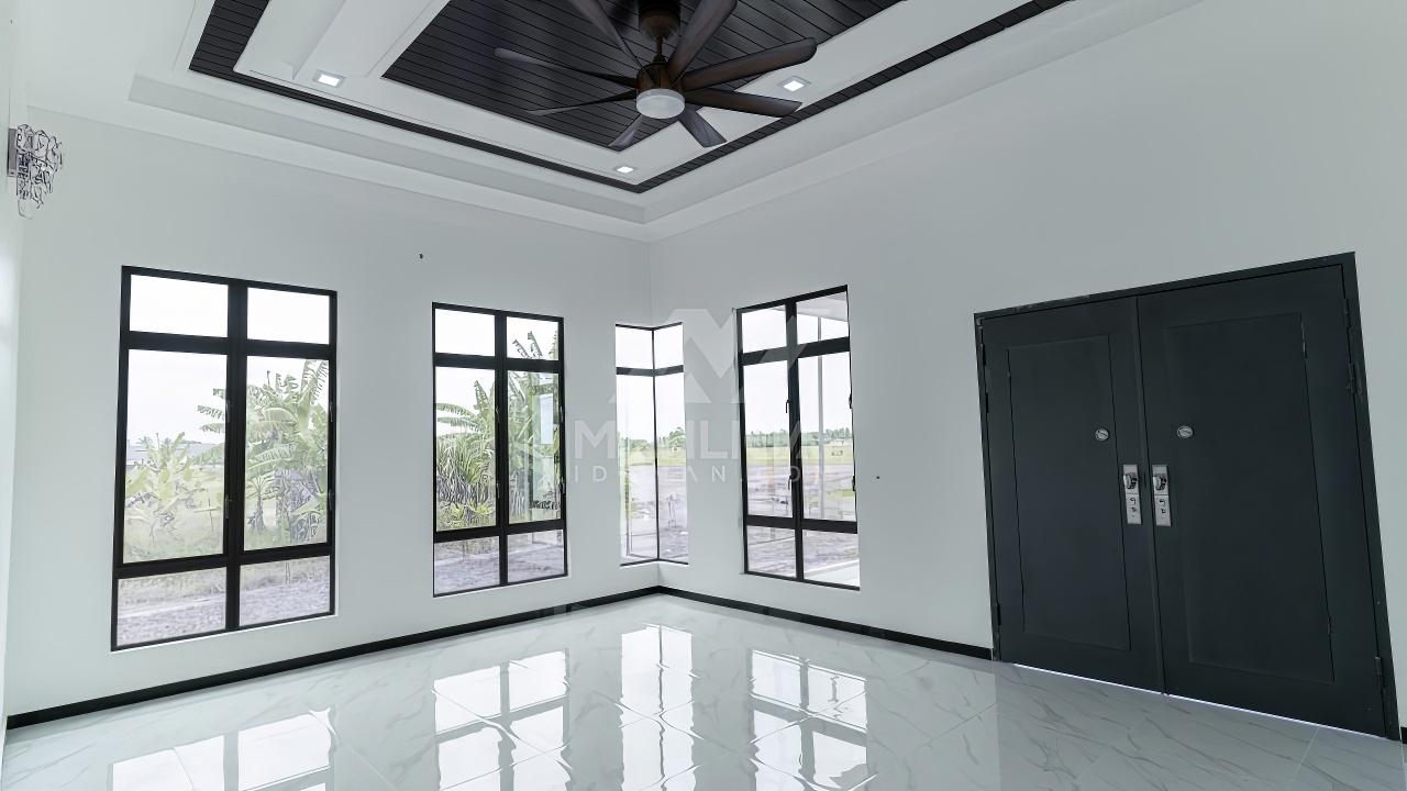 Banglo ini dibina dengan spesifikasi asas pakej silver dengan penambahan aksesori iaitu pemasangan cornice pada keseluruhan tingkap dan dinding luar rumah, groove line pada dinding di bahagian luar rumah.