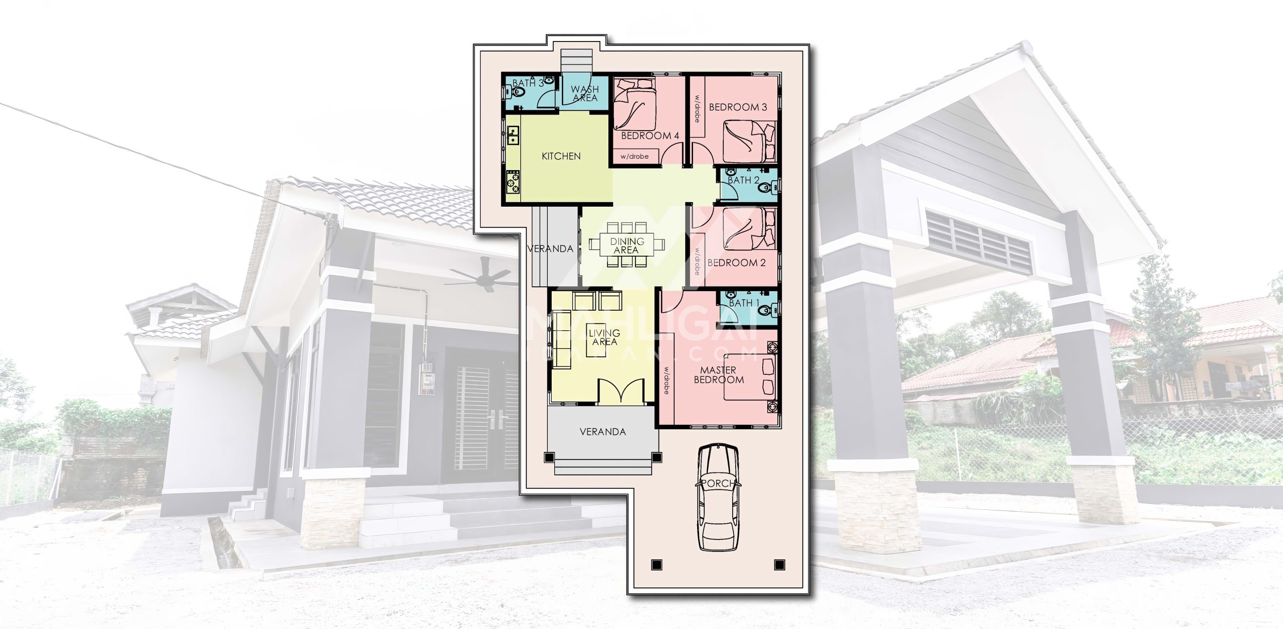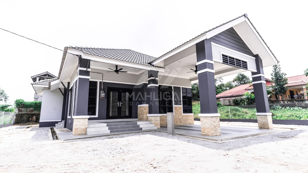 Banglo satu tingkat milik klien kami Encik Almi dan Puan Rosbi kini telah siap dibina sepenuhnya di Keroh, Kuala Krai, Kelantan. Banglo ini dilengkapi dengan empat (4) bilik tidur dan tiga (3) bilik air. Banglo yang berkeluasan 1,826 kaki persegi ini menggabungkan ciri-ciri banglo moden iaitu dari segi rekabentuk dalaman dan luaran yang sangat menarik. Dari segi penggunaan tona warna kelabu dan putih. Bahagian dalam rumah pula mereka memilih warna biru dan kuning menaikan lagi seri dan kemewahan dalam rumah.