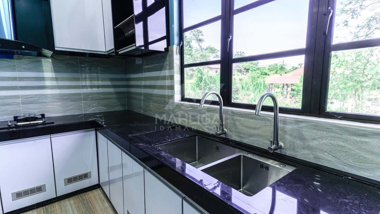 Banglo ini dibina dengan spesifikasi asas pakej silver dengan penambahan aksesori iaitu pemasangan cornice pada keseluruhan tingkap dan dinding luar rumah, groove line pada dinding di bahagian luar rumah.