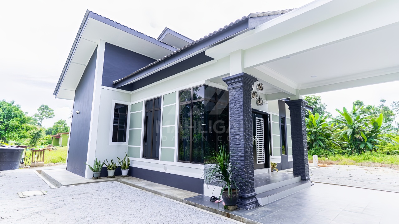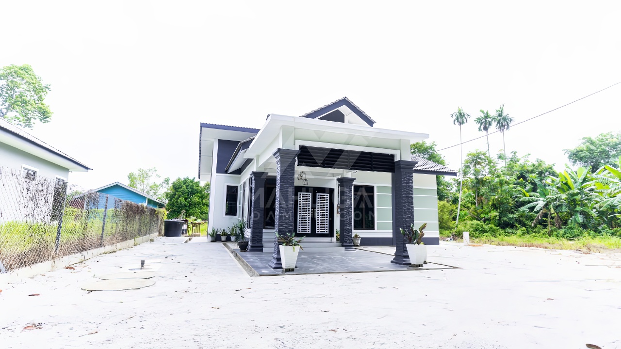 Banglo satu tingkat milik klien kami Puan Farah Auni kini telah siap dibina sepenuhnya di Chekok, Pasir Mas, Kelantan. Banglo ini dilengkapi dengan tiga (3) bilik tidur dan dua (2) bilik air. Banglo yang berkeluasan 1,000 kaki persegi ini menggabungkan ciri-ciri banglo moden iaitu dari segi rekabentuk dalaman dan luaran yang sangat menarik. Dari segi penggunaan tona kelabu dan hijau. Bahagian dalam rumah pula mereka memilih warna putih dan cream menaikan lagi seri dan kemewahan dalam rumah.