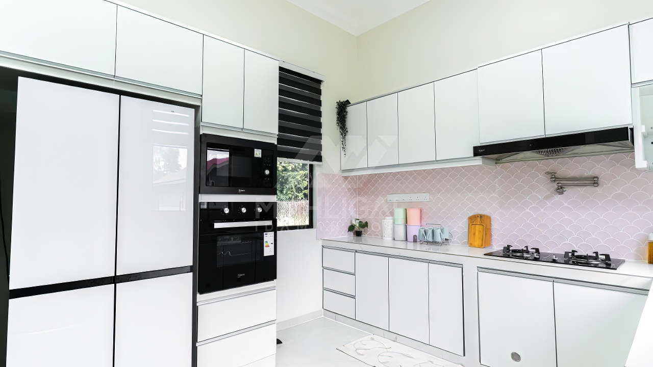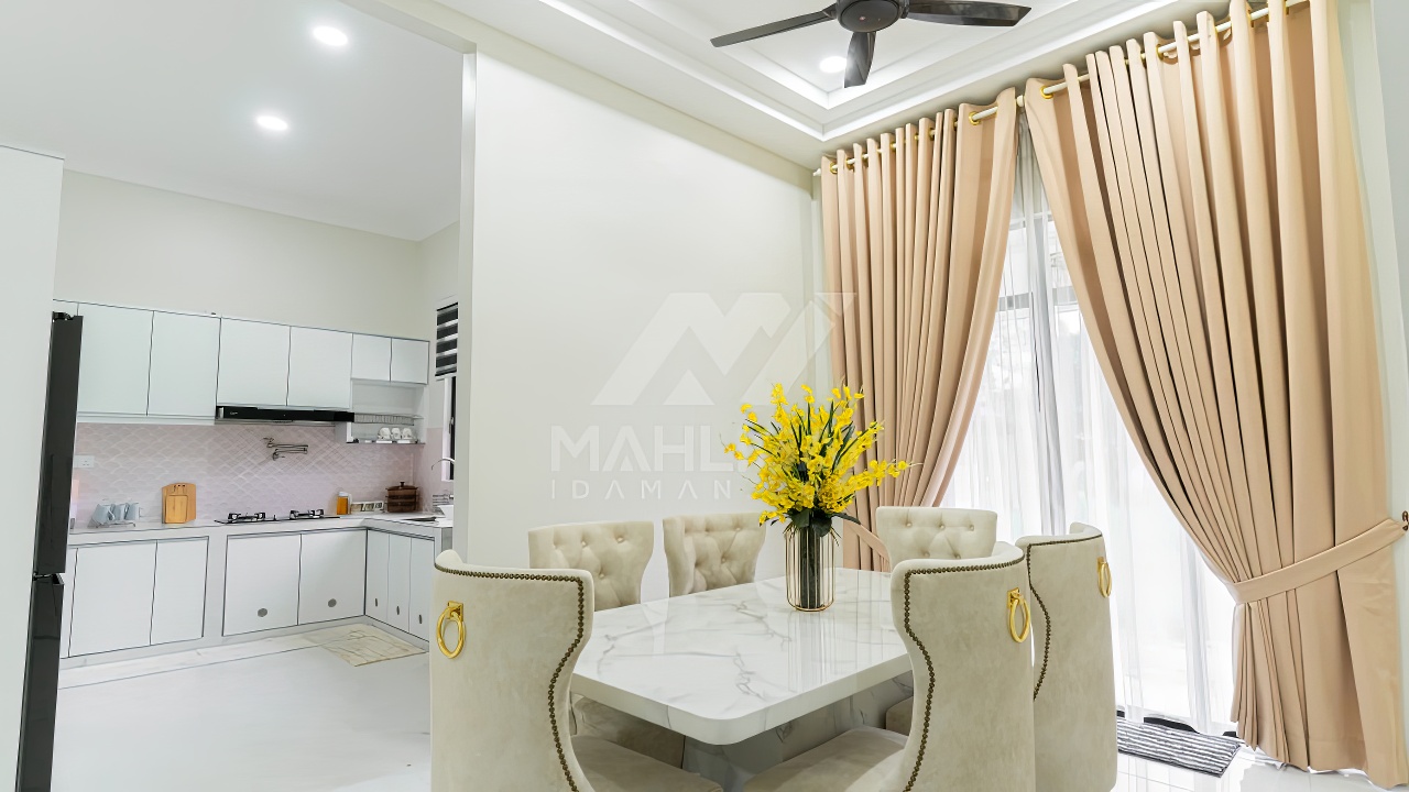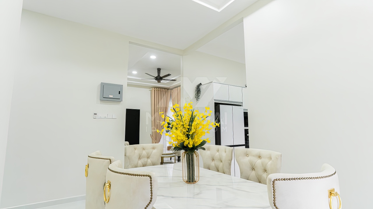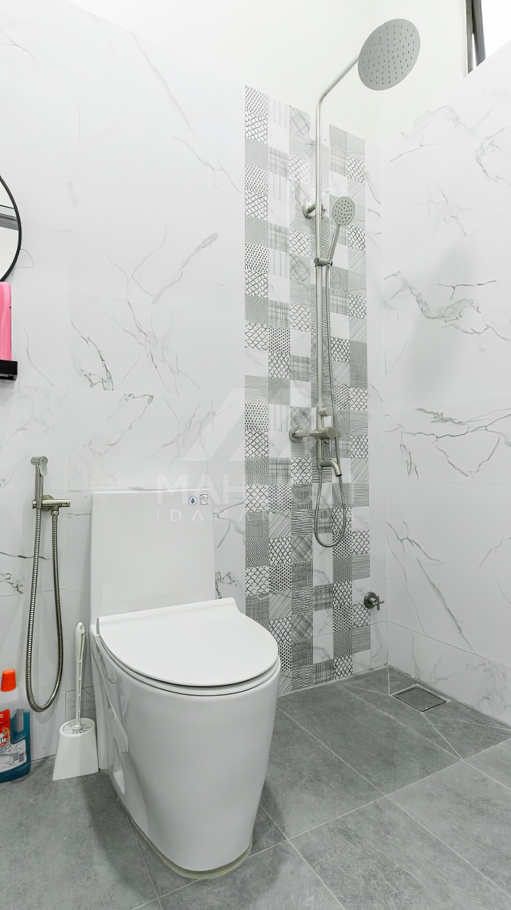 Banglo ini dibina dengan spesifikasi asas pakej silver dengan penambahan aksesori iaitu pemasangan cornice pada keseluruhan tingkap dan dinding luar rumah, groove line pada dinding di bahagian luar rumah.