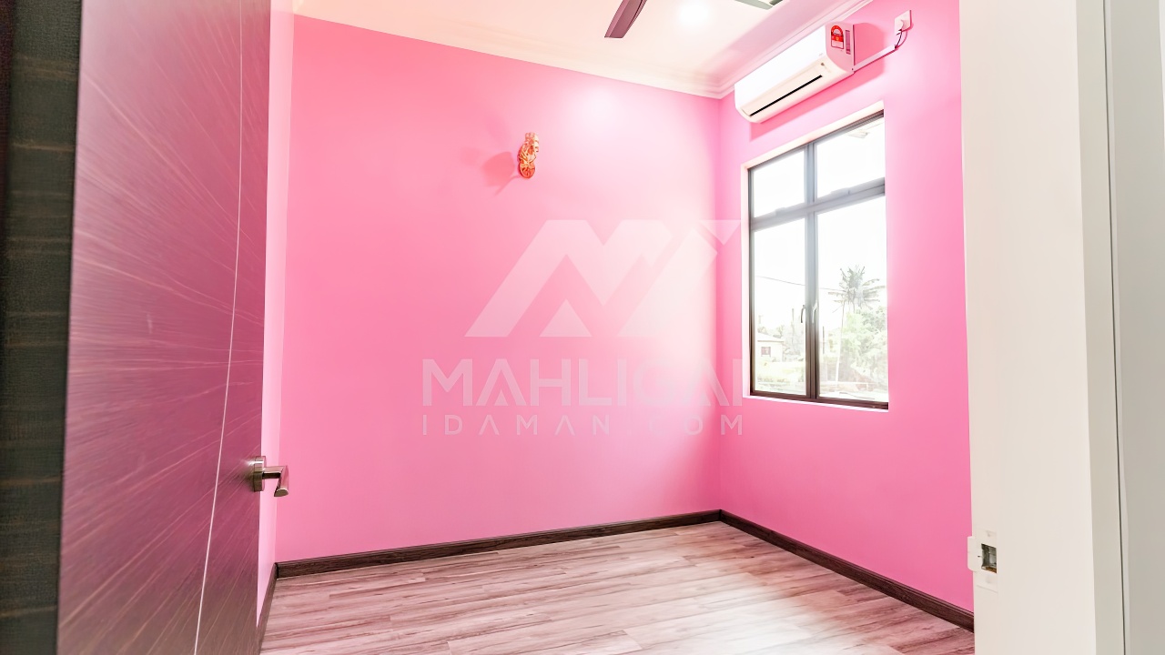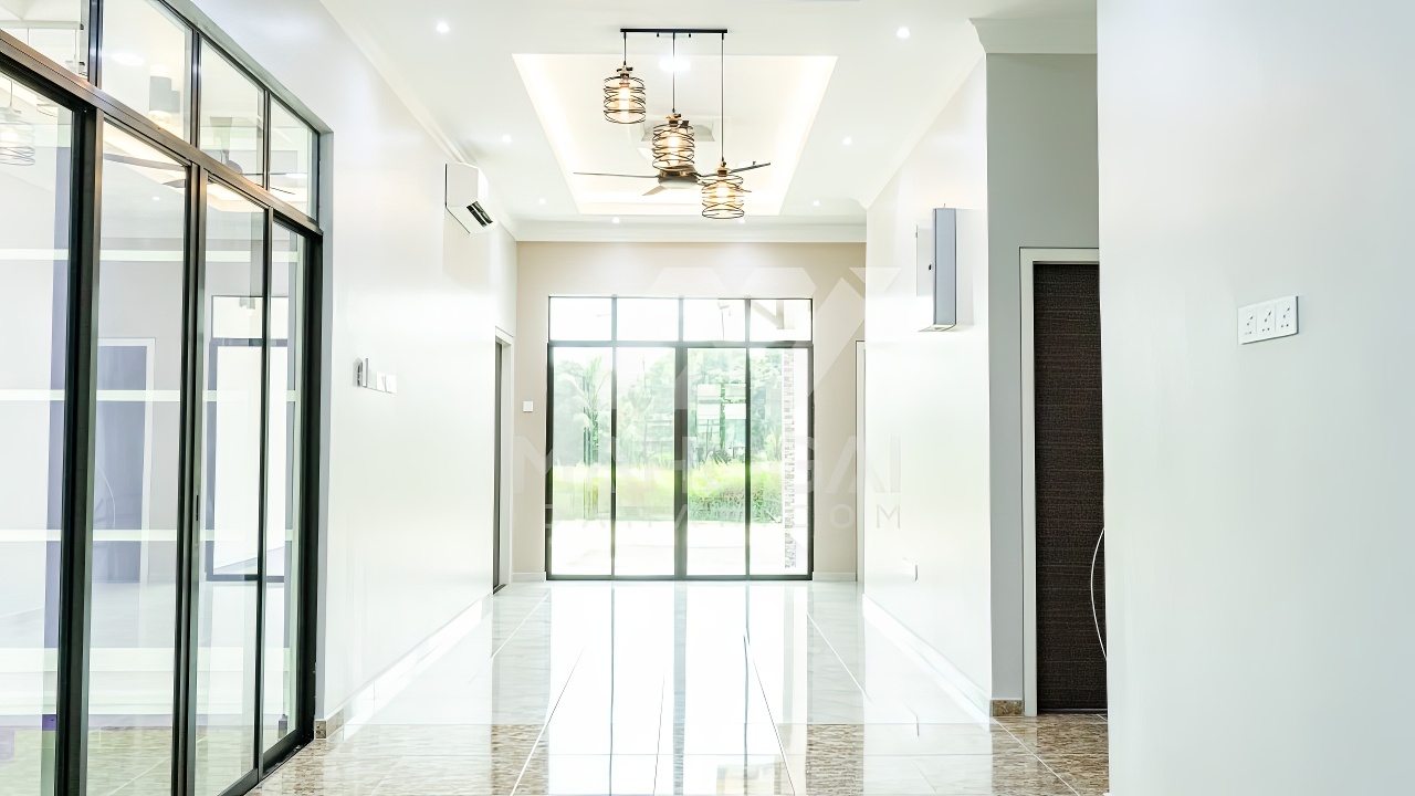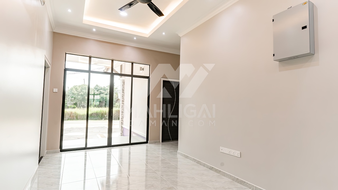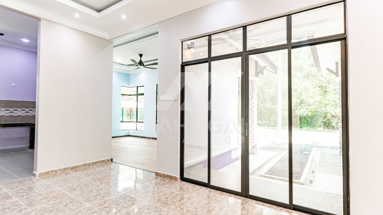 Banglo ini dibina dengan spesifikasi asas pakej gold dengan penambahan aksesori iaitu pemasangan cornice pada keseluruhan tingkap dan dinding luar rumah, groove line pada dinding di bahagian luar rumah.