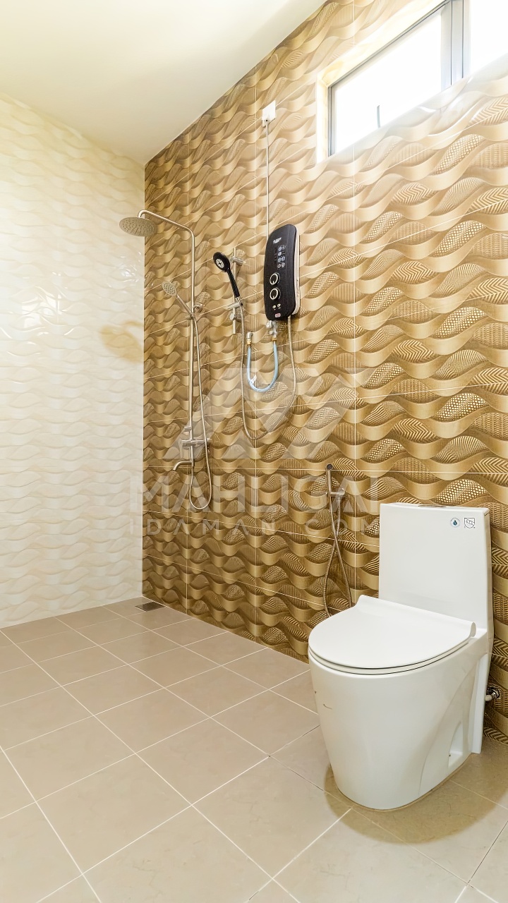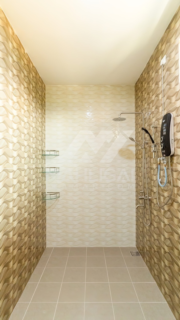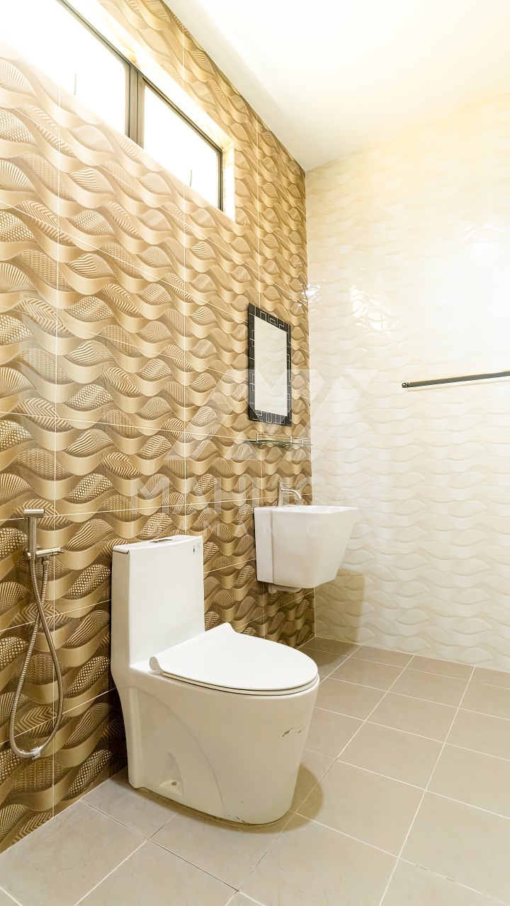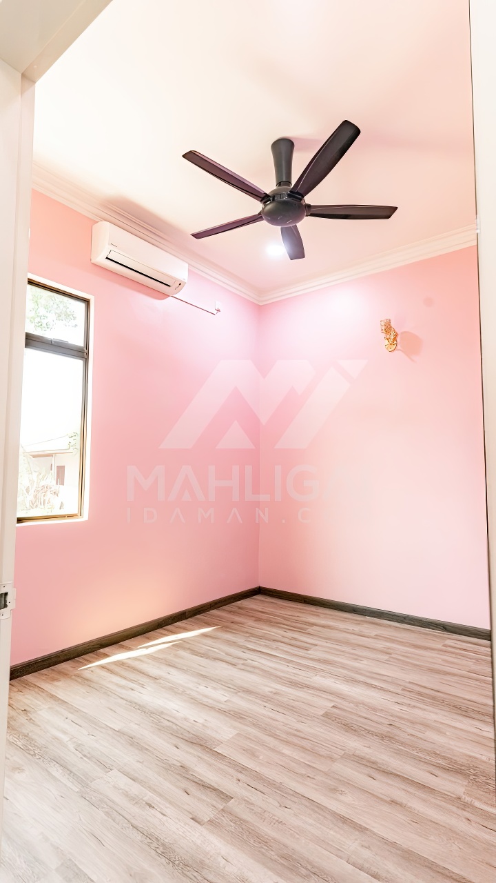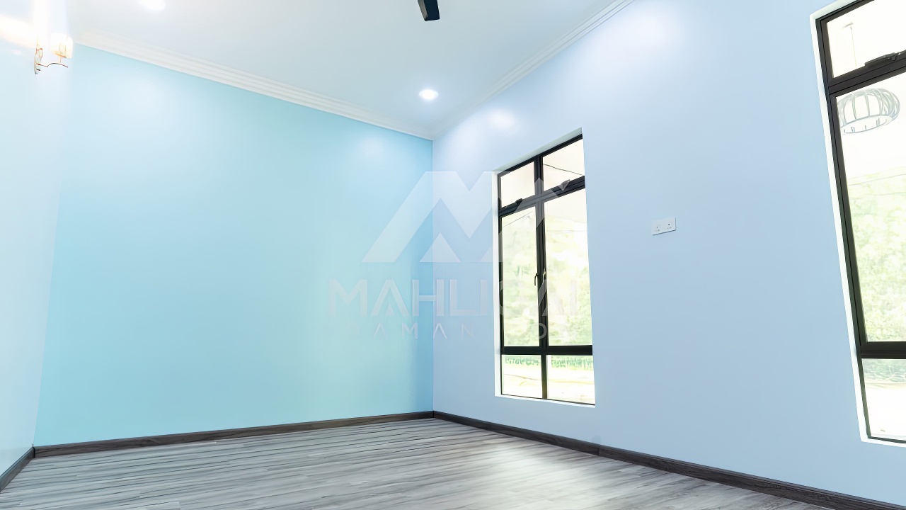 Banglo ini dibina dengan spesifikasi asas pakej gold dengan penambahan aksesori iaitu pemasangan cornice pada keseluruhan tingkap dan dinding luar rumah, groove line pada dinding di bahagian luar rumah.