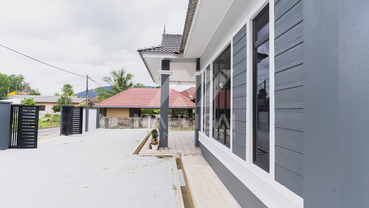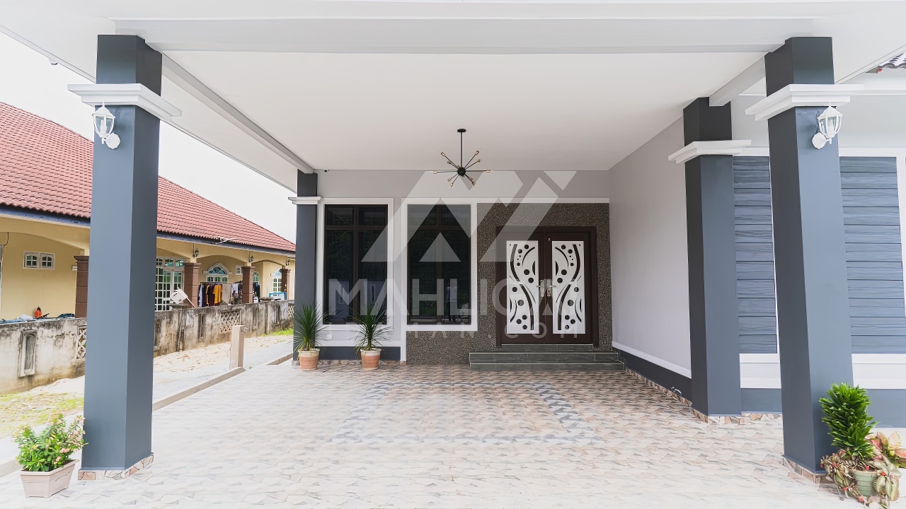 Banglo satu tingkat milik klien kami Puan Muhaini kini telah siap dibina sepenuhnya di Besut, Terengganu. Banglo ini dilengkapi dengan empat (4) bilik tidur dan dua (2) bilik air. Banglo yang berkeluasan 2,458 kaki persegi ini menggabungkan ciri-ciri banglo moden iaitu dari segi rekabentuk dalaman dan luaran yang sangat menarik. Dari segi penggunaan tona hijau tua dan kelabu. Bahagian dalam rumah pula mereka memilih warna putih dan biru gelap menaikan lagi seri dan kemewahan dalam rumah.