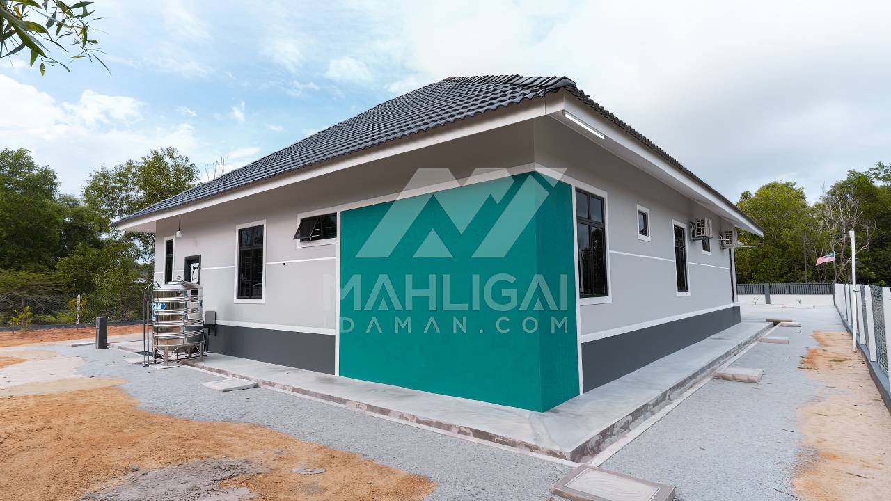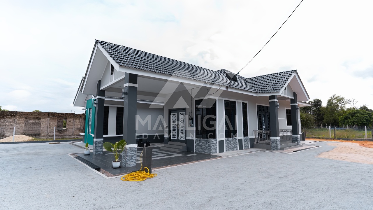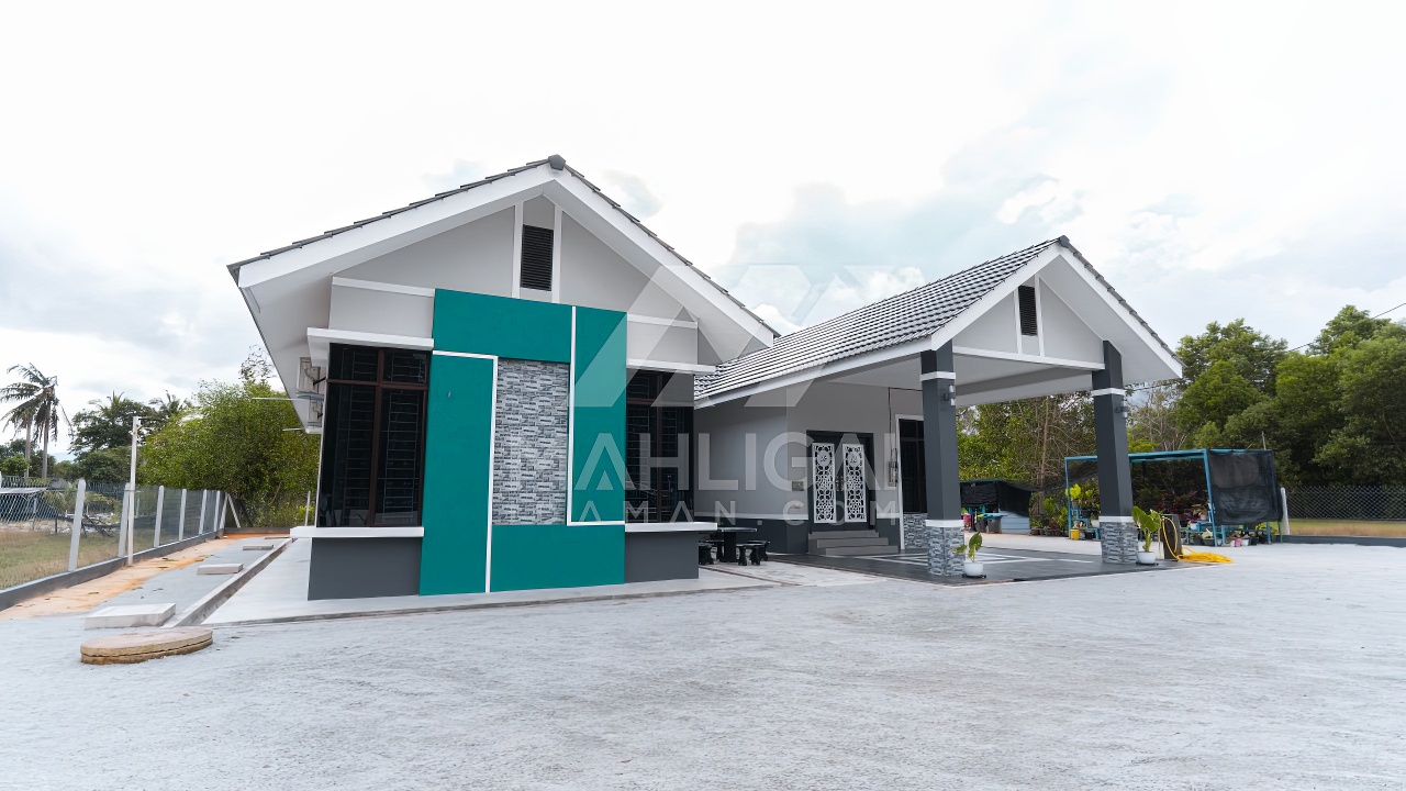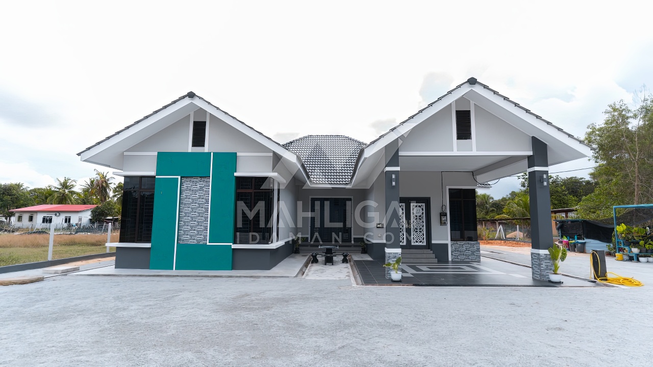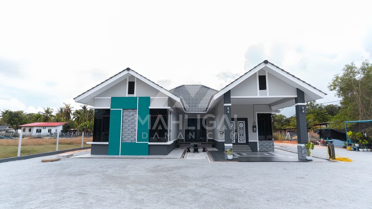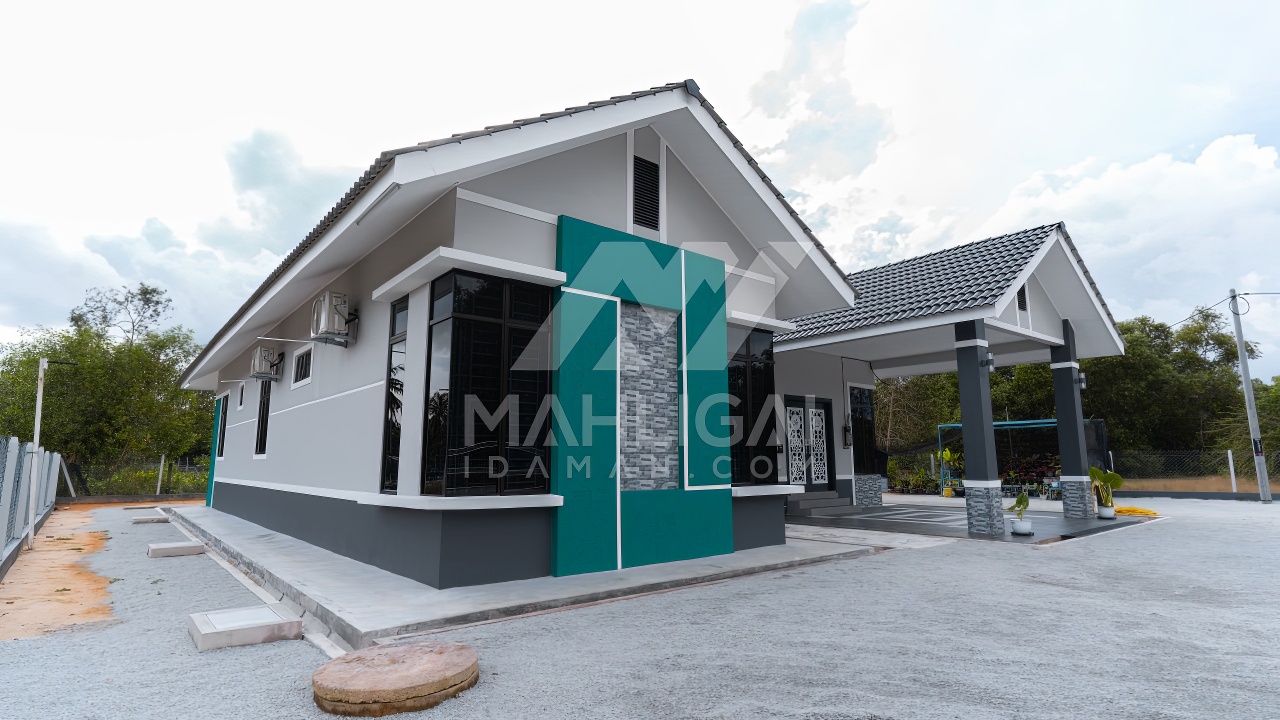 Banglo 1 tingkat milik klien kami Encik Muliyadi telah siap dibina sepenuhnya di Setiu, Terengganu. Banglo ini dilengkapi dengan empat (4) bilik tidur dan tiga (3) bilik air. Banglo yang berkeluasan 2,107 kaki persegi ini menggabungkan ciri-ciri banglo moden iaitu dari segi rekabentuk dalaman dan luaran yang sangat menarik. Dari segi penggunaan tona hijau dan kelabu. Bahagian dalam rumah pula mereka memilih warna biru dan hijau menaikan lagi seri dan kemewahan dalam rumah.