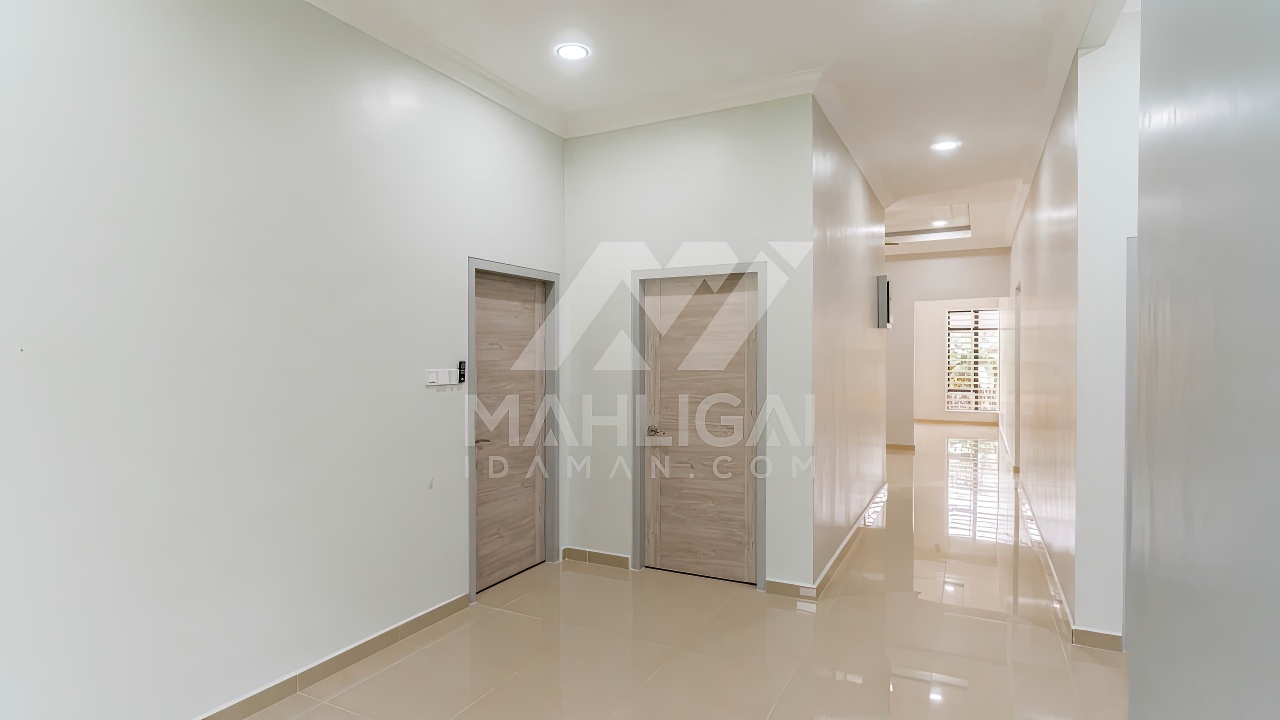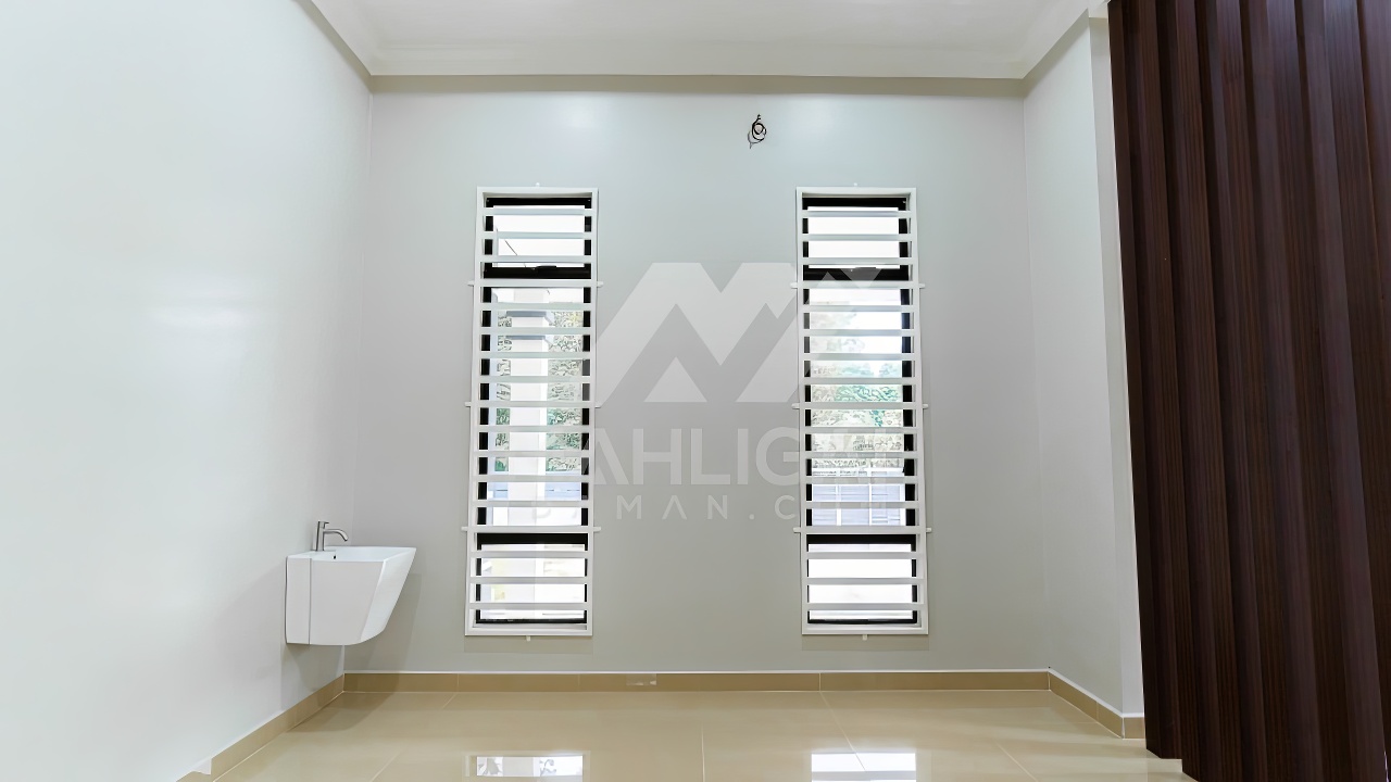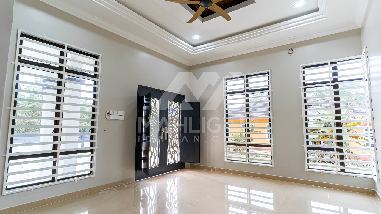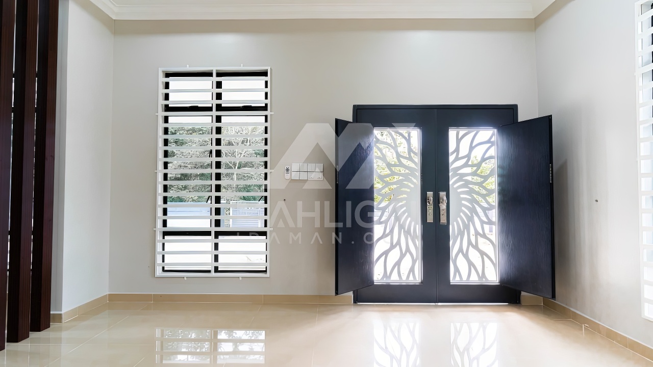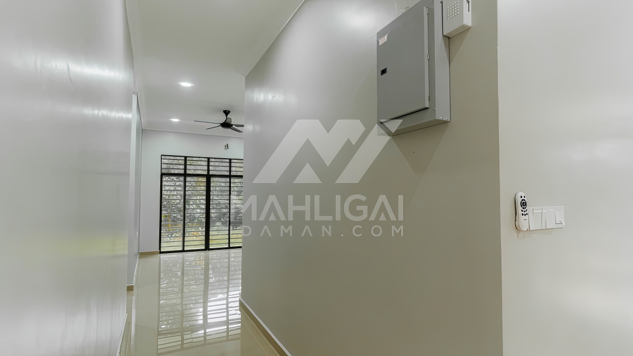 Banglo ini dibina dengan spesifikasi asas pakej silver dengan penambahan aksesori iaitu pemasangan cornice pada keseluruhan tingkap dan dinding luar rumah, groove line pada dinding di bahagian luar rumah.