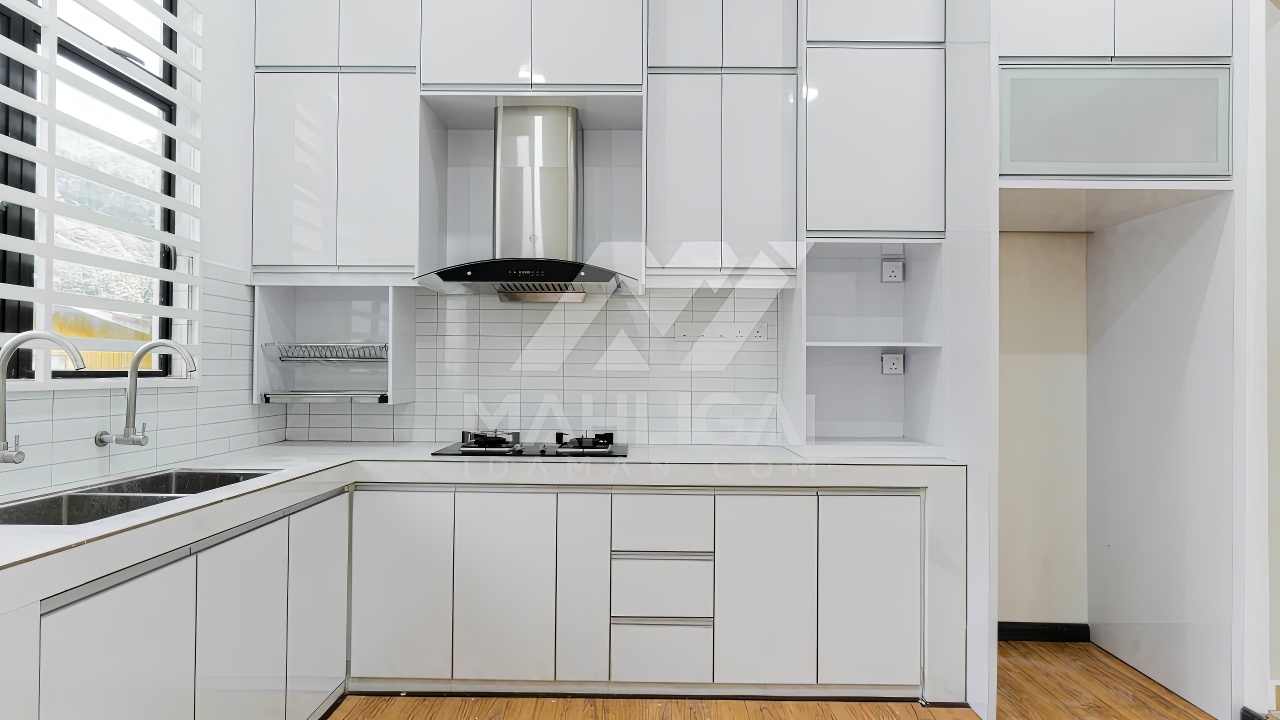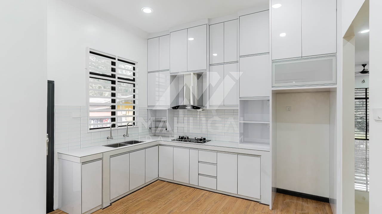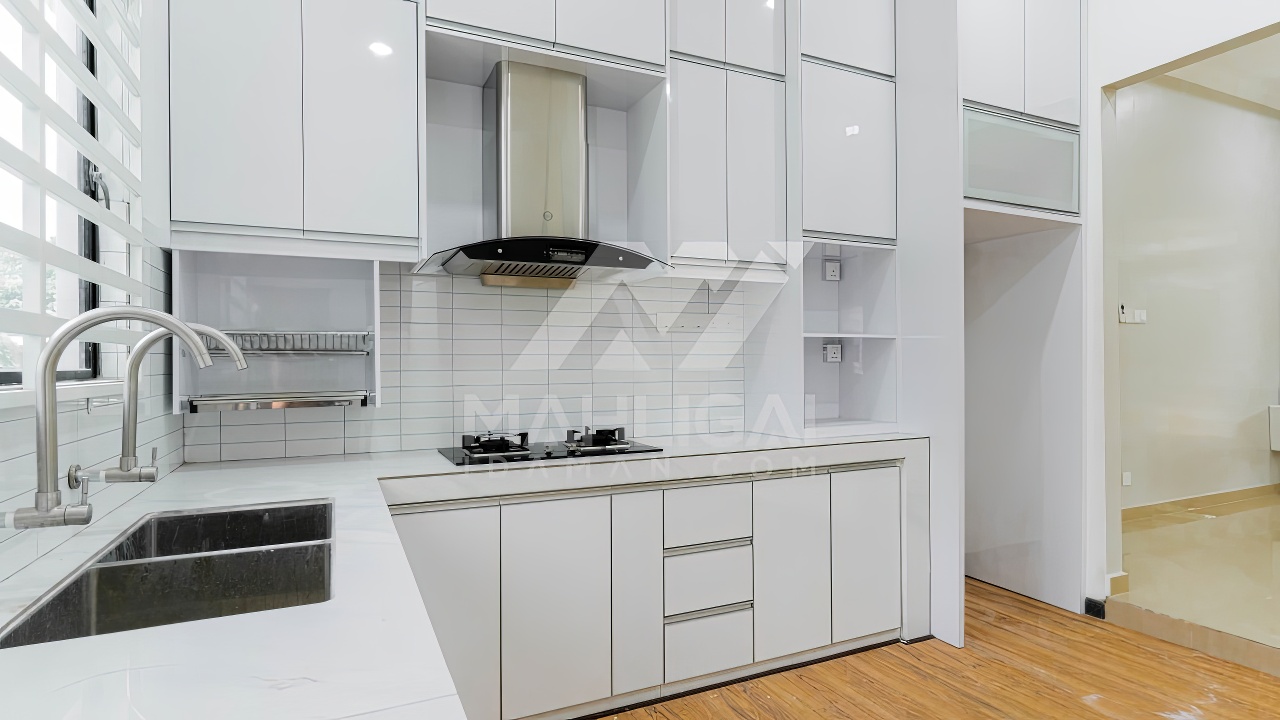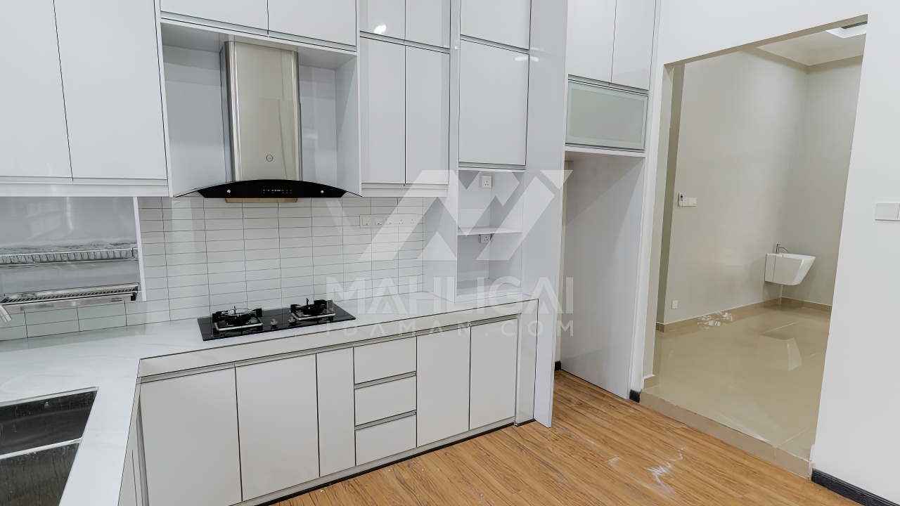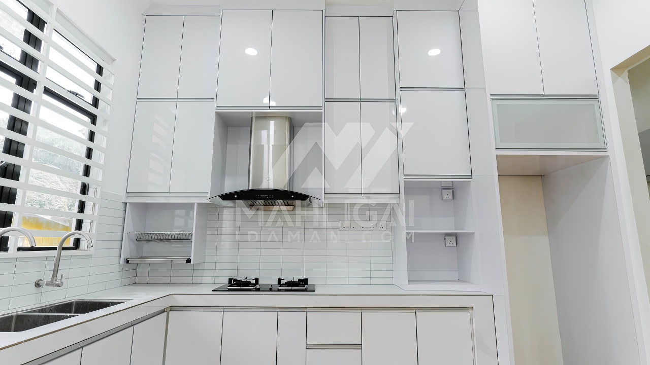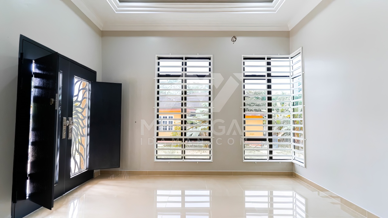 Banglo ini dibina dengan spesifikasi asas pakej silver dengan penambahan aksesori iaitu pemasangan cornice pada keseluruhan tingkap dan dinding luar rumah, groove line pada dinding di bahagian luar rumah.
