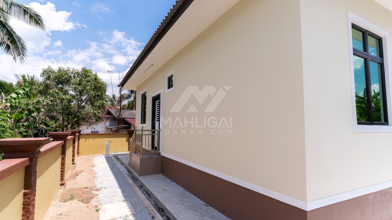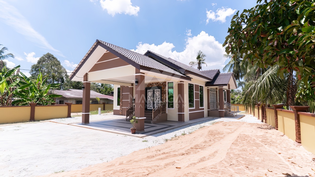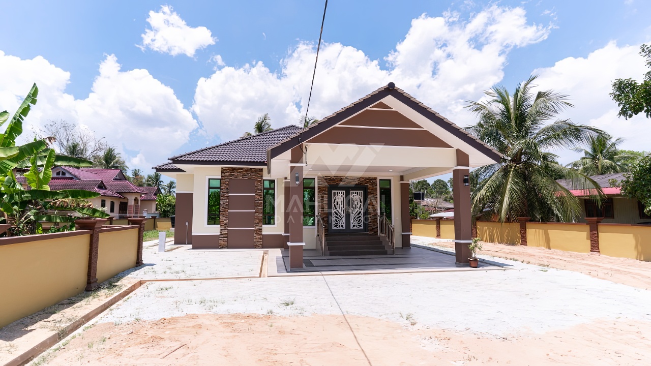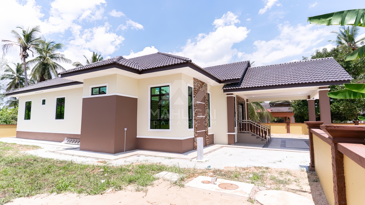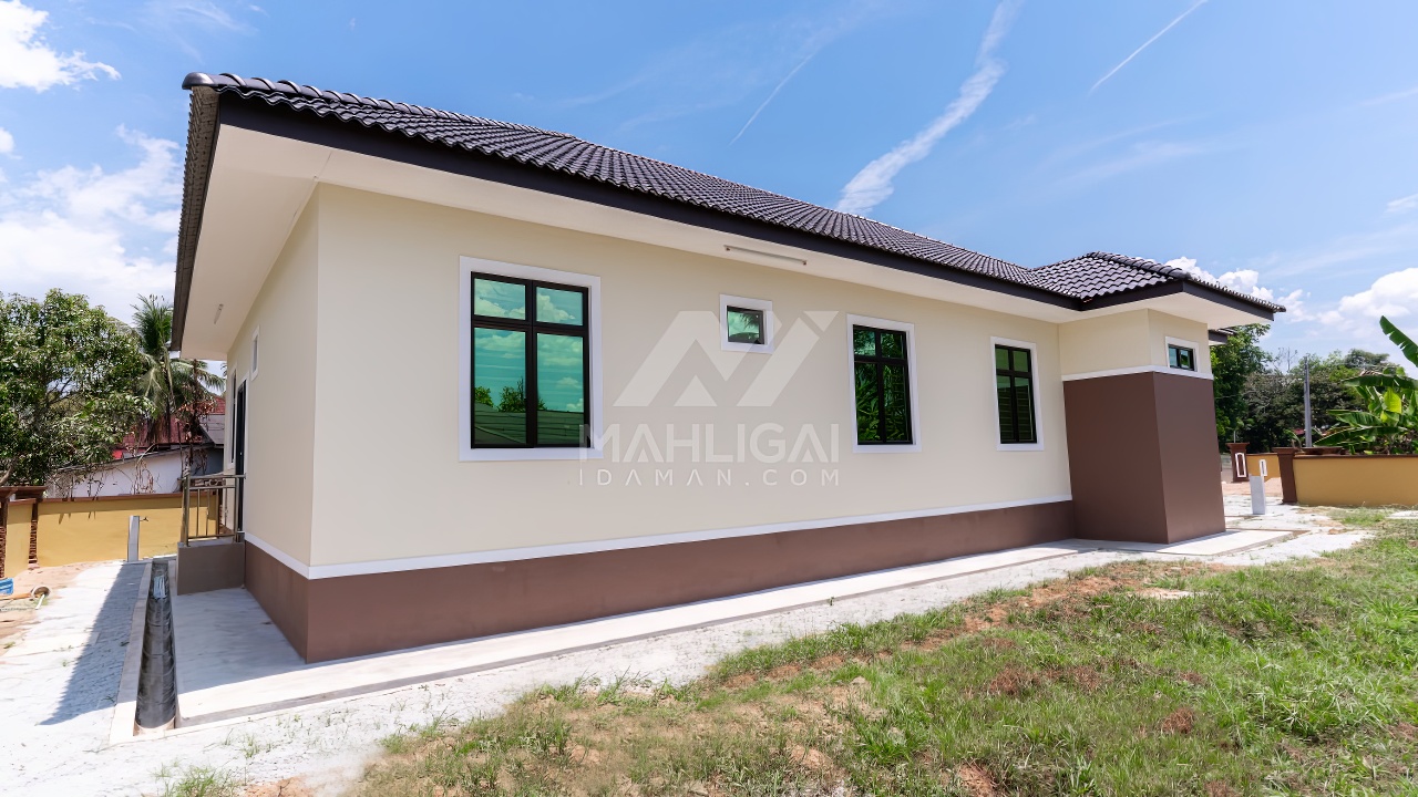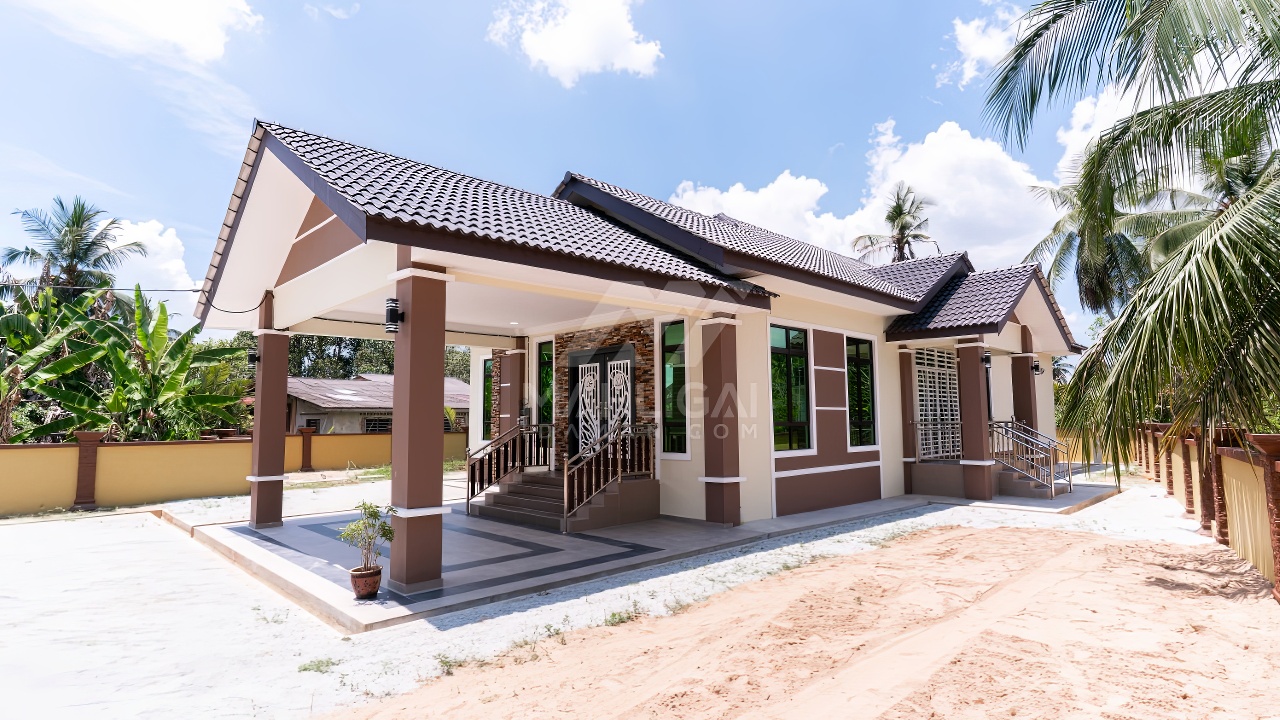 Kini banglo satu tingkat milik klien kami Tuan Syazali telah siap dibina sepenuhnya di Bunut Susu, Pasir Mas, Kelantan. Banglo ini dilengkapi dengan empat (4) bilik tidur dan tiga (3) bilik air. Banglo yang berkeluasan 2,247 kaki persegi ini menggabungkan ciri-ciri banglo moden iaitu dari segi rekabentuk dalaman dan luaran yang sangat menarik. Dari segi penggunaan tona krim dan coklat. Bahagian dalam rumah pula mereka memilih warna putih dan kuning, menaikan lagi seri dan kemewahan dalam rumah.