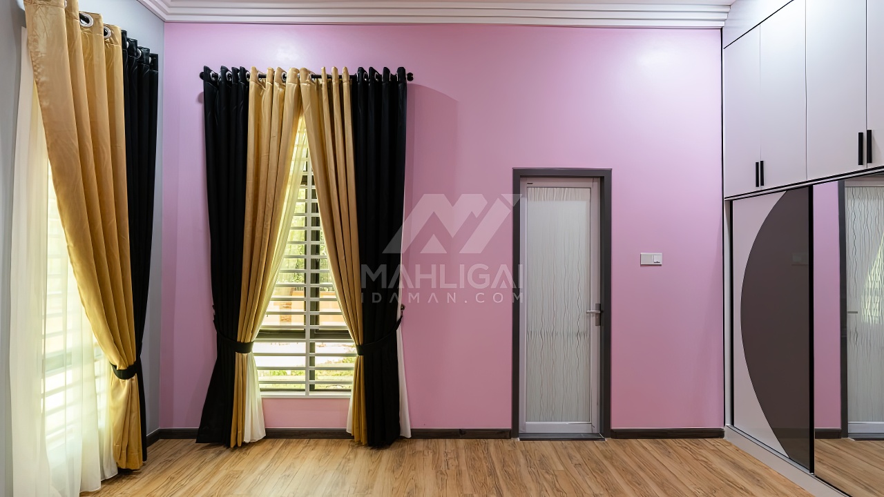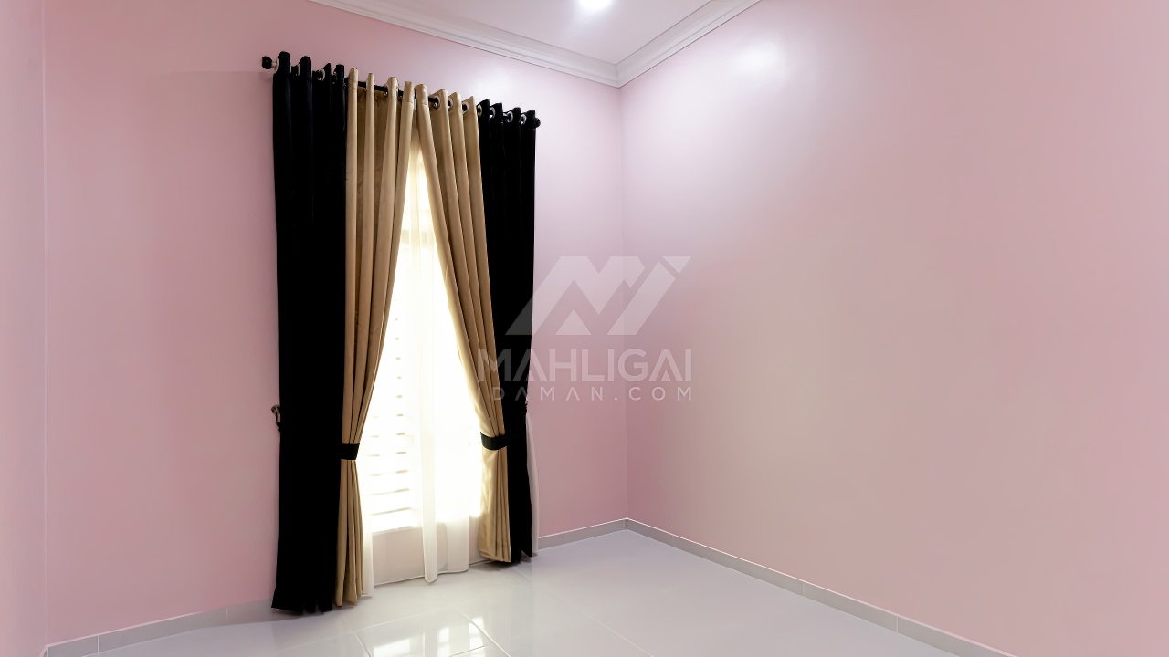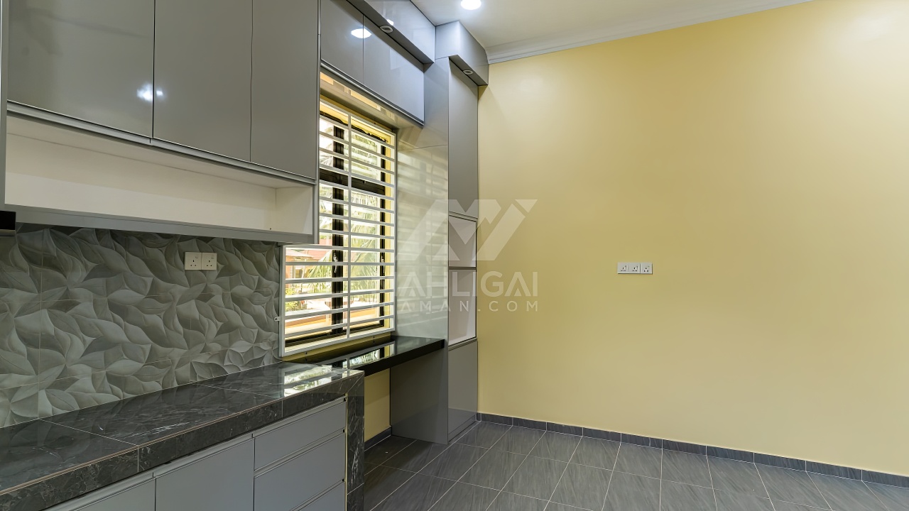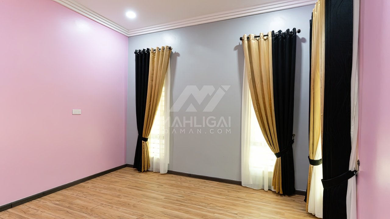 Banglo ini dibina dengan spesifikasi asas pakej gold dengan penambahan aksesori iaitu pemasangan cornice pada keseluruhan tingkap dan dinding luar rumah, groove line pada dinding di bahagian luar rumah