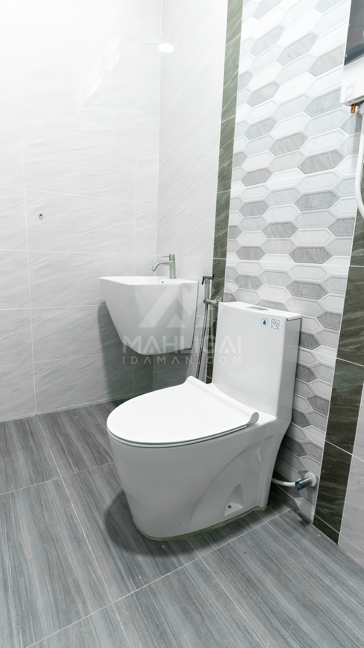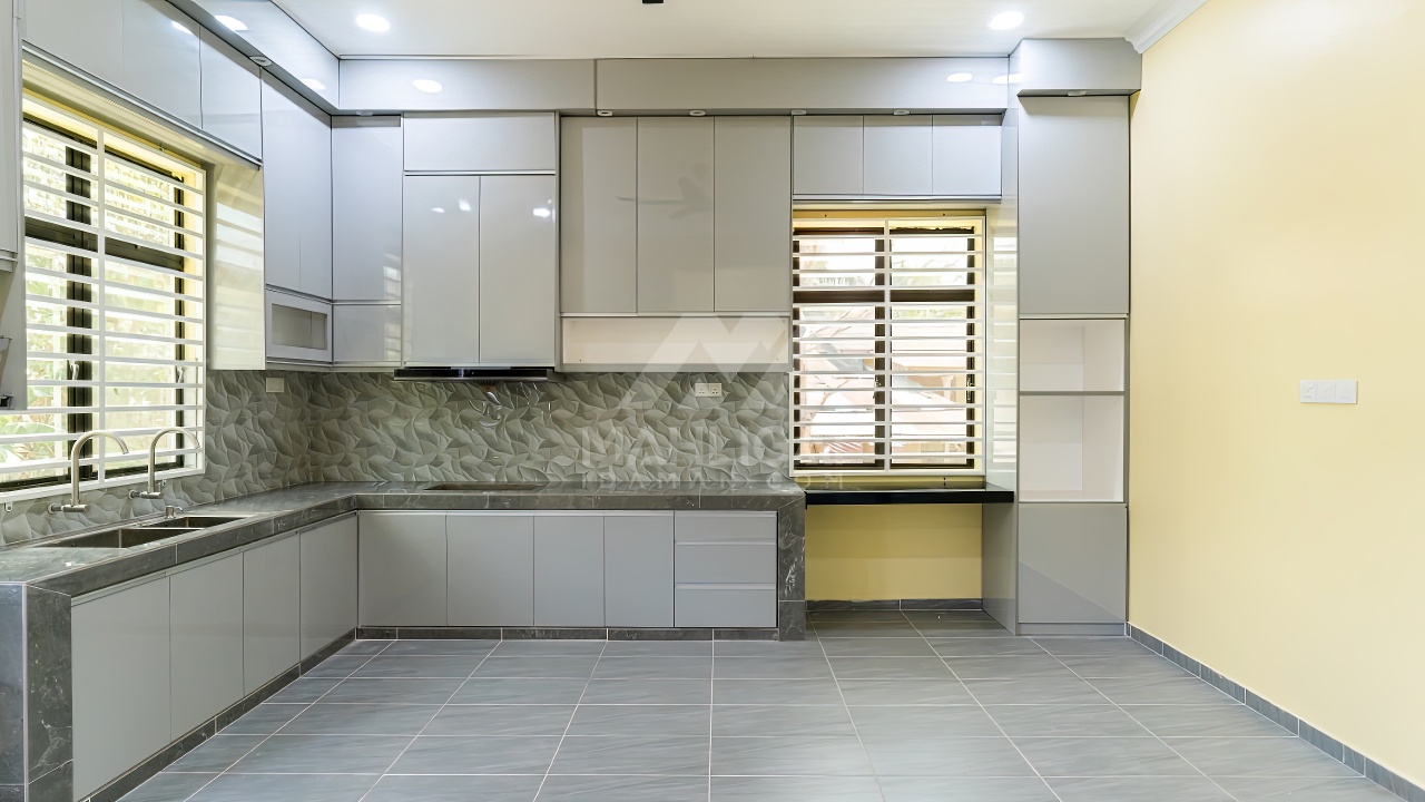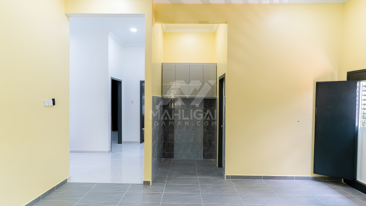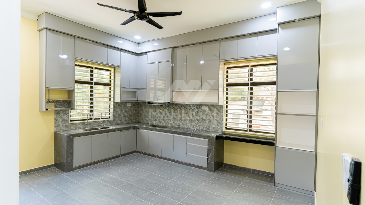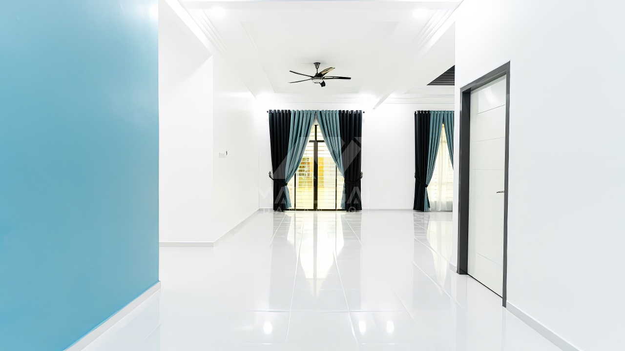 Banglo ini dibina dengan spesifikasi asas pakej gold dengan penambahan aksesori iaitu pemasangan cornice pada keseluruhan tingkap dan dinding luar rumah, groove line pada dinding di bahagian luar rumah