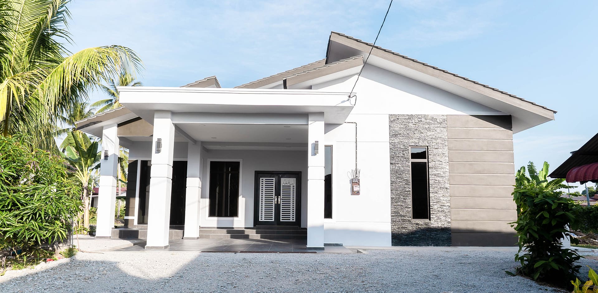 Kini banglo 1 tingkat milik klien kami Puan Anis Izzati telah siap dibina sepenuhnya di Kg Chempaka, Kelantan. Banglo ini dilengkapi dengan tiga bilik tidur dan dua bilik air. Banglo yang berkeluasan 1,640 kaki persegi ini menggabungkan ciri-ciri banglo moden iaitu dari segi rekabentuk dalaman dan luaran yang sangat menarik. Dari segi penggunaan tona putih dan beige. Bahagian dalam rumah pula mereka memilih warna putih, menaikan lagi seri dan kemewahan dalam rumah.