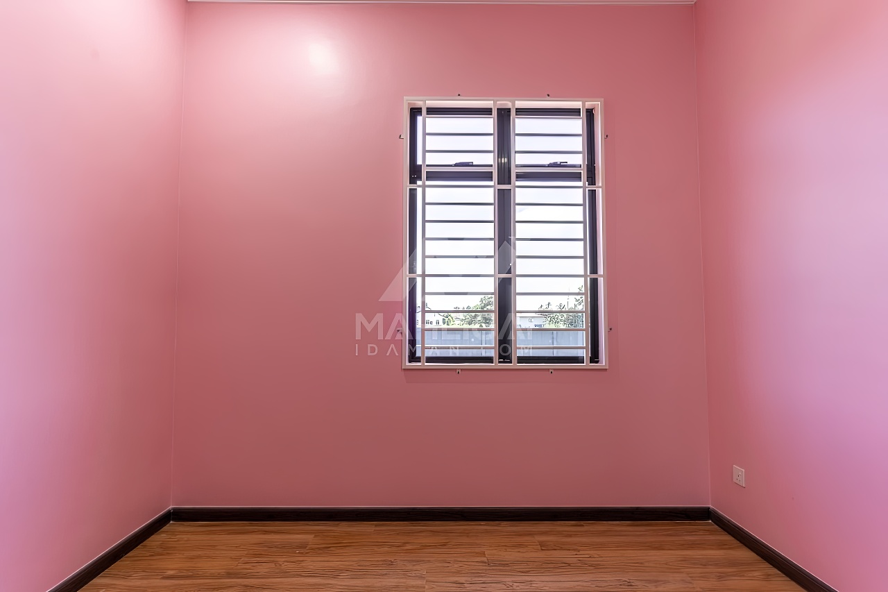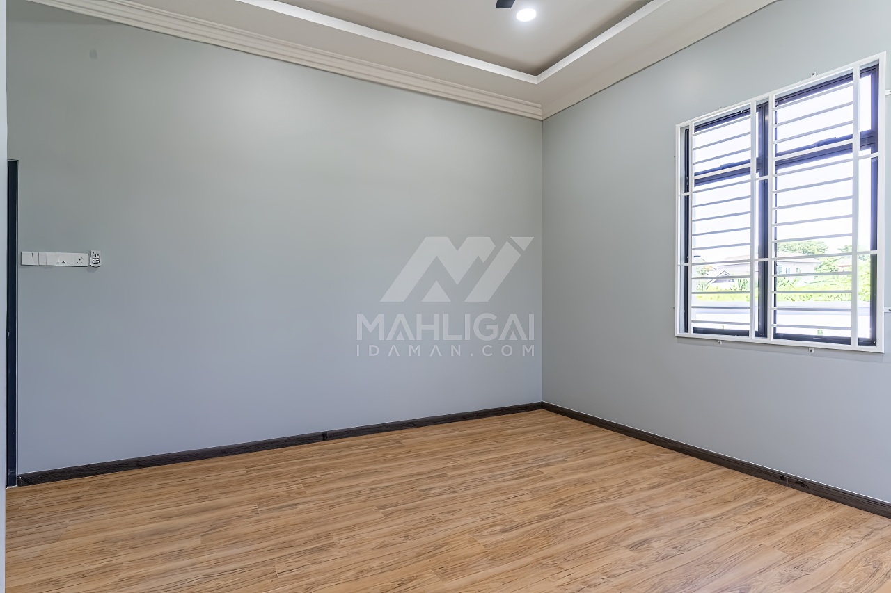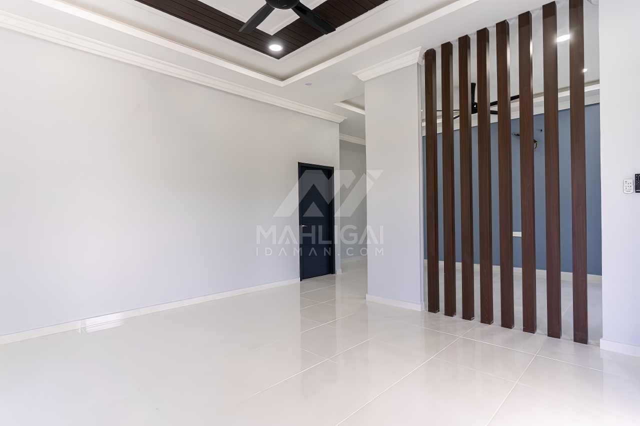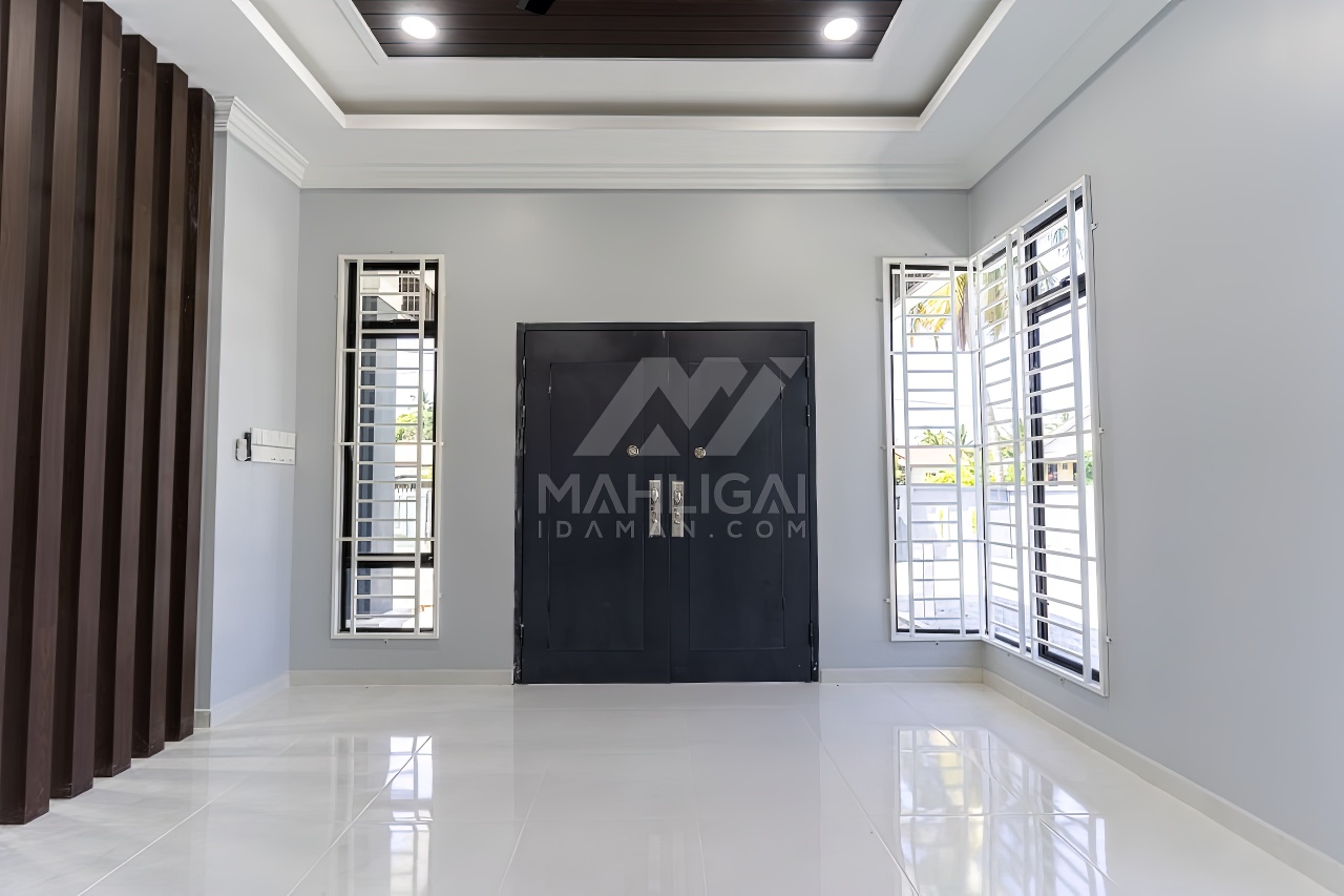 Banglo ini dibina dengan spesifikasi asas pakej gold dengan penambahan aksesori iaitu pemasangan cornice pada keseluruhan tingkap dan dinding luar rumah, groove line pada dinding di bahagian luar rumah