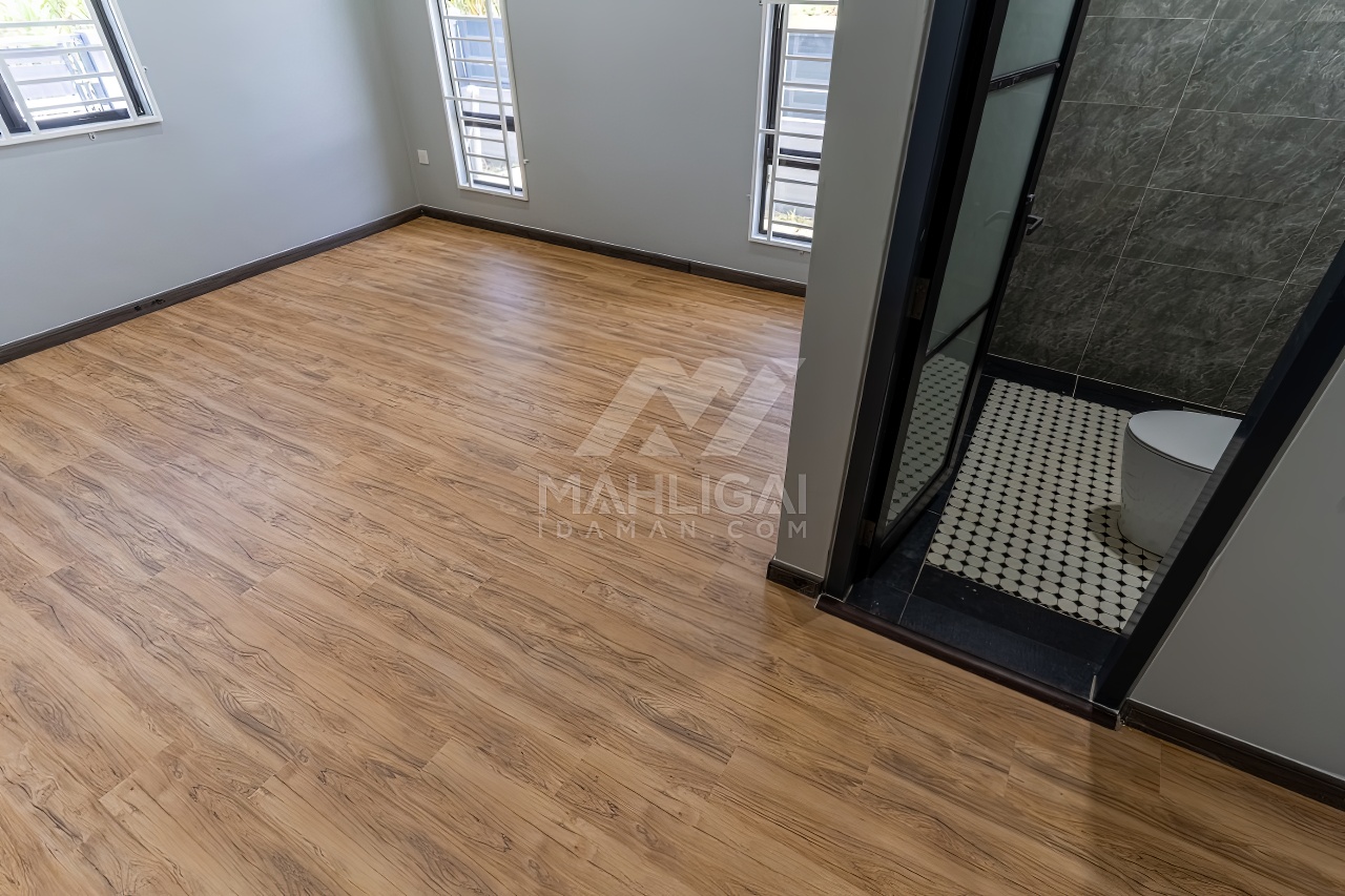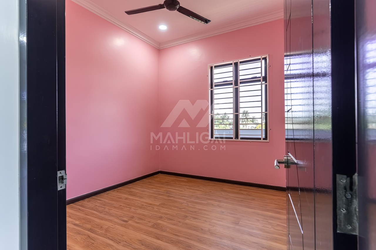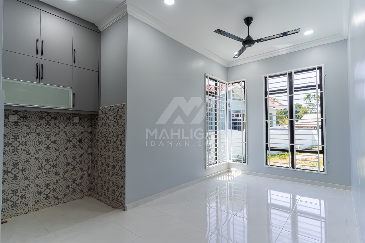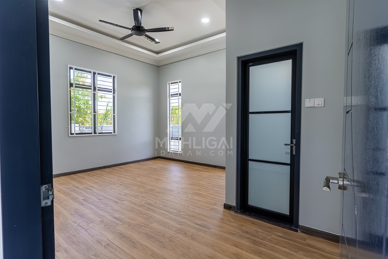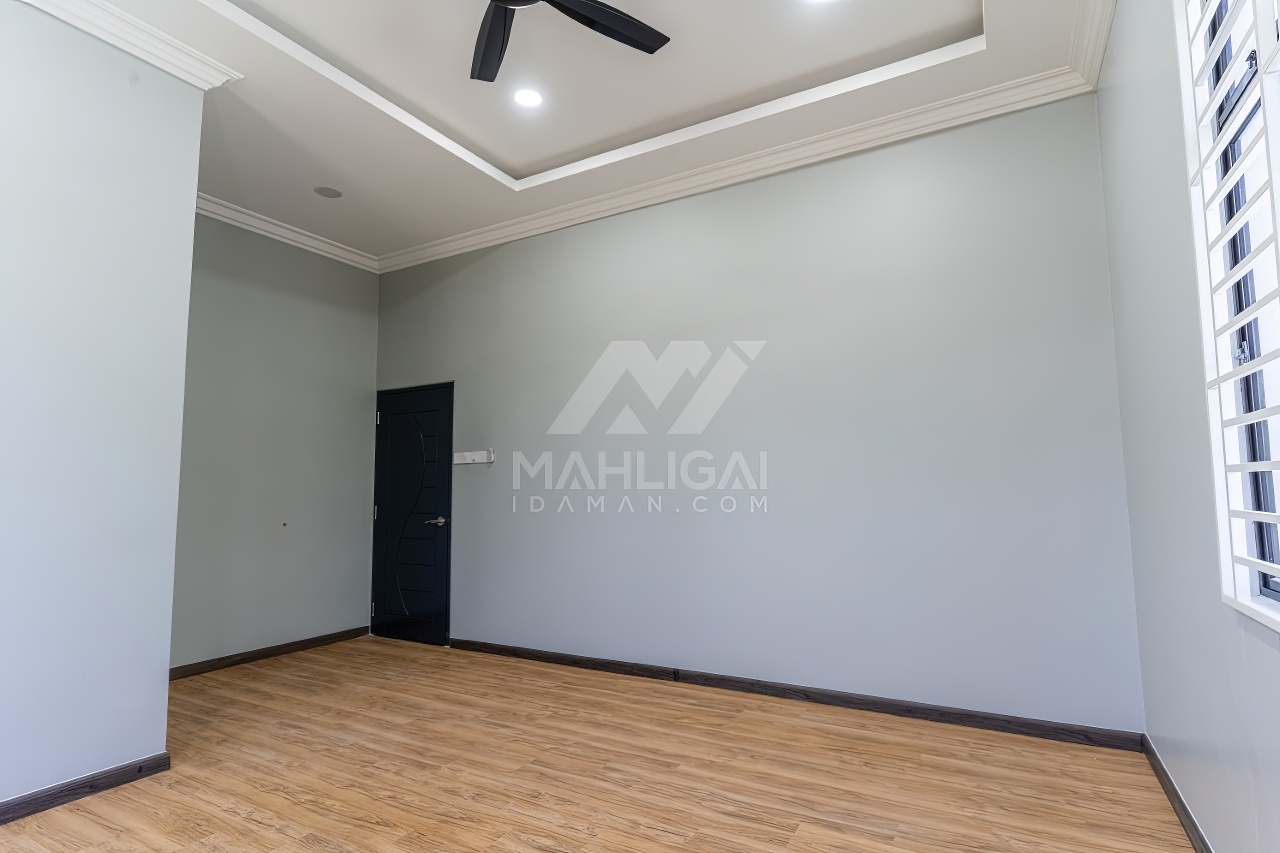 Banglo ini dibina dengan spesifikasi asas pakej gold dengan penambahan aksesori iaitu pemasangan cornice pada keseluruhan tingkap dan dinding luar rumah, groove line pada dinding di bahagian luar rumah
