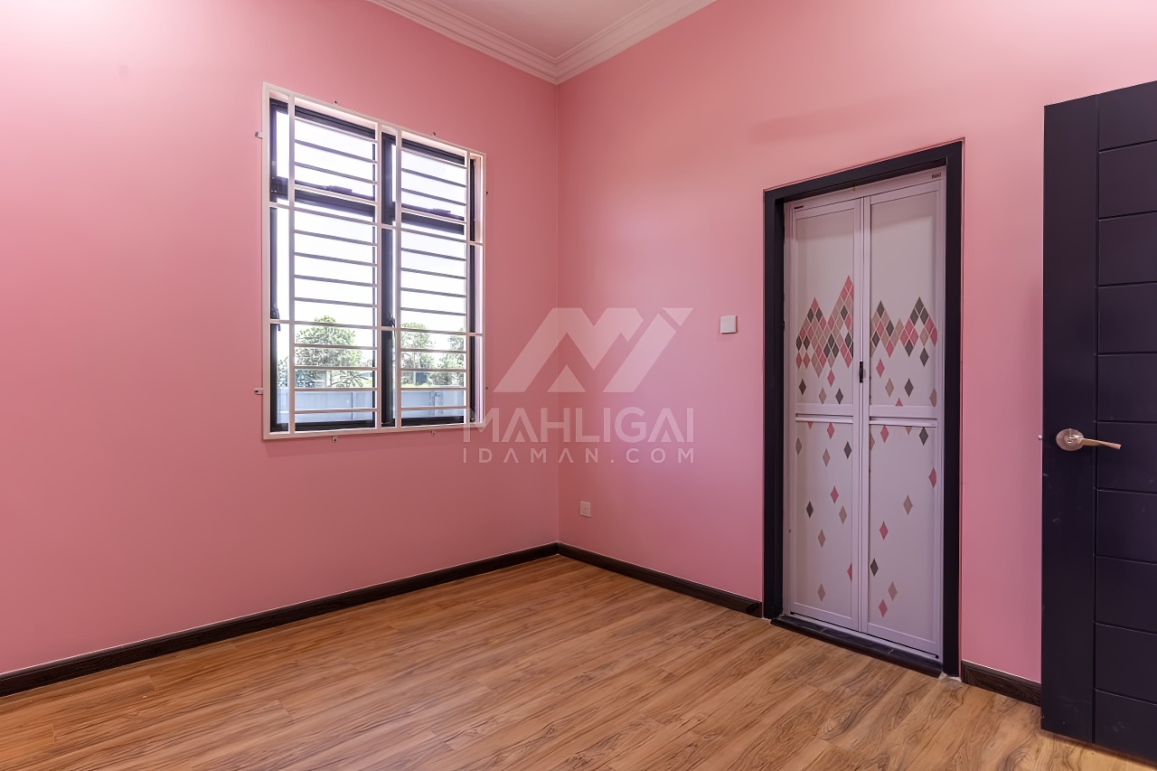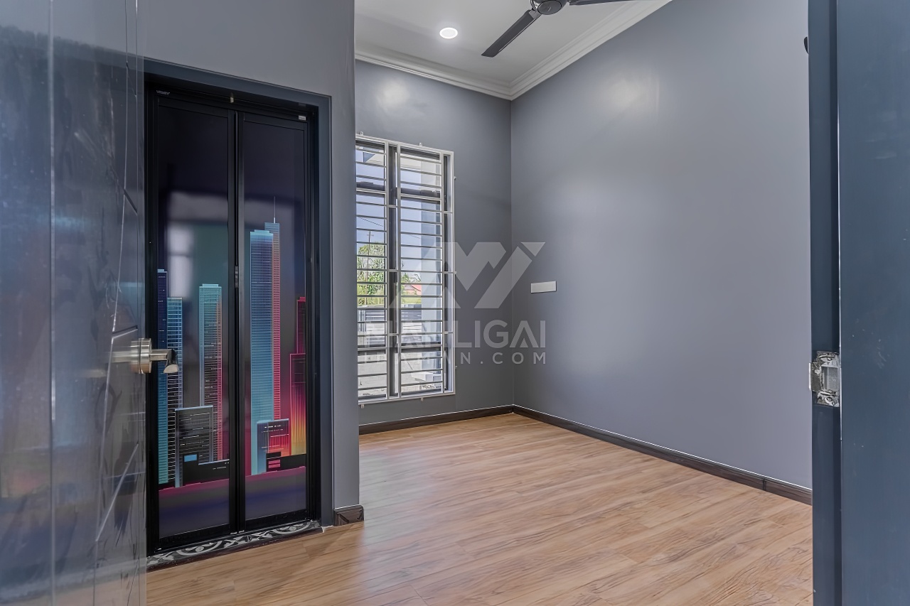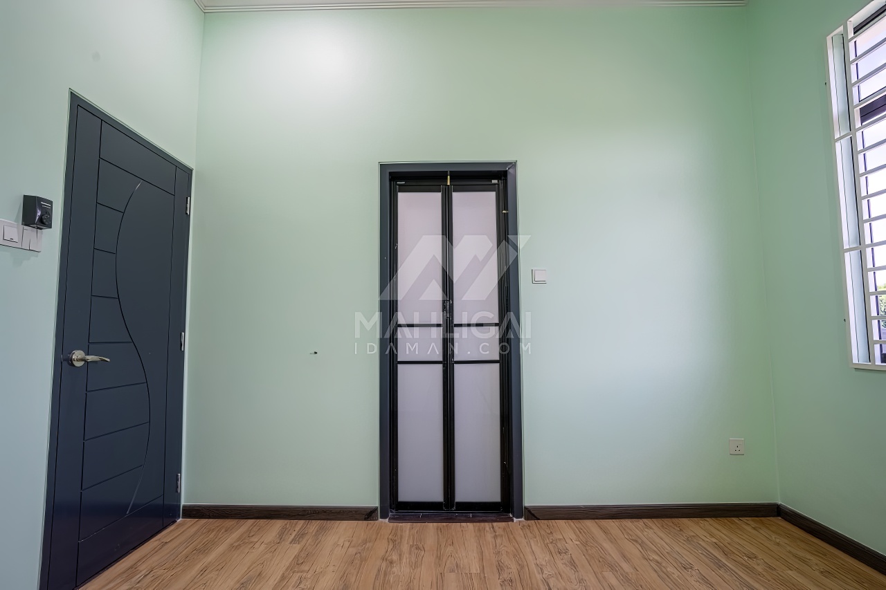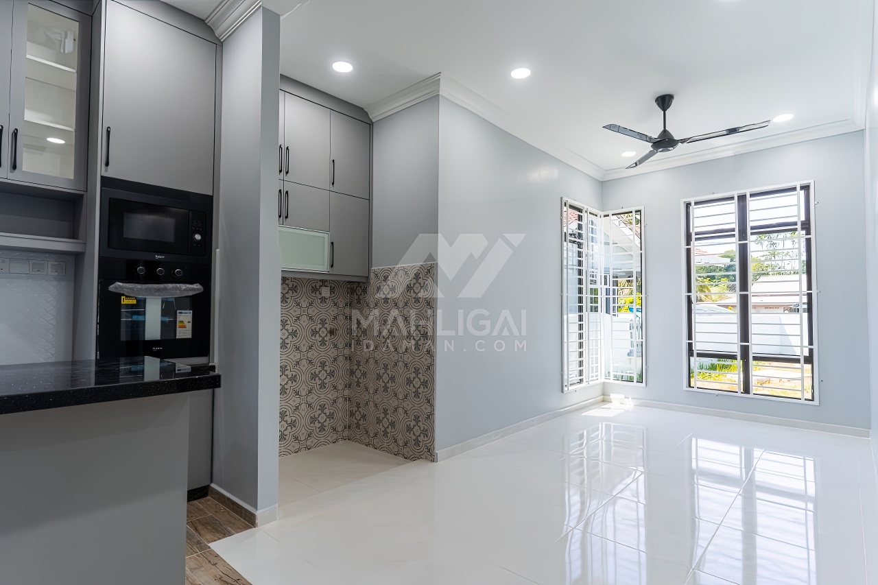 Banglo ini dibina dengan spesifikasi asas pakej gold dengan penambahan aksesori iaitu pemasangan cornice pada keseluruhan tingkap dan dinding luar rumah, groove line pada dinding di bahagian luar rumah