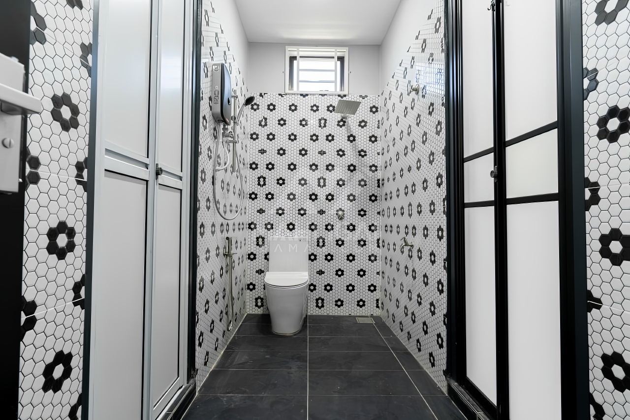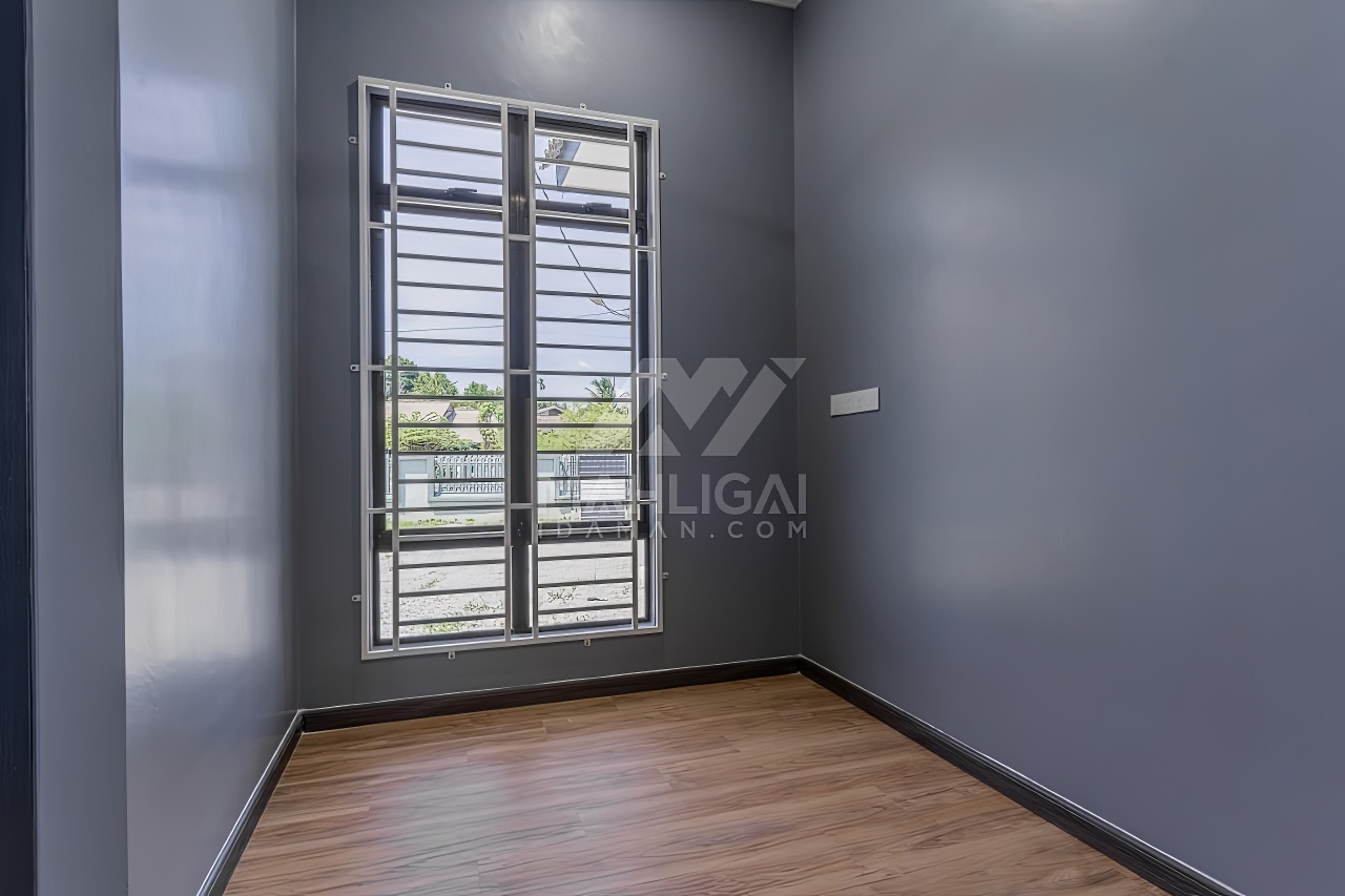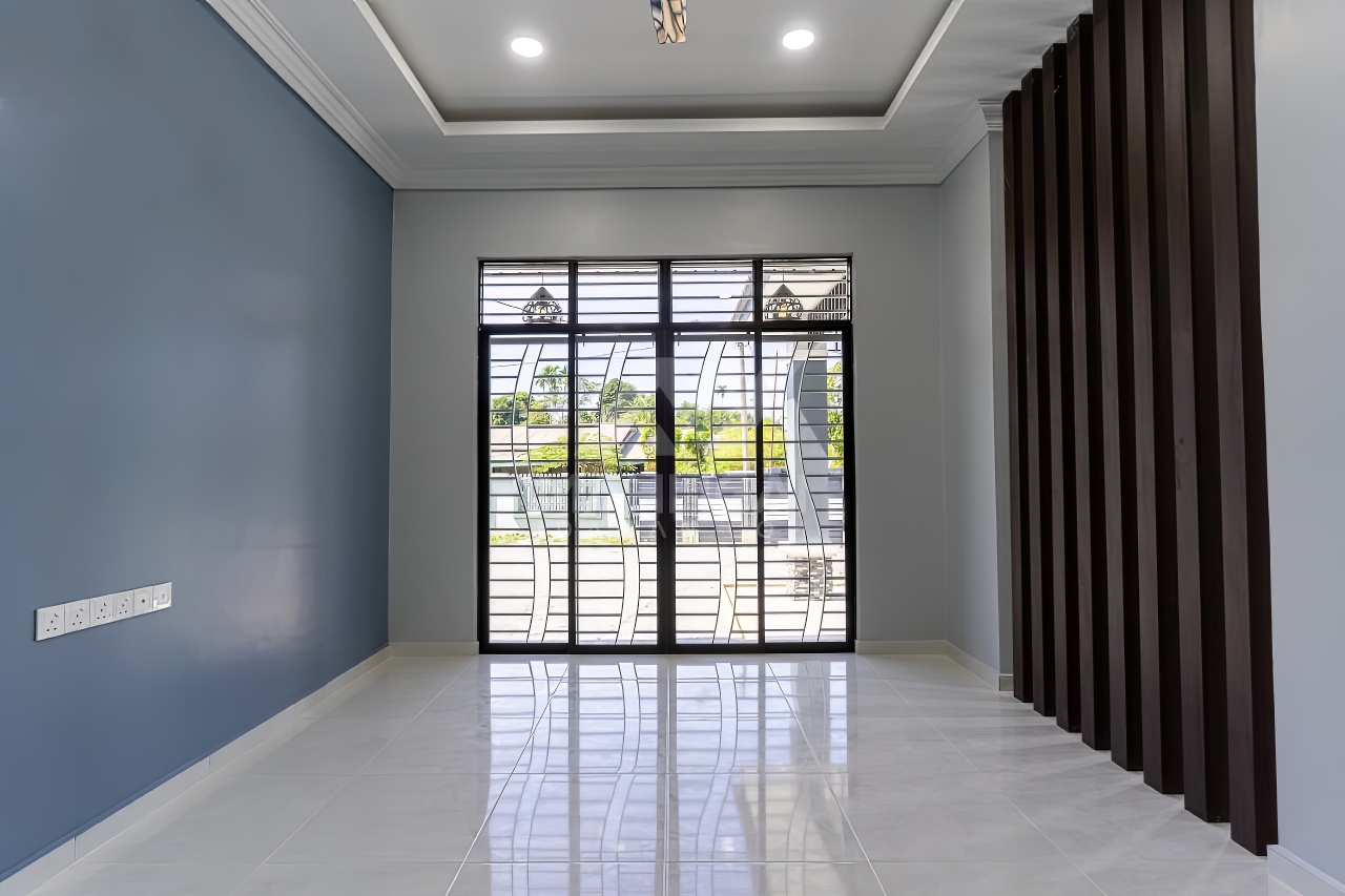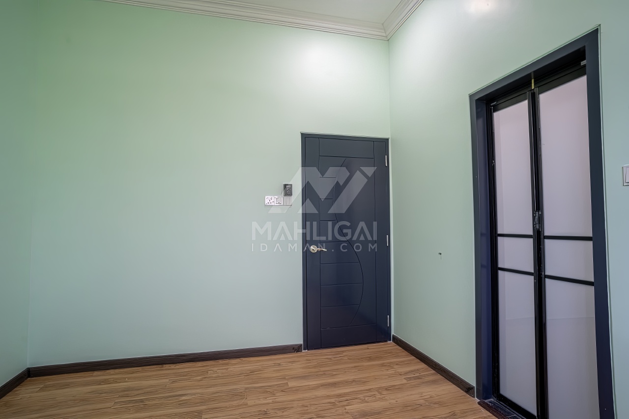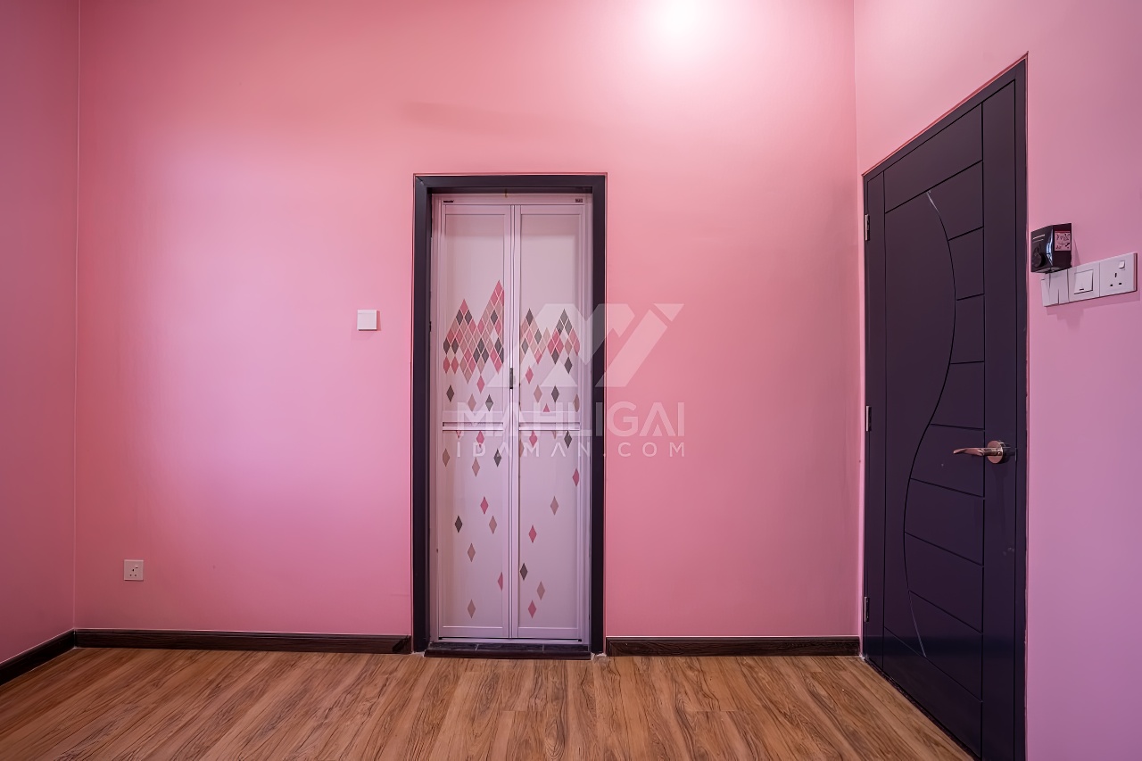 Banglo ini dibina dengan spesifikasi asas pakej gold dengan penambahan aksesori iaitu pemasangan cornice pada keseluruhan tingkap dan dinding luar rumah, groove line pada dinding di bahagian luar rumah