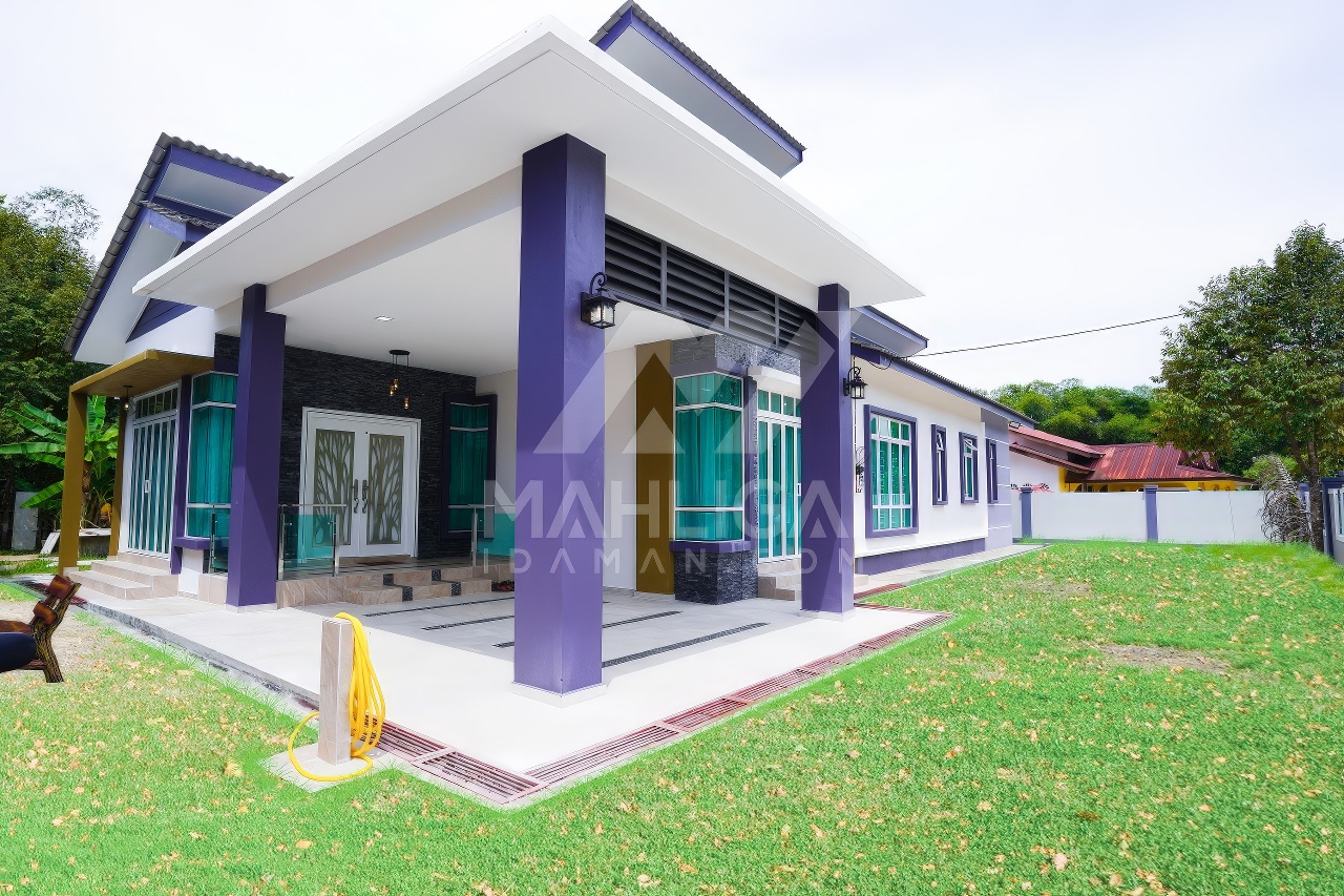 Banglo Idaman client kami lokasinya berdekatan UITM Machang, Kelantan. Banglo ini mempunyai lima bilik tidur dan enam bilik air. Banglo ini menggabungkan ciri-ciri berkonsepkan banglo moden seperti penggunaan tambahan ketinggian roof beam yang tinggi pada bahagian hadapan ruang tamu, hadapan ruang keluarga, ruang makan dan sebahagian ruang keluarga menampakan ruang yang lebih luas dan selesa bila berada di dalam rumah. Dari segi penggunaan gabungan tona warna unggu dan kuning ‘King Ransom’ nenambahkan lagi keunikan banglo moden ini.