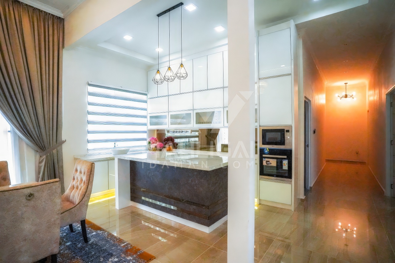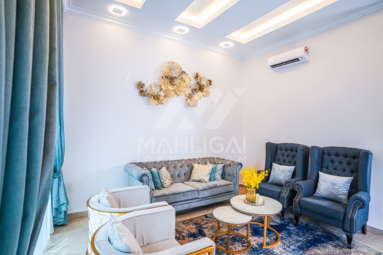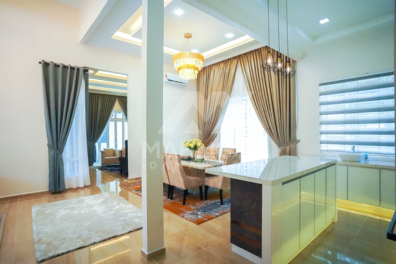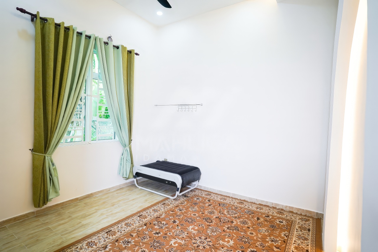 Banglo ini dibina dengan spesifikasi asas Pakej Gold dan beberapa penambahan dari sudut design seperti bilik solat dan dihiasi dengan corak bercirikan islamik, pemasangan cornice pada tingkap rumah, pemasangan hiasan aluminium (louvres) pada bahagian porch, torehan (groove line) pada dinding bahagian luar rumah, pemasangan batu hiasan pada dinding bahgian luar rumah, pemasangan tempered glass – aluminium handrailing pada bahagian entrance dan cermin berwarna hijau ‘see-through’.