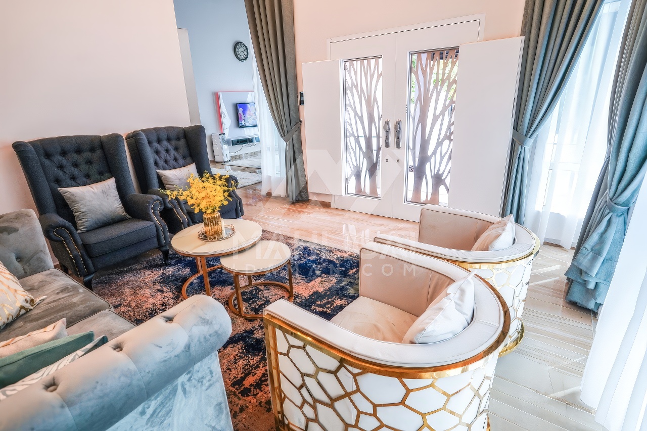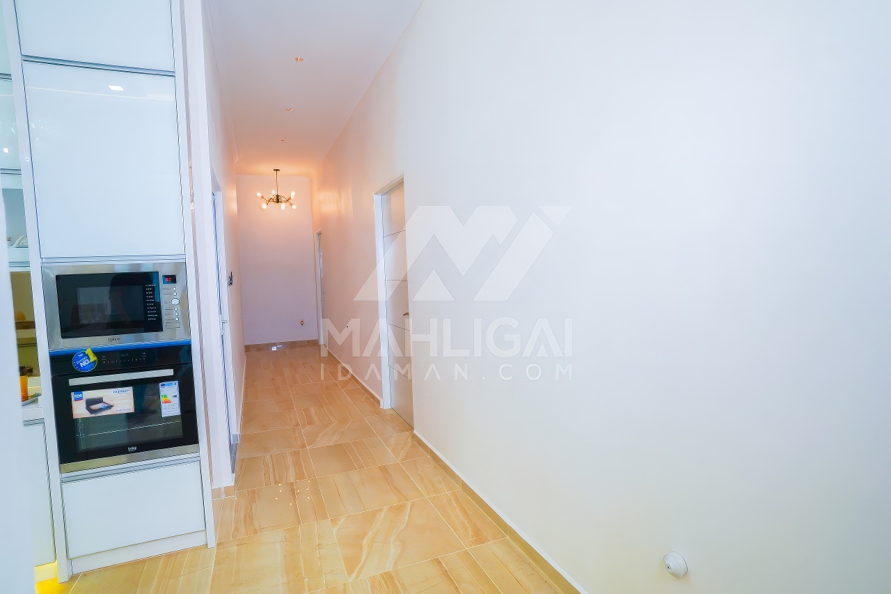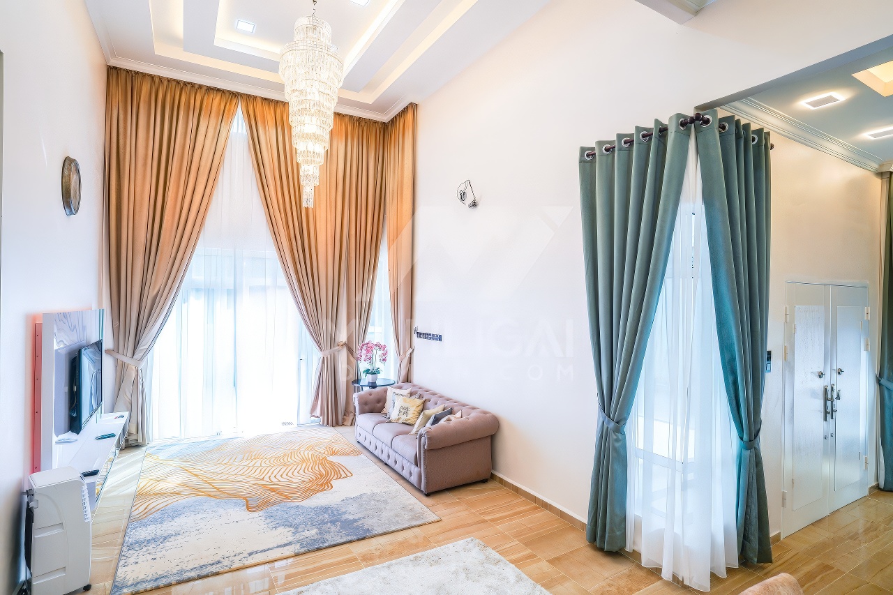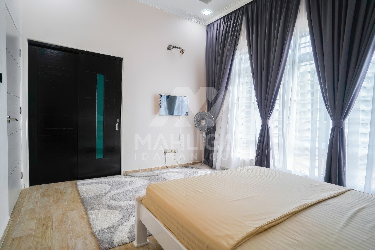 Banglo ini dibina dengan spesifikasi asas Pakej Gold dan beberapa penambahan dari sudut design seperti bilik solat dan dihiasi dengan corak bercirikan islamik, pemasangan cornice pada tingkap rumah, pemasangan hiasan aluminium (louvres) pada bahagian porch, torehan (groove line) pada dinding bahagian luar rumah, pemasangan batu hiasan pada dinding bahgian luar rumah, pemasangan tempered glass – aluminium handrailing pada bahagian entrance dan cermin berwarna hijau ‘see-through’.
