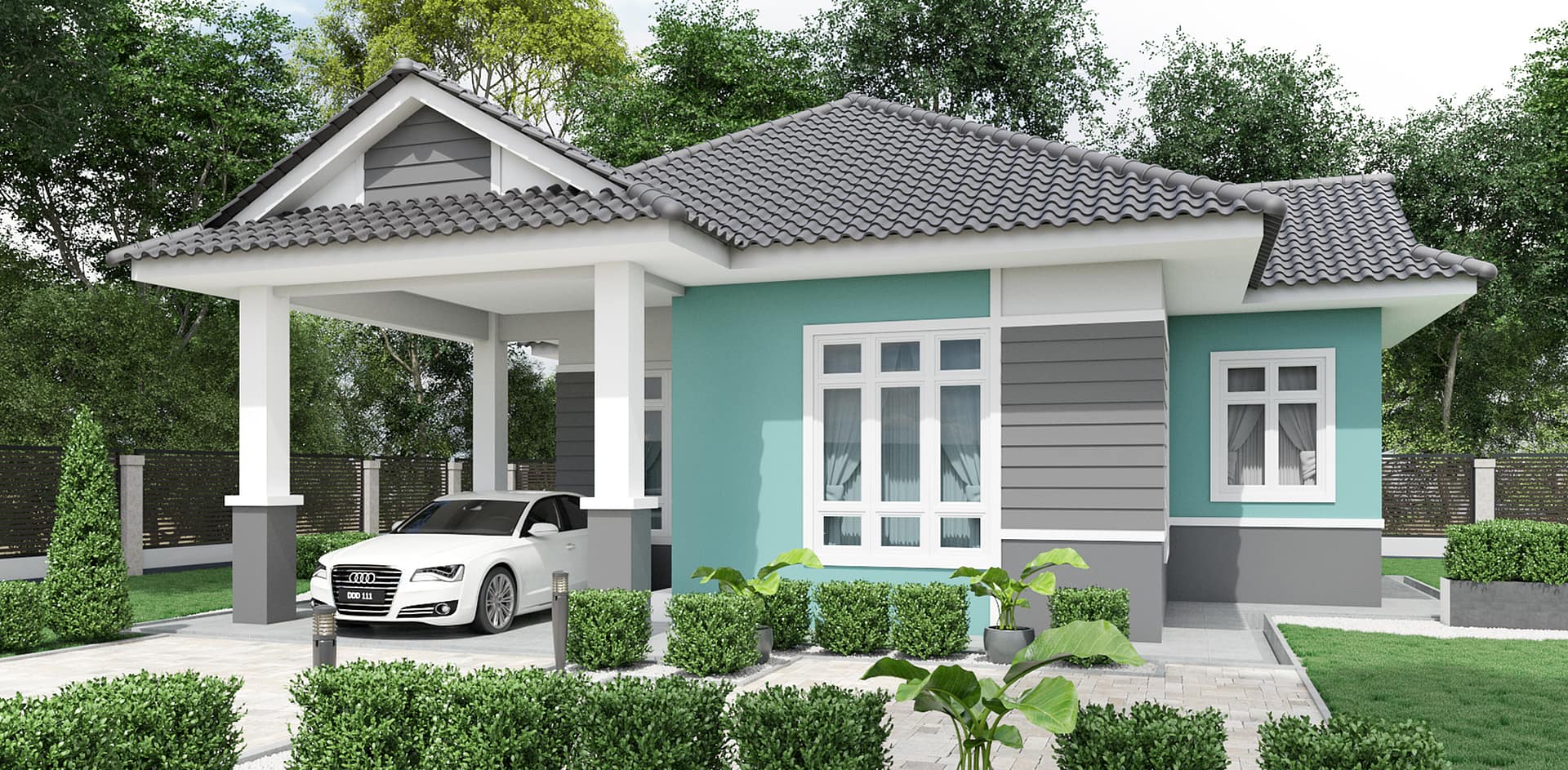 Banglo ini dibina dengan spesifikasi asas Pakej Silver dengan penambahan aksesori iaitu pemasangan cornice pada keseluruhan tingkap dan dinding luar rumah, groove line pada dinding di bahagian luar rumah.