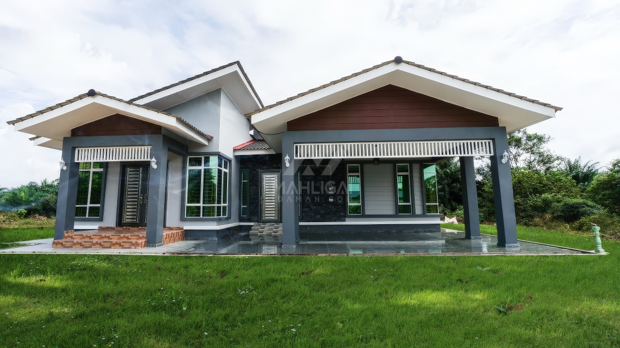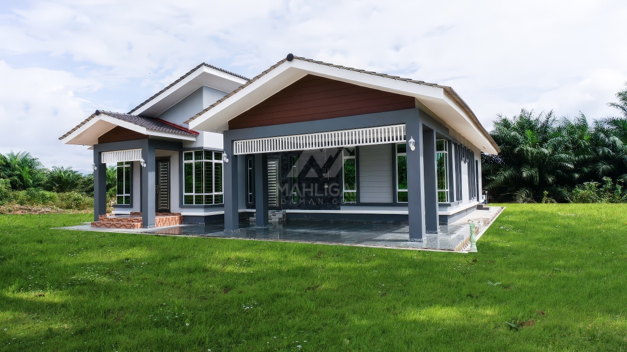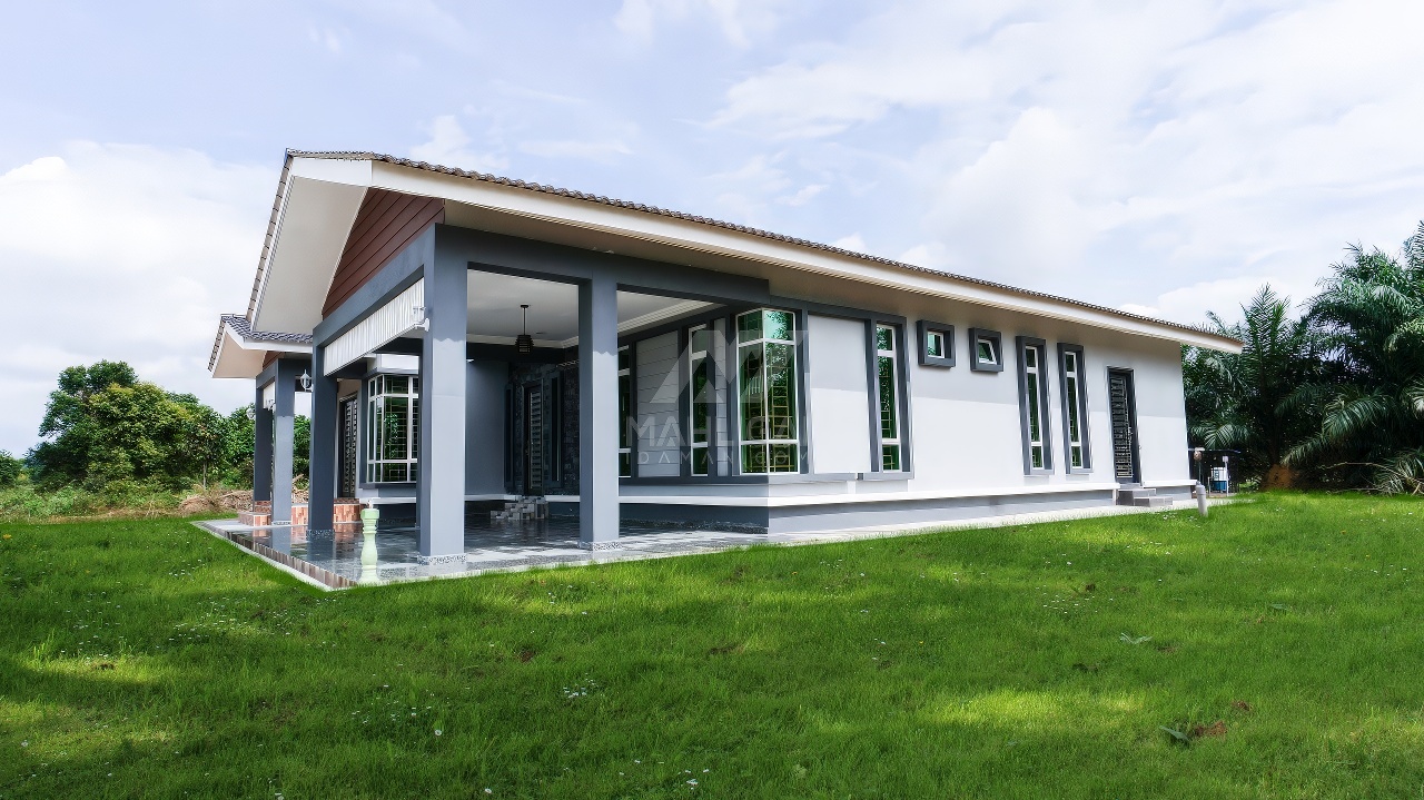 Banglo satu tingkat yang dibina di daerah Kuala Krai, Kelantan ini mempunyai lima (5) bilik tidur dan empat (4) bilik air. Banglo ini menggabungkan ciri-ciri banglo konvensional seperti rekabentuk rumah disamping menerapkan beberapa ciri moden seperti penggunaan tingkap labuh dan tona warna putih yang digabungkan dengan warna Kelabu Gelap dan Kelabu Cerah menaikkan kontra warna tersebut.