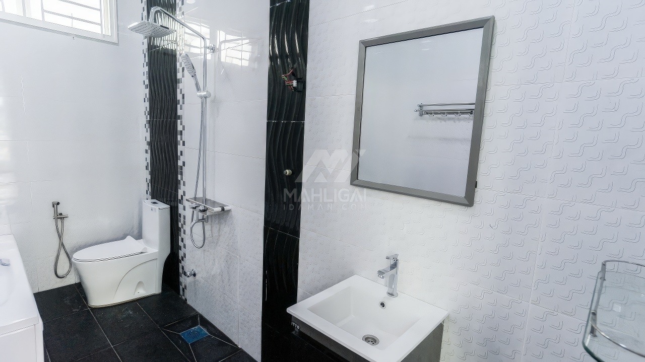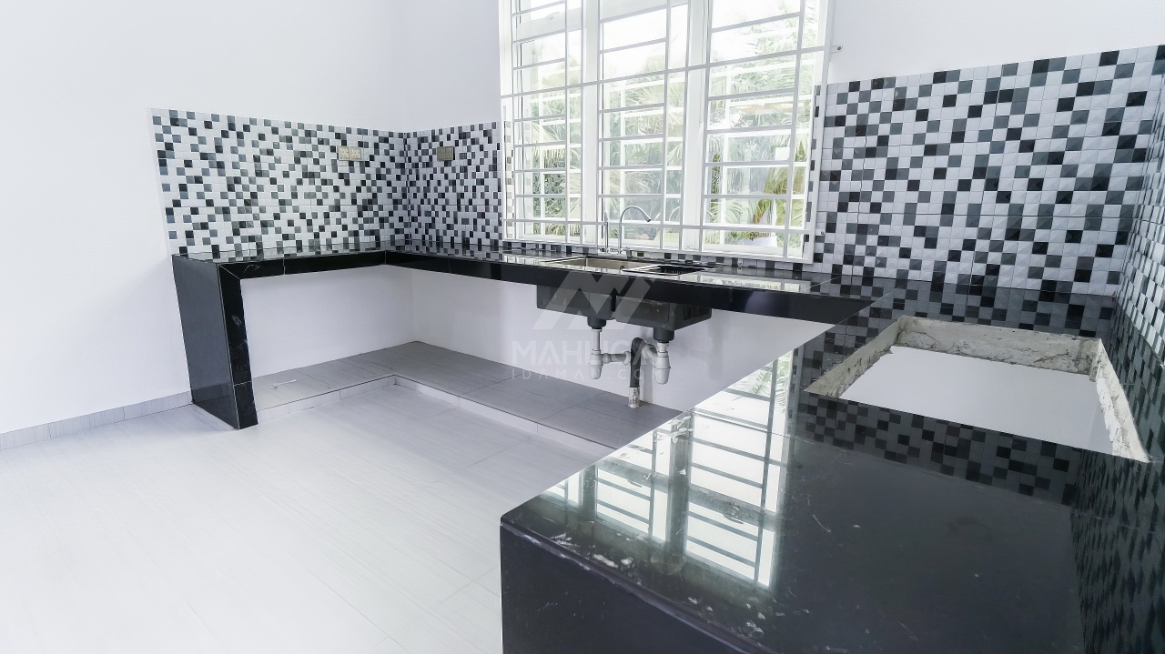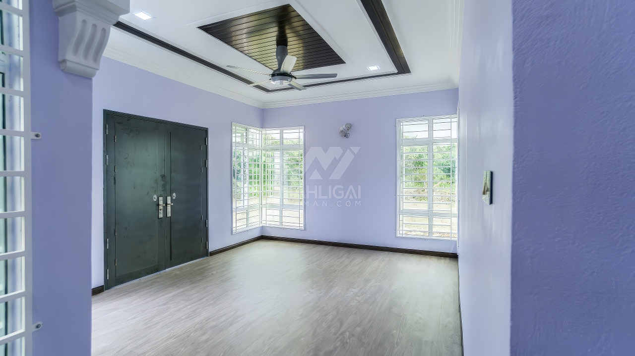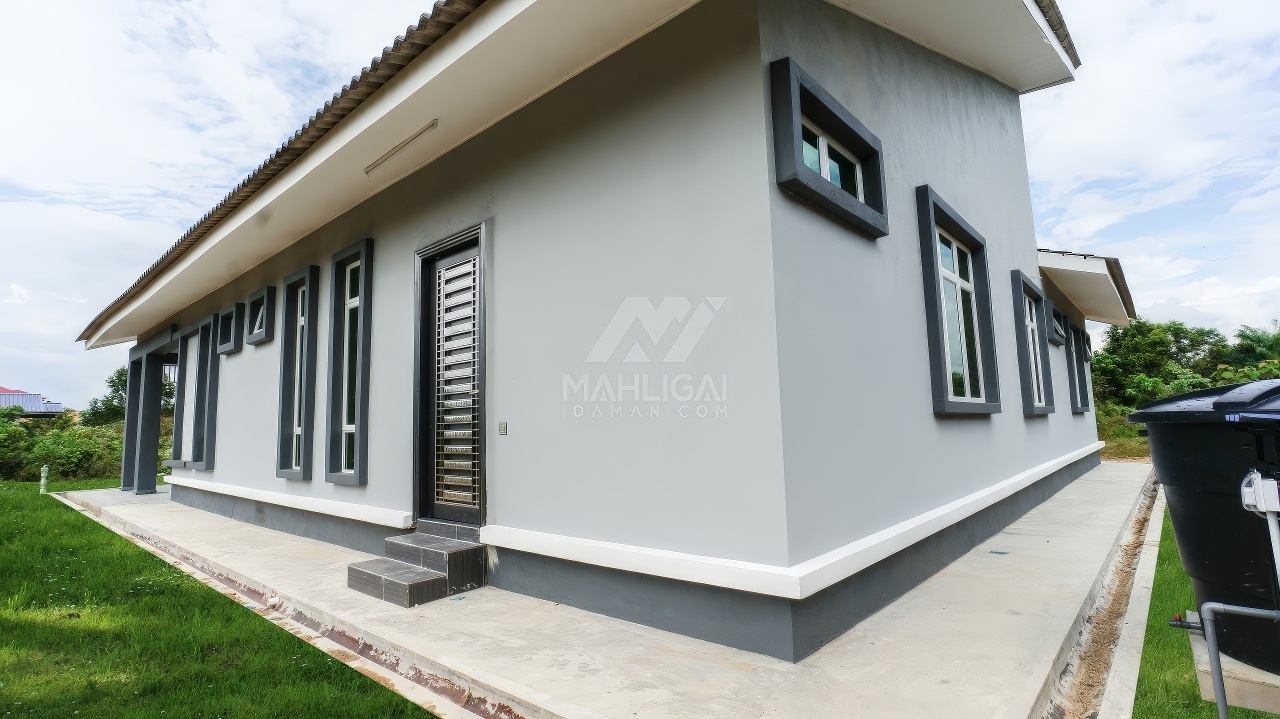 Banglo satu tingkat yang dibina di daerah Kuala Krai, Kelantan ini mempunyai lima (5) bilik tidur dan empat (4) bilik air. Banglo ini menggabungkan ciri-ciri banglo konvensional seperti rekabentuk rumah disamping menerapkan beberapa ciri moden seperti penggunaan tingkap labuh dan tona warna putih yang digabungkan dengan warna Kelabu Gelap dan Kelabu Cerah menaikkan kontra warna tersebut.