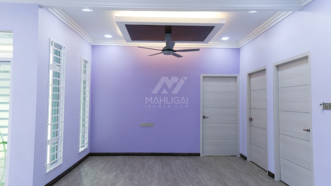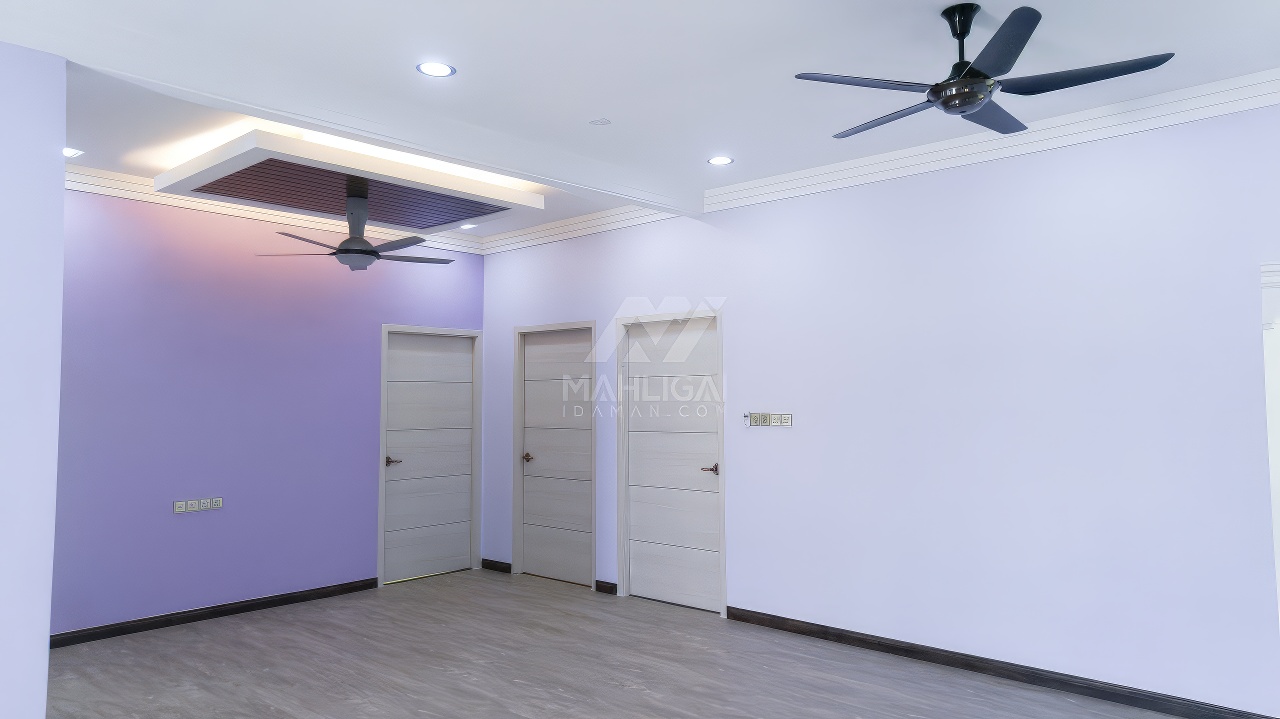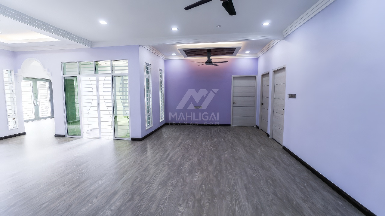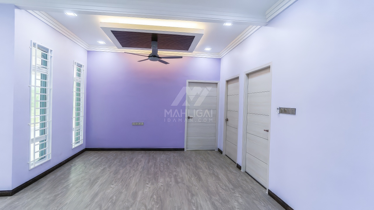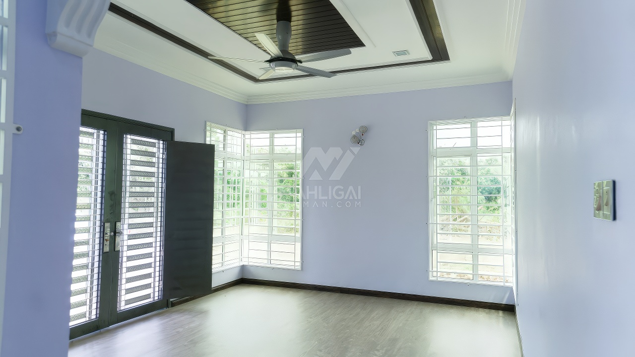 Banglo ini dibina dengan spesifikasi asas Pakej Gold dan beberapa penambahan dari sudut design seperti pemasangan shera board pada bahagian dinding dan bumbung rumah, torehan groove line pada bahagian bumbung tepi, pemasangan kayu hiasan aluminium (louvres) pada bahagian porch dan pintu masuk.