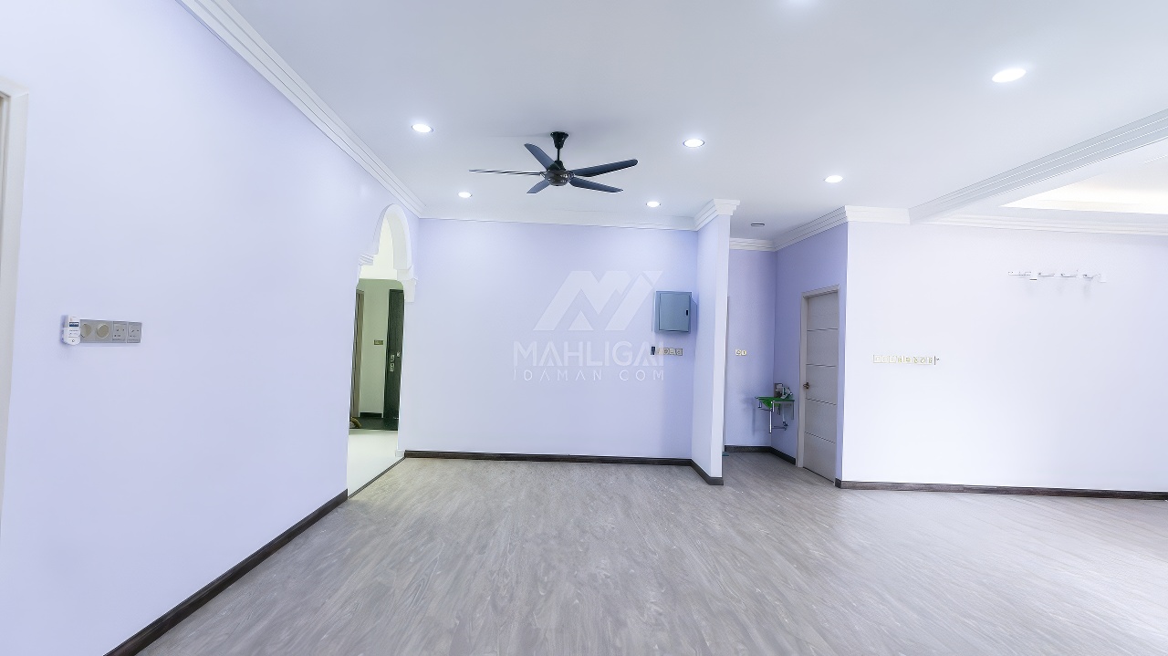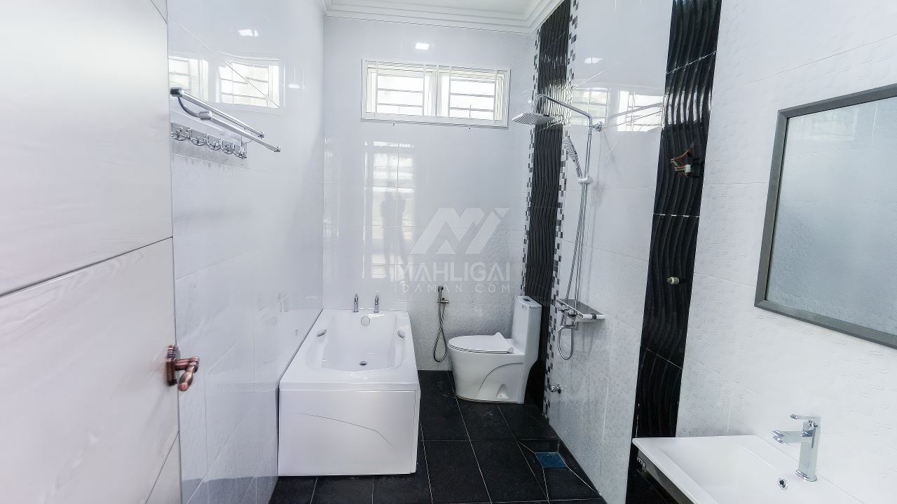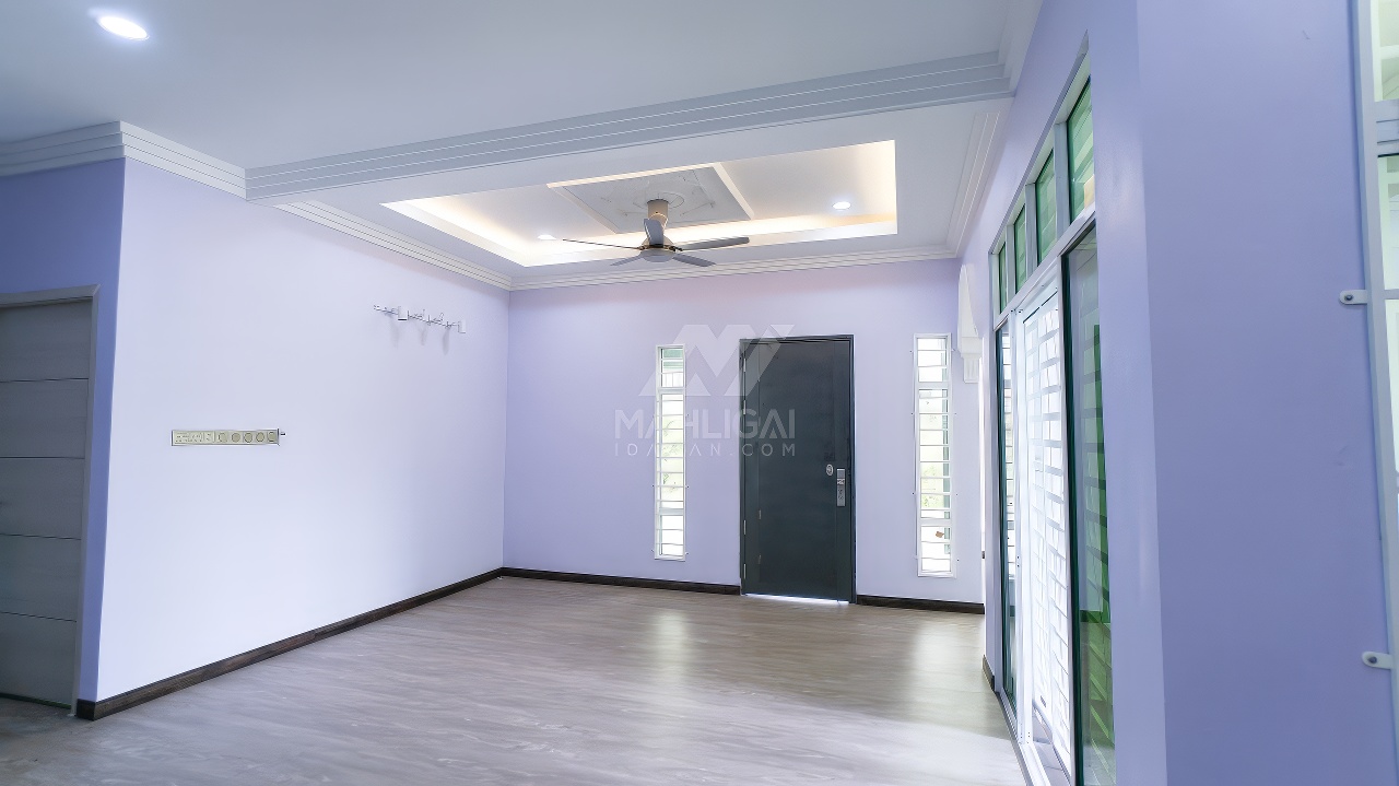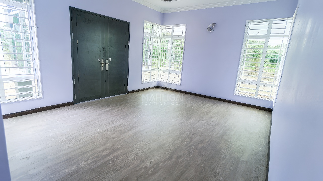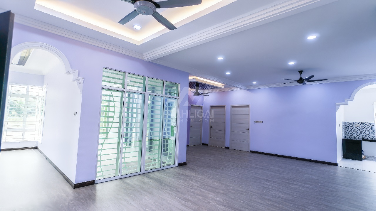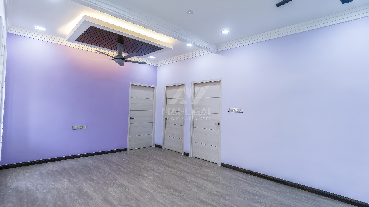 Banglo ini dibina dengan spesifikasi asas Pakej Gold dan beberapa penambahan dari sudut design seperti pemasangan shera board pada bahagian dinding dan bumbung rumah, torehan groove line pada bahagian bumbung tepi, pemasangan kayu hiasan aluminium (louvres) pada bahagian porch dan pintu masuk.