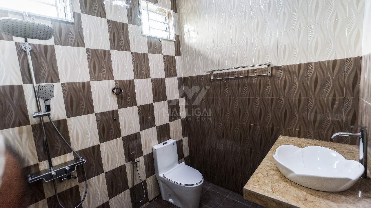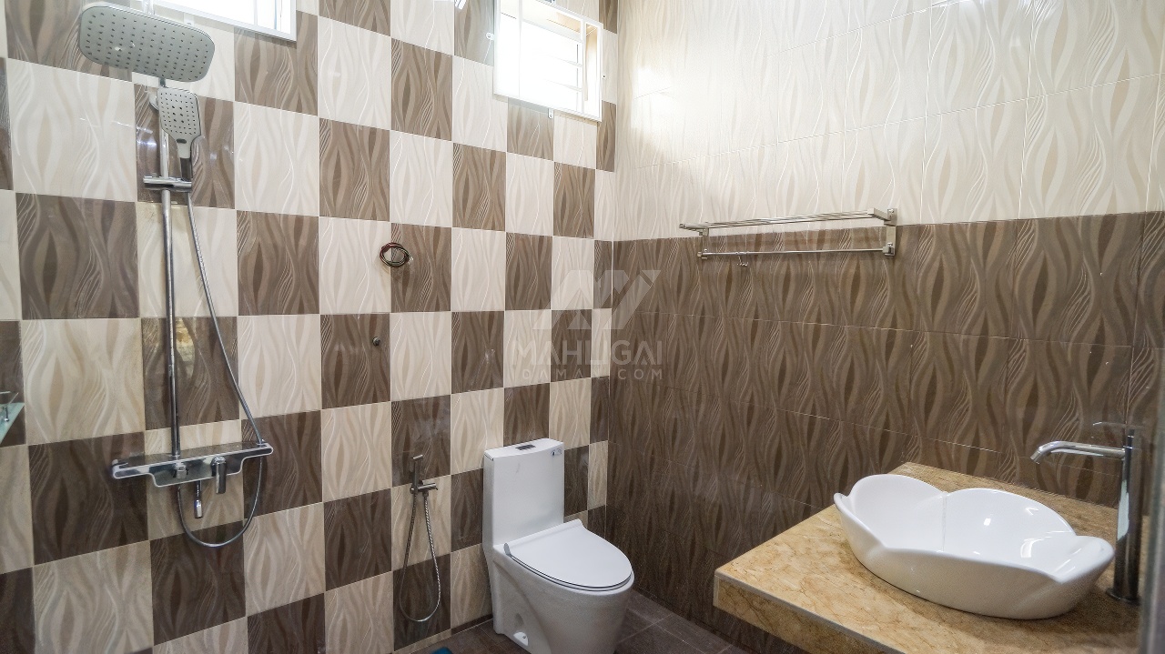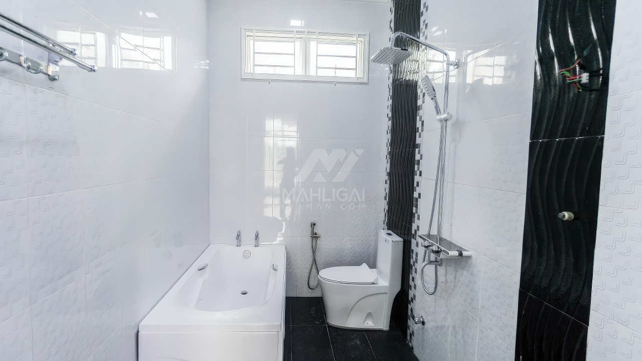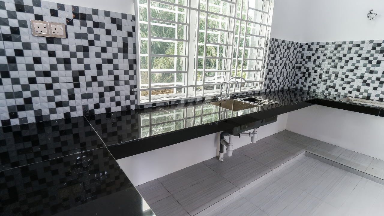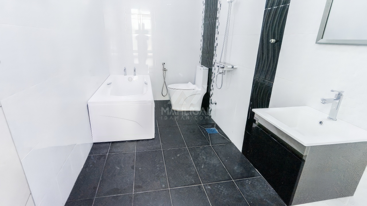 Banglo ini dibina dengan spesifikasi asas Pakej Gold dan beberapa penambahan dari sudut design seperti pemasangan shera board pada bahagian dinding dan bumbung rumah, torehan groove line pada bahagian bumbung tepi, pemasangan kayu hiasan aluminium (louvres) pada bahagian porch dan pintu masuk.