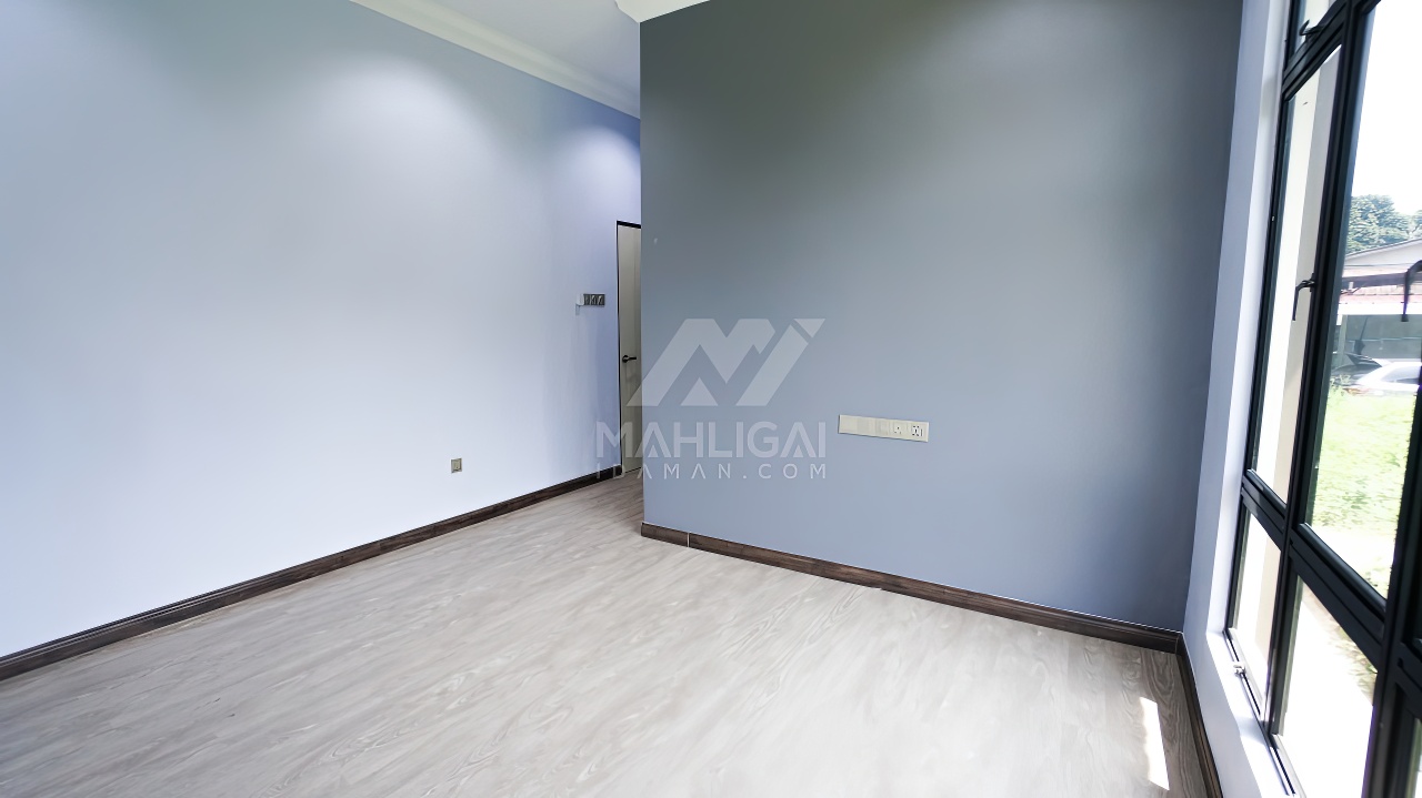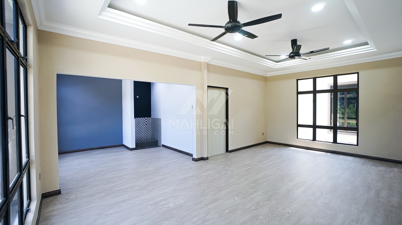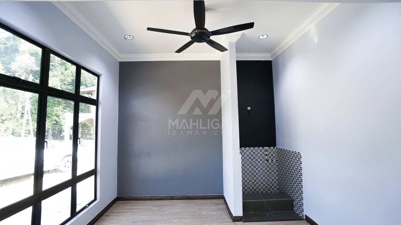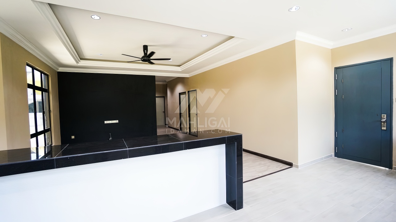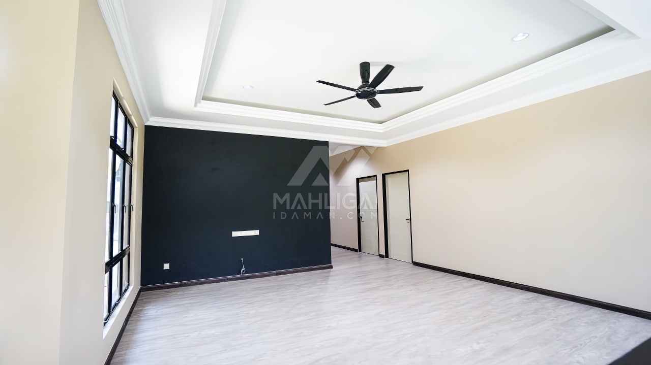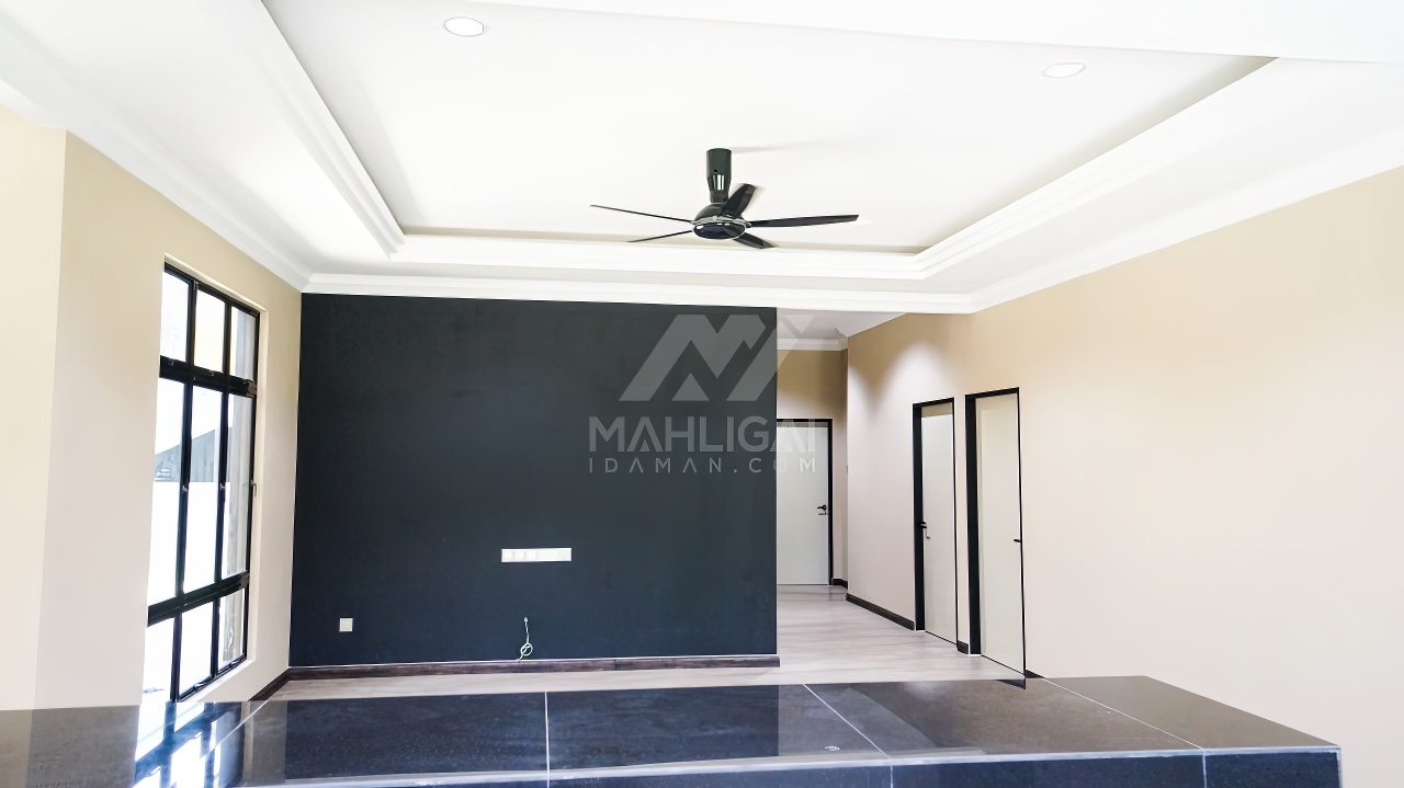 Banglo ini dibina dengan spesifikasi asas Pakej Silver dan beberapa penambahan dari sudut design seperti groove line bahagian tangga hadapan mengggunakan kemasan jenis batu ‘Pebble Wash’, tambahan hiasan skirting pada body rumah dan kelainan idea yang dicetuskan oleh pemilik rumah ini adalah menyediakan sebuah bilik cinema sebagai ruangan santai bersama keluarga.