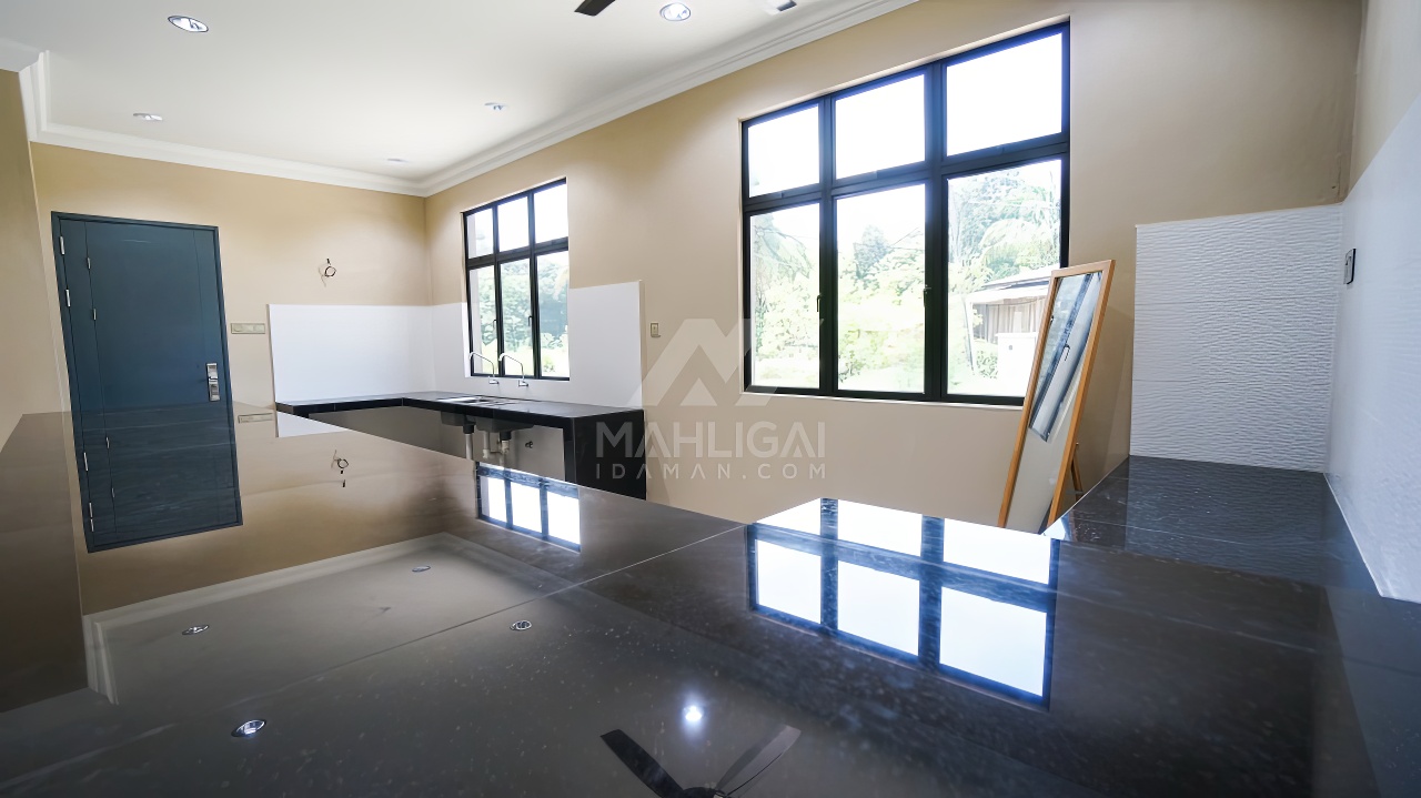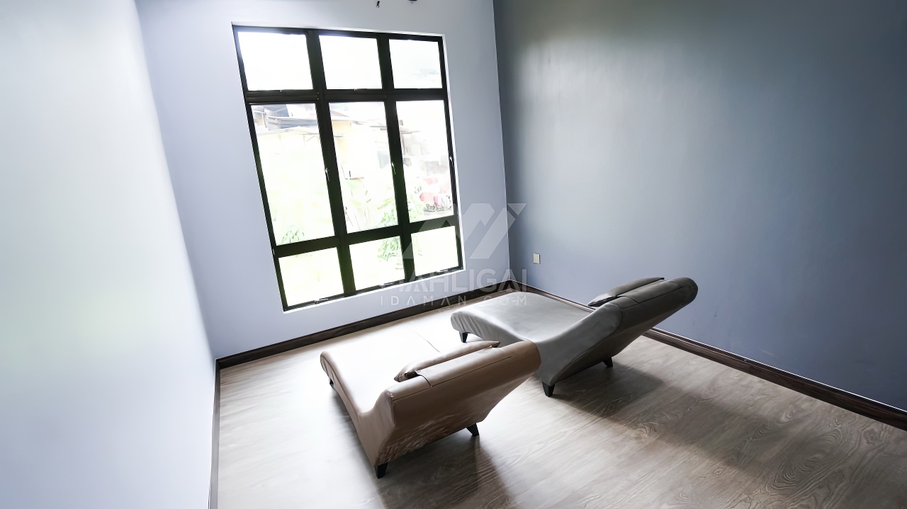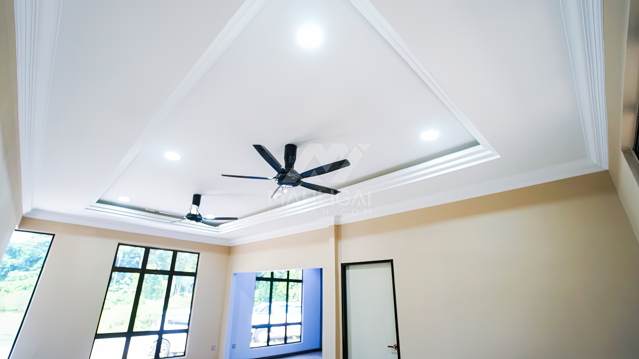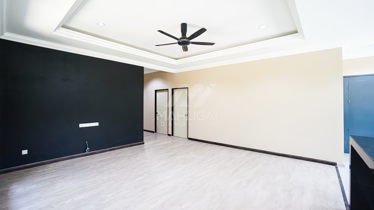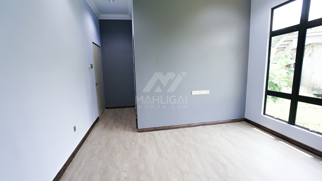 Banglo ini dibina dengan spesifikasi asas Pakej Silver dan beberapa penambahan dari sudut design seperti groove line bahagian tangga hadapan mengggunakan kemasan jenis batu ‘Pebble Wash’, tambahan hiasan skirting pada body rumah dan kelainan idea yang dicetuskan oleh pemilik rumah ini adalah menyediakan sebuah bilik cinema sebagai ruangan santai bersama keluarga.