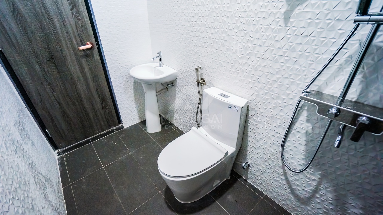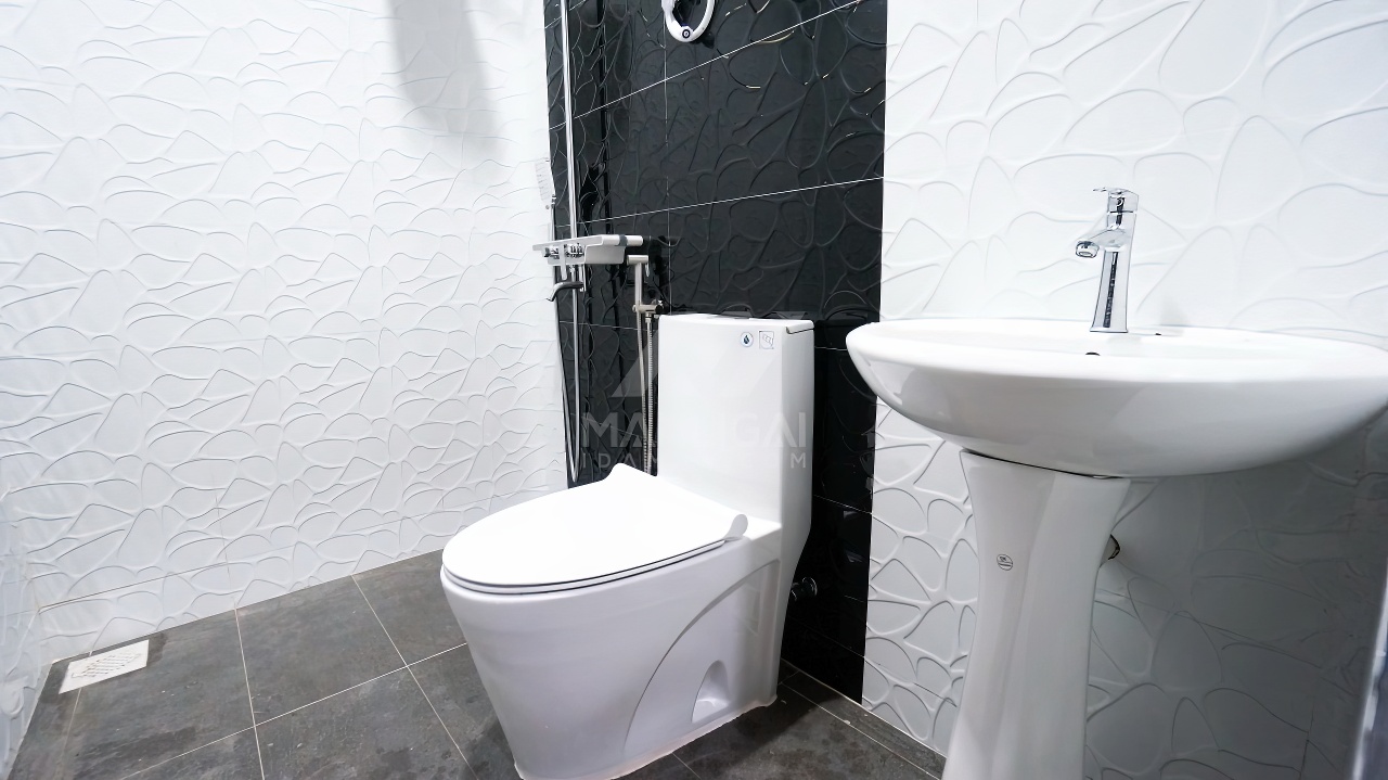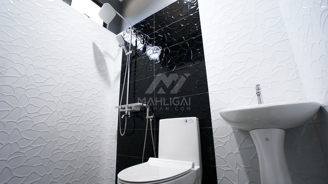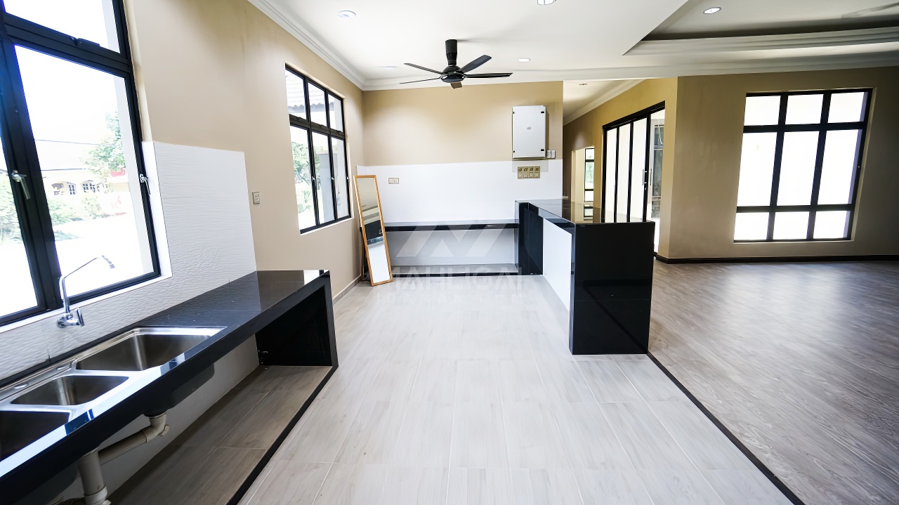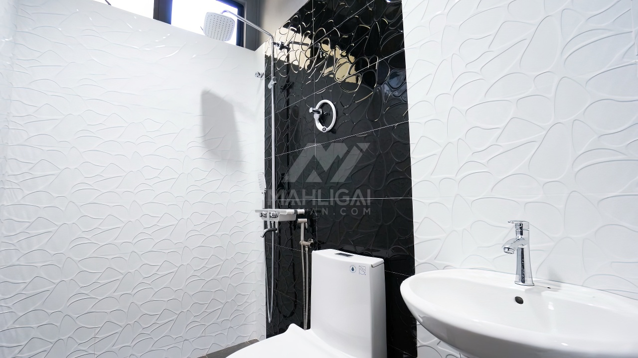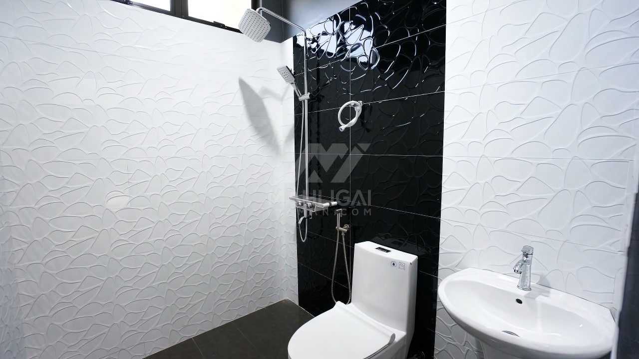 Banglo ini dibina dengan spesifikasi asas Pakej Silver dan beberapa penambahan dari sudut design seperti groove line bahagian tangga hadapan mengggunakan kemasan jenis batu ‘Pebble Wash’, tambahan hiasan skirting pada body rumah dan kelainan idea yang dicetuskan oleh pemilik rumah ini adalah menyediakan sebuah bilik cinema sebagai ruangan santai bersama keluarga.