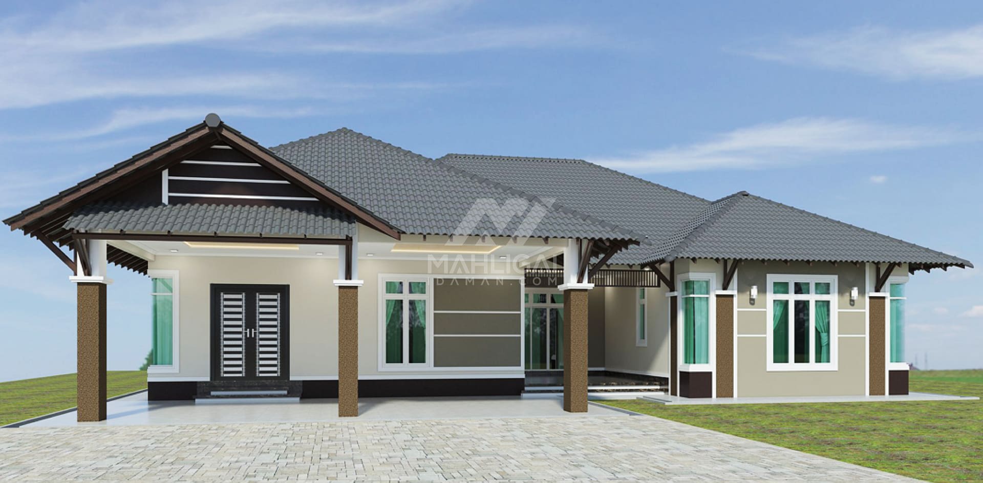 Banglo ini dibina dengan spesifikasi asas Pakej Gold dan beberapa penambahan dari sudut design seperti pemasangan kayu hiasan (tetupang) pada bahagian bumbung rumah, pemasangan bumbung tambahan (awning) pada bahagian porch dan torehan (groove lines) pada bahagian bumbung dan dinding luar rumah dan pemasangan cornice pada bahagian tingkap & dinding luar rumah.