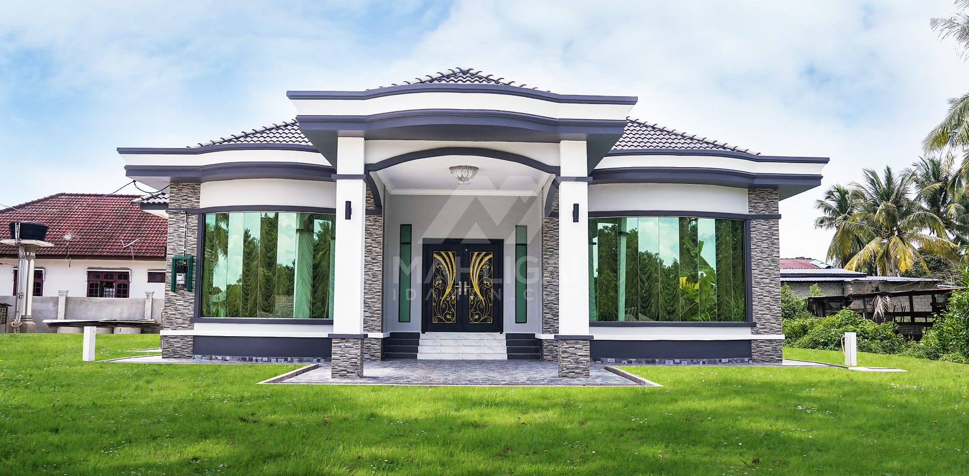 Banglo Idaman milik client kami yang terletak di Tumpat, Kelantan ini telah siap dibina sepenuhnya dengan keluasan 2328 kaki persegi dilengkapi empat bilik tidur dan empat bilik air. Banglo ini menggabungkan ciri-ciri berkonsepkan banglo moden seperti rekabentuk yang sangat unik disamping menerapkan beberapa ciri moden seperti penggunaan tingkap labuh bercermin gelap. Dari segi gabungan tona warna yang dipilih, banglo ini kelihatan mempunyai keunikan tersendiri dengan menggunakan warna putih dan kelabu.