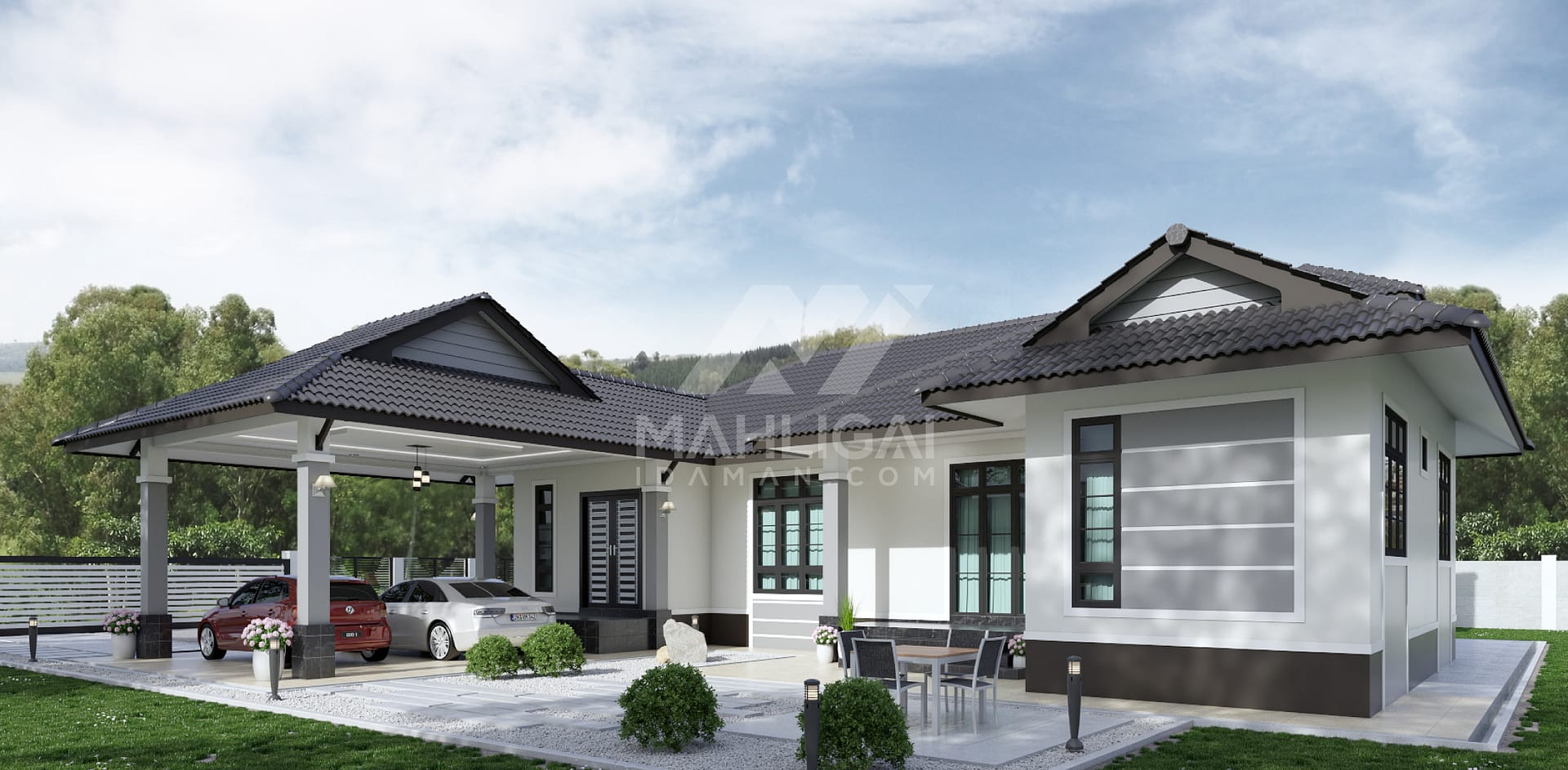 Banglo 1 tingkat milik klien kami yang telah siap dibina sepenuhnya di Pasir Tumboh, Kelantan ini mempunyai empat bilik tidur dan empat bilik air. Dengan keluasan 2338 kaki persegi, banglo ini menggabungkan ciri-ciri banglo moden iaitu dari segi rekabentuk yang menarik. Dari segi penggunaan tona warna pula, gabungan warna purple dan kelabu akan menaikkan lagi kontra warna tersebut.