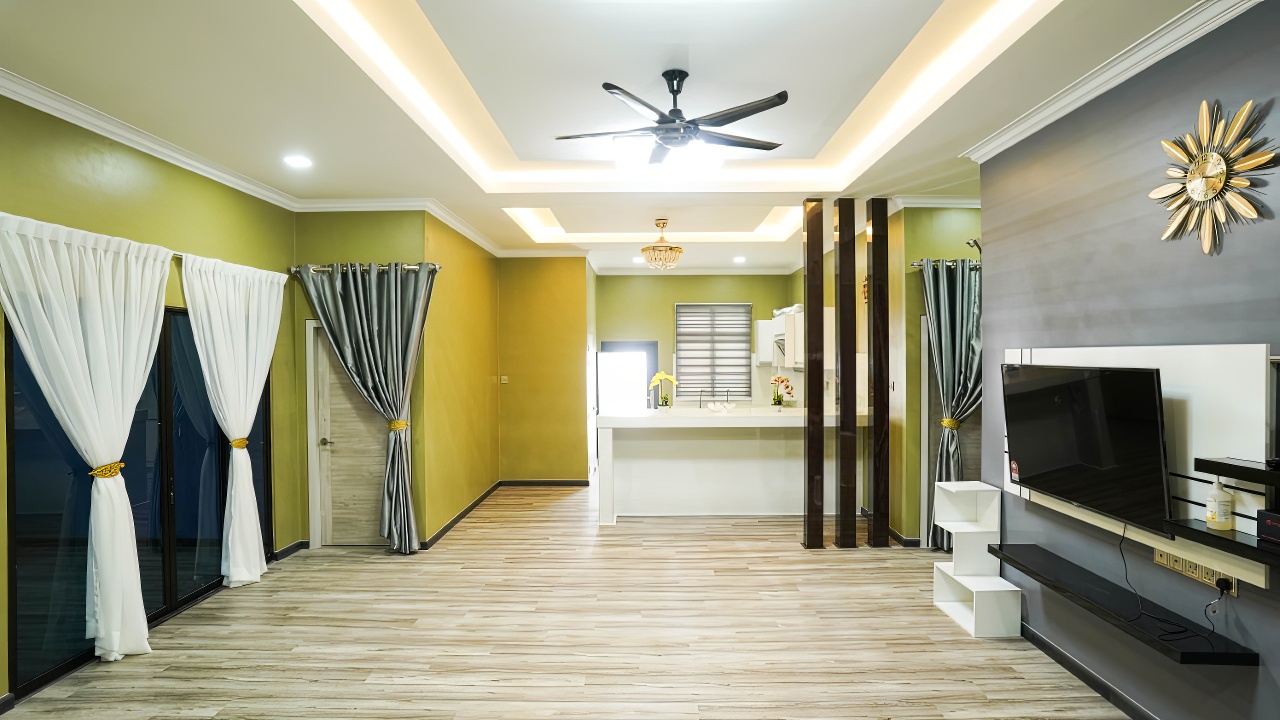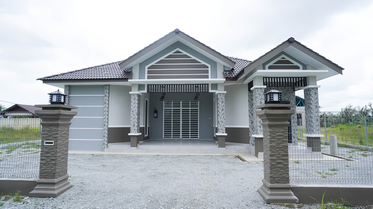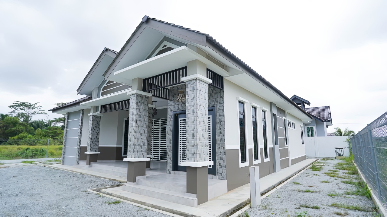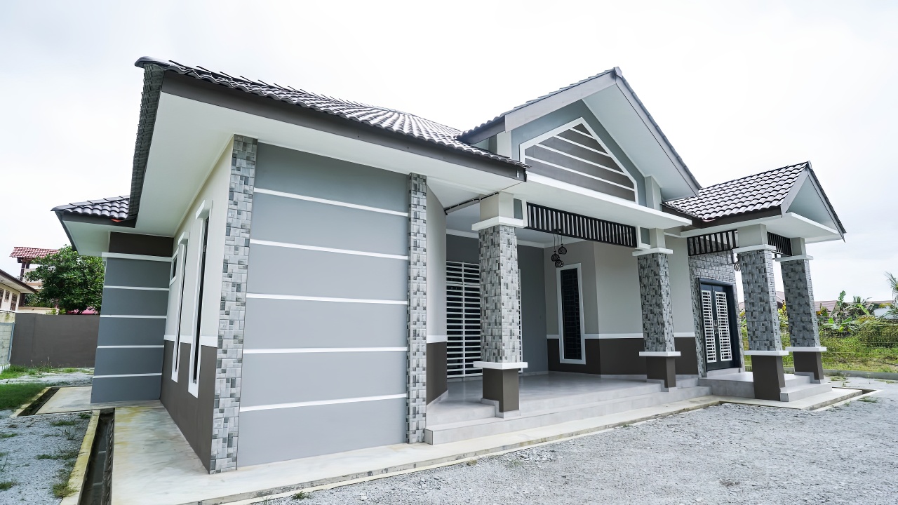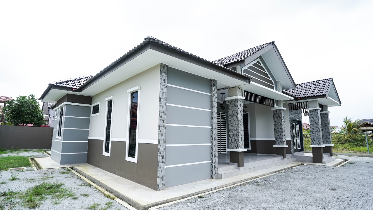 Kini banglo milik klien kami En Harith telah siap dibina sepenuhnya di Pasir Tumboh, Kelantan dilengkapi dengan empat (4) bilik tidur dan empat (4) bilik air. Banglo yang berkeluasan 2,134 kaki persegi, banglo ini menggabungkan ciri-ciri banglo moden iaitu dari segi rekabentuk dalaman dan luaran yang sangat menarik. Dari segi penggunaan tona warna pula, gabungan warna brown dan light grey akan menaikkan lagi kontra warna tersebut serta kelihatan lebih menarik.