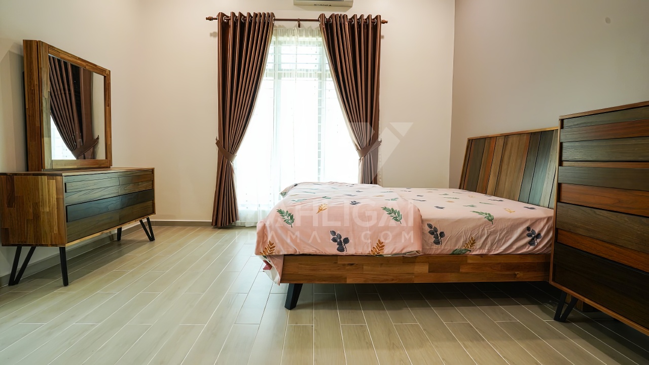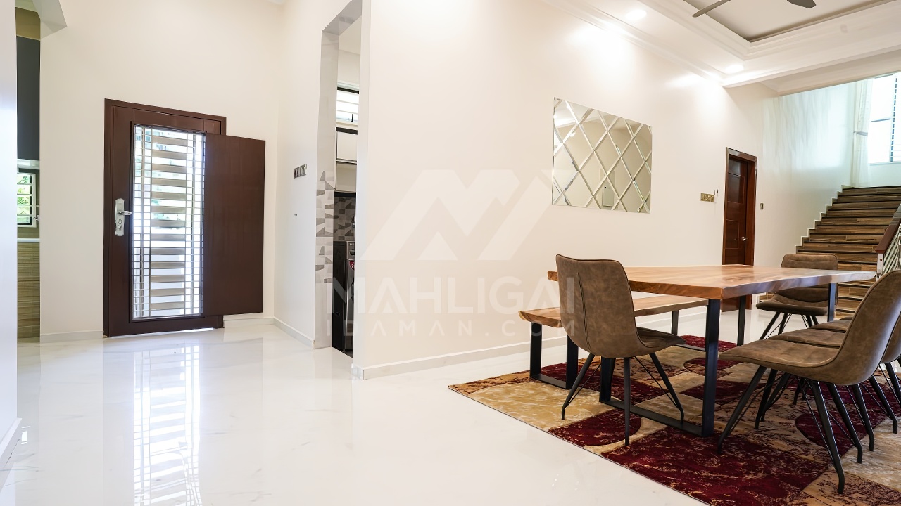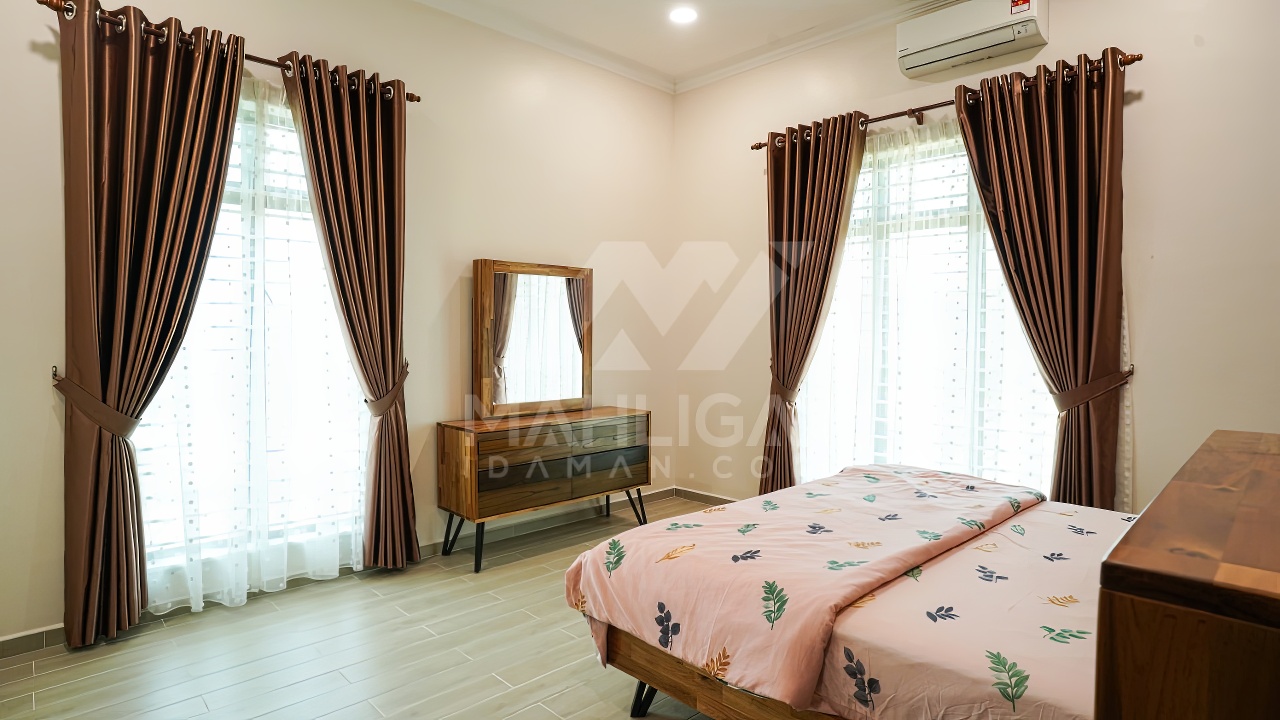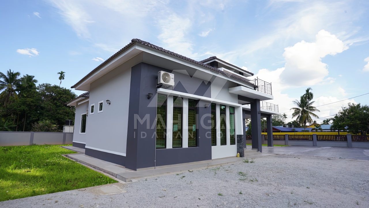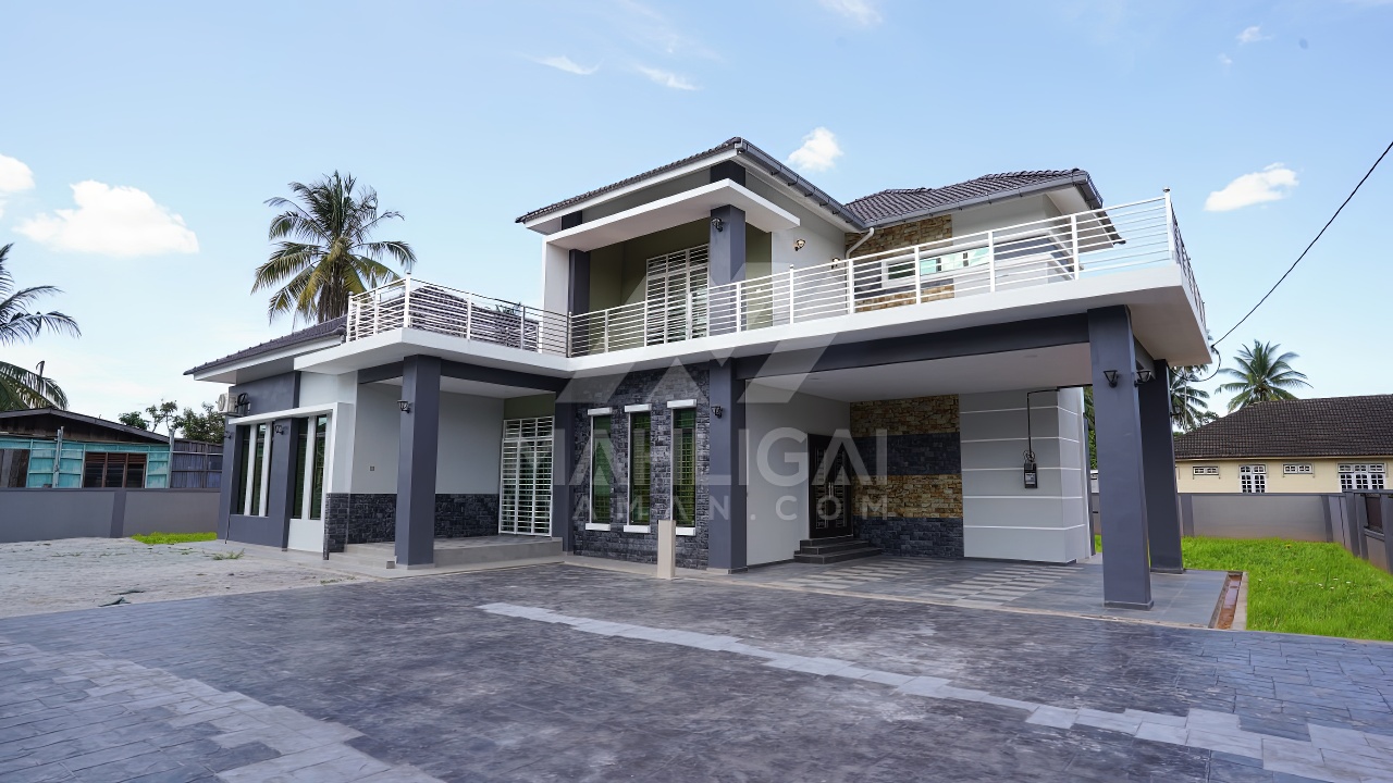 Banglo ini dibina dengan spesifikasi asas Pakej Silver dengan penambahan aksesori iaitu pemasangan cornice pada keseluruhan tingkap luar rumah, batu hiasan pada dinding dan tiang luar rumah menaikan lagi seri rumah.