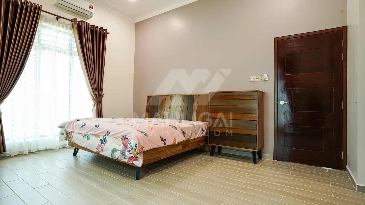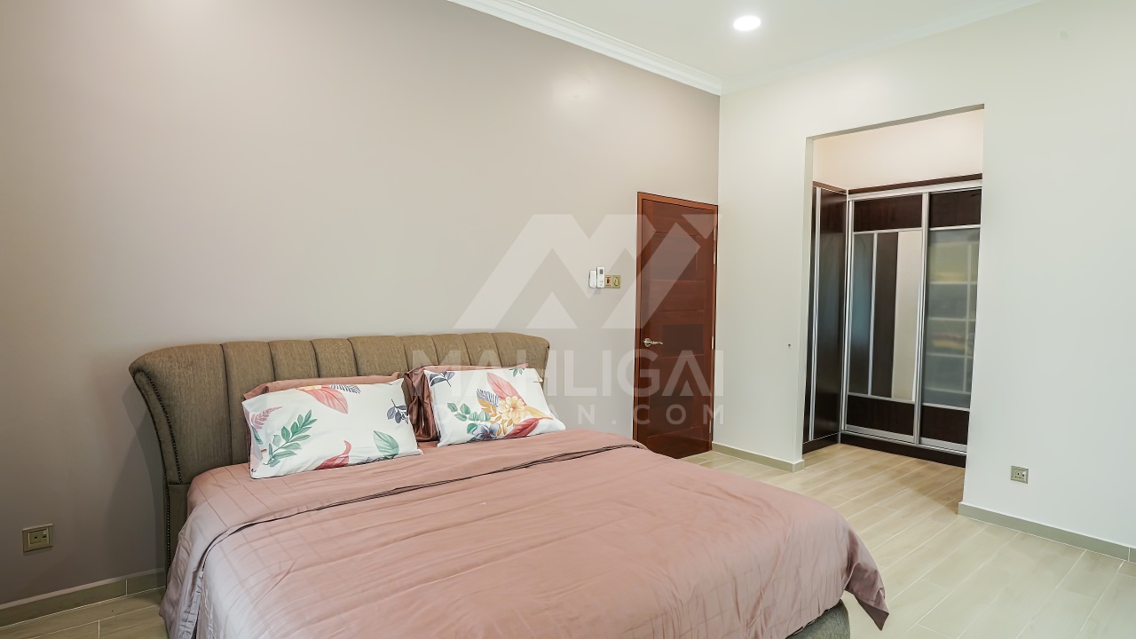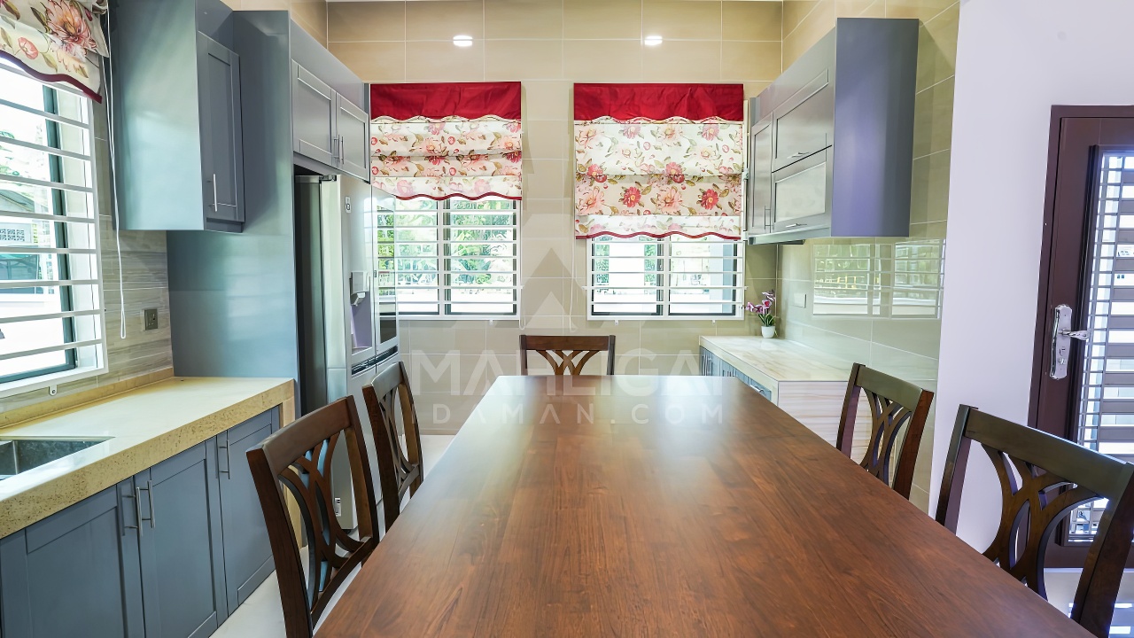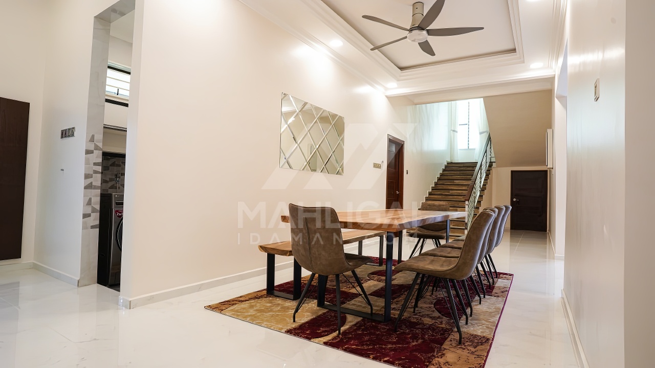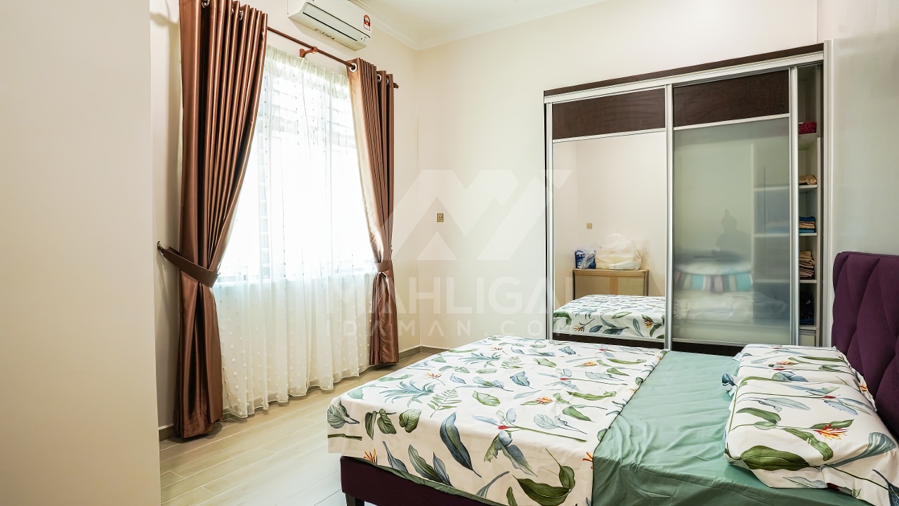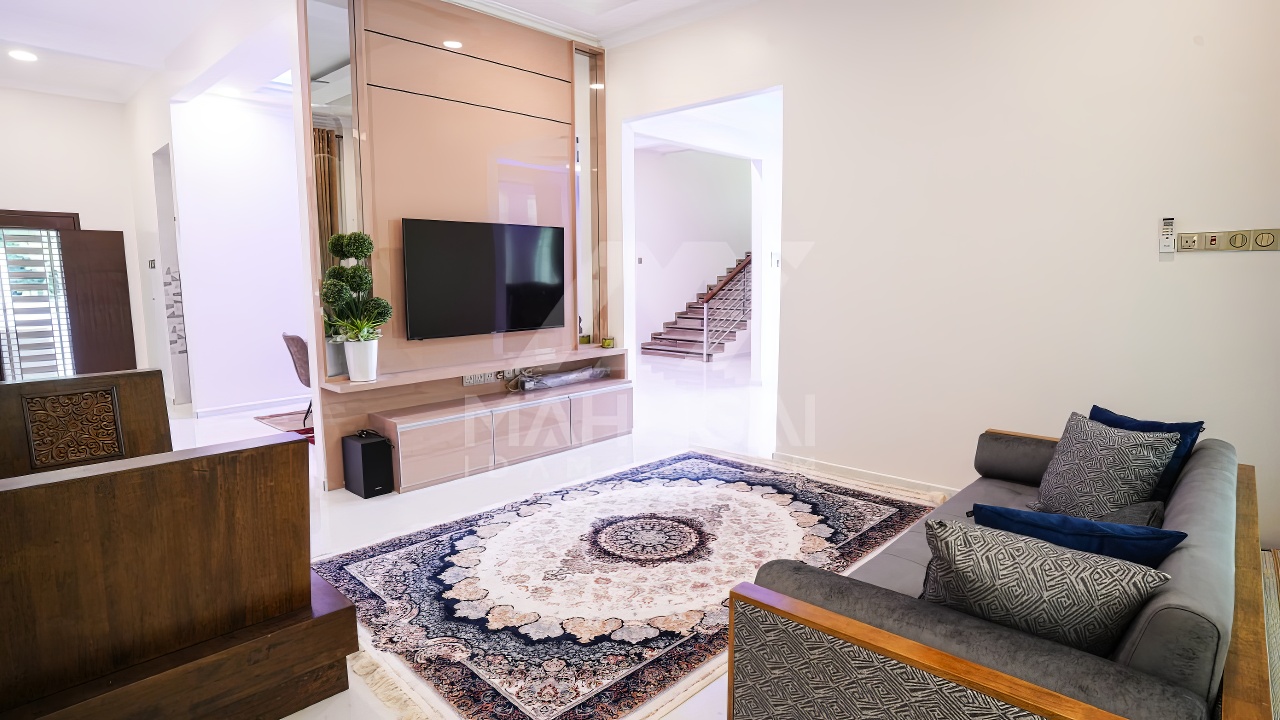 Banglo ini dibina dengan spesifikasi asas Pakej Silver dengan penambahan aksesori iaitu pemasangan cornice pada keseluruhan tingkap luar rumah, batu hiasan pada dinding dan tiang luar rumah menaikan lagi seri rumah.