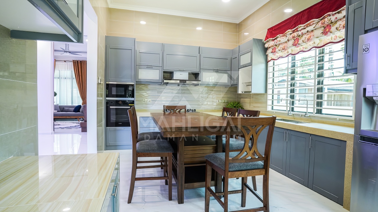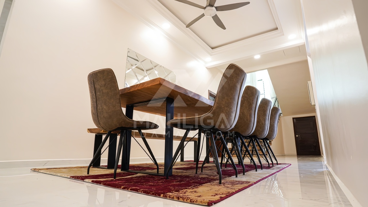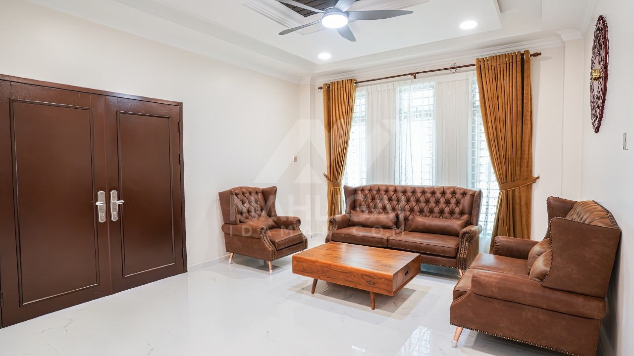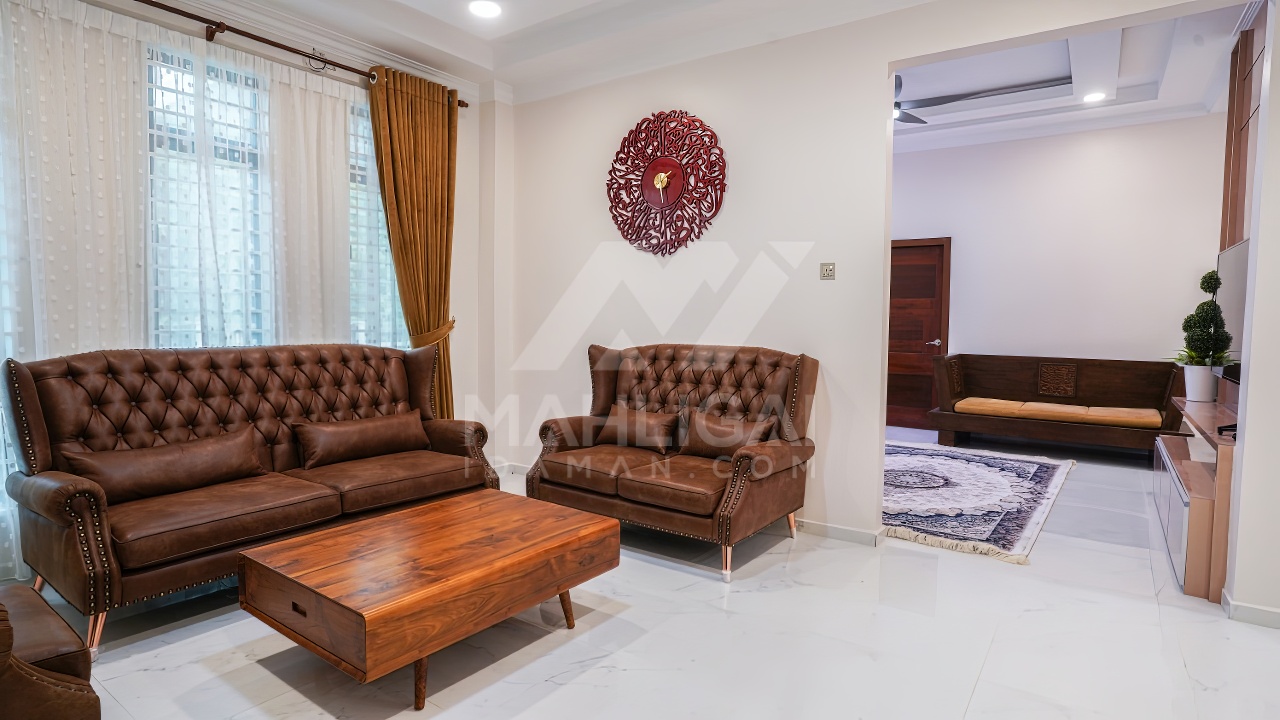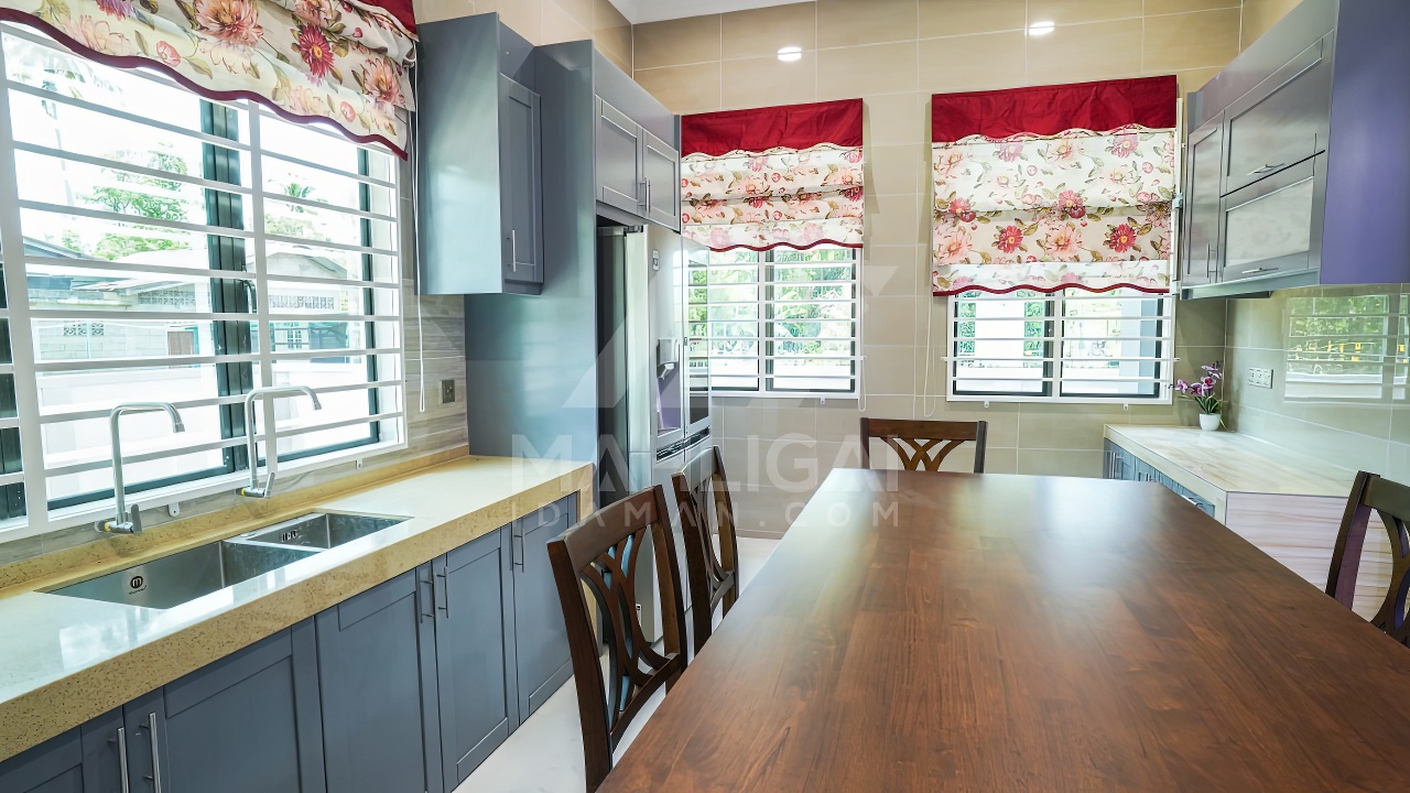 Banglo ini dibina dengan spesifikasi asas Pakej Silver dengan penambahan aksesori iaitu pemasangan cornice pada keseluruhan tingkap luar rumah, batu hiasan pada dinding dan tiang luar rumah menaikan lagi seri rumah.