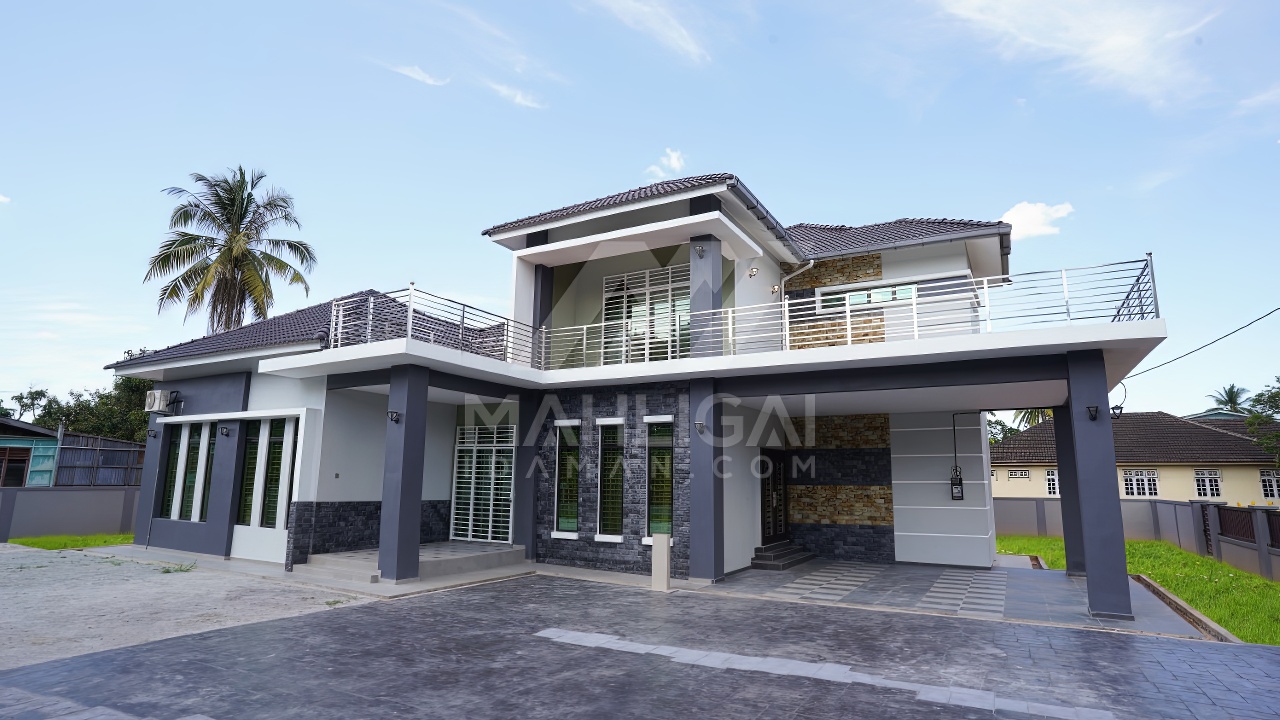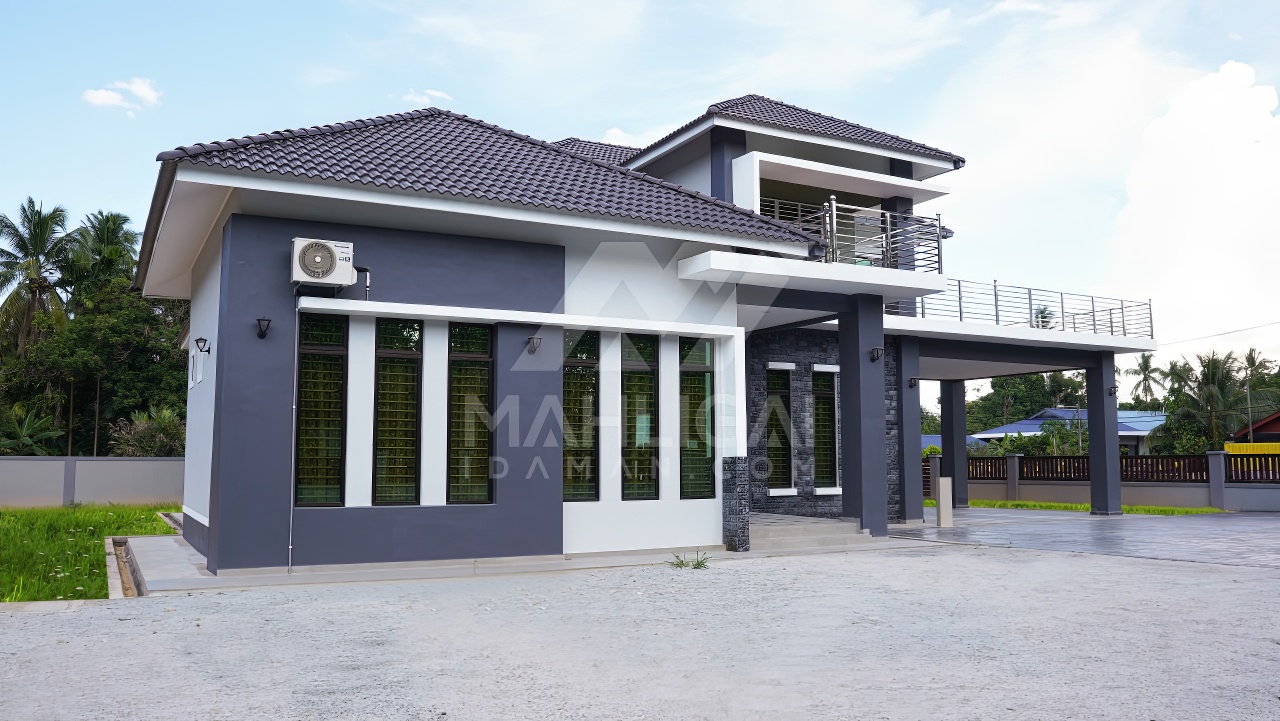 Banglo milik klien kami Che Radziah telah siap dibina sepenuhnya di Padang Siam, Tanah Merah, Kelantan dilengkapi dengan lima (5) bilik tidur dan enam (6) bilik air. Banglo yang berkeluasan 3,662 kaki persegi, banglo ini menggabungkan ciri-ciri banglo moden iaitu dari segi rekabentuk dalaman dan luaran yang sangat menarik. Dari segi penggunaan tona warna putih dan dark grey menaikkan lagi kontra warna tersebut.