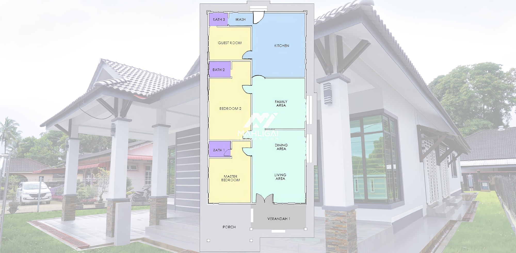 Banglo milik klien kami Puan Illiani kini telah siap dibina sepenuhnya di Kubang Kerian, Kota Bharu, Kelantan dilengkapi dengan tiga (3) bilik tidur dan tiga (3) bilik air. Banglo yang berkeluasan 2,644 kaki persegi, banglo ini menggabungkan ciri-ciri banglo moden iaitu dari segi rekabentuk dalaman dan luaran yang sangat menarik. Dari segi penggunaan tona warna putih dan dark grey menaikkan lagi kontra warna tersebut.