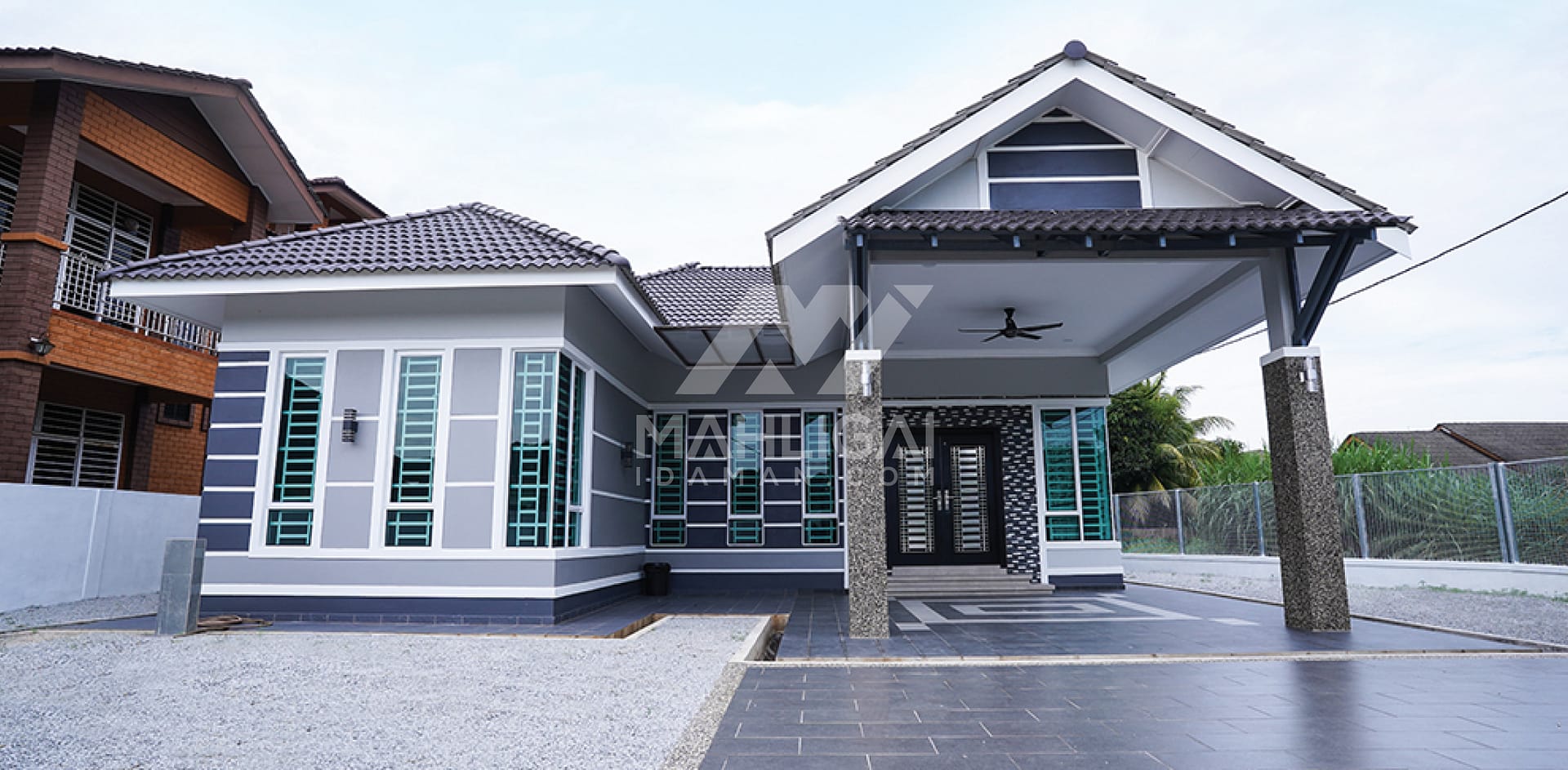 Kini banglo milik klien kami En Roslan telah siap dibina sepenuhnya di Kg Perol Peringat Kota Bharu Kelantan dilengkapi dengan empat bilik tidur dan tiga bilik air. Banglo yang berkeluasan 2,053 kaki persegi, banglo ini menggabungkan ciri-ciri banglo moden iaitu dari segi rekabentuk dalaman dan luaran yang sangat menarik. Dari segi penggunaan tona warna dark grey dan grey menaikkan lagi kontra warna rumah tersebut.